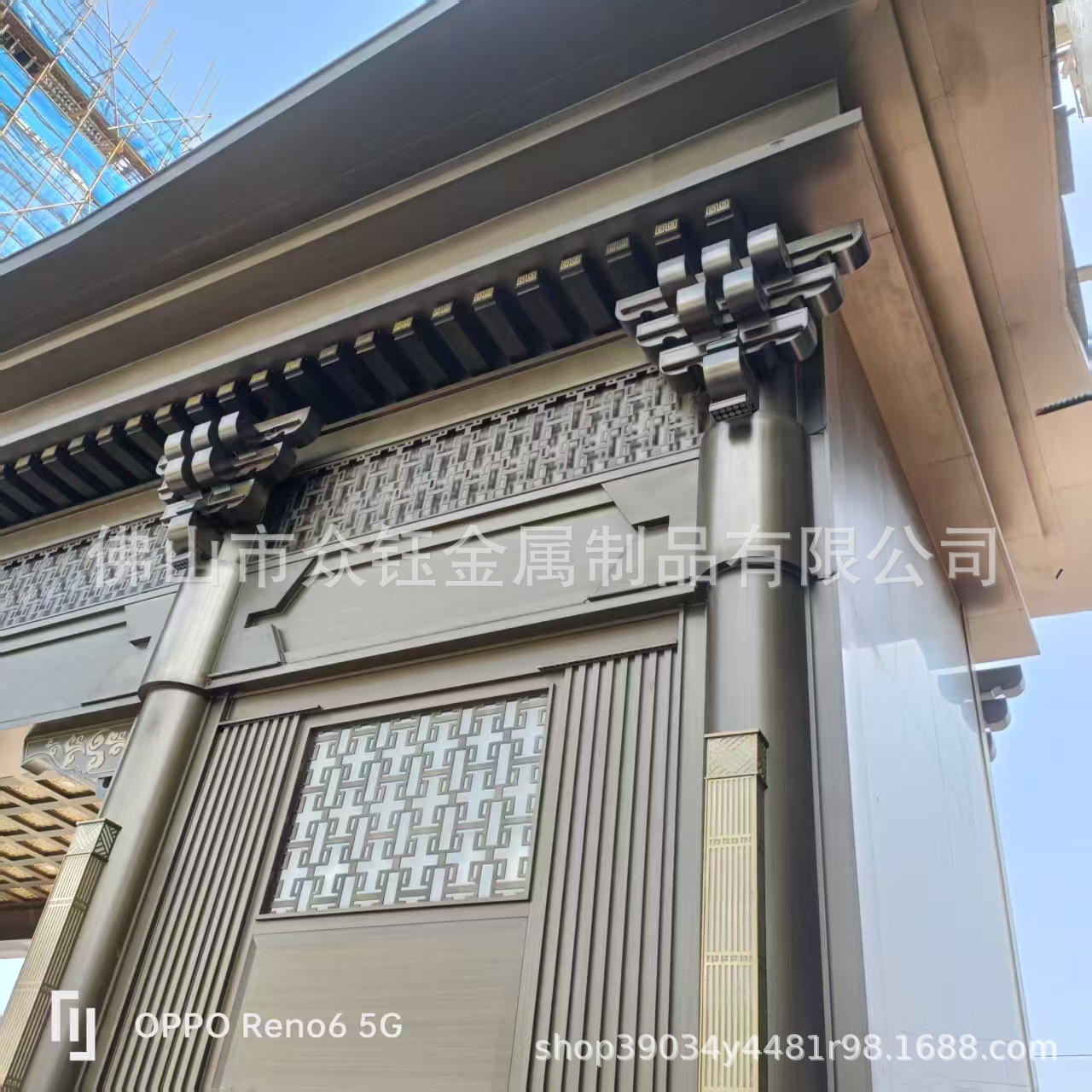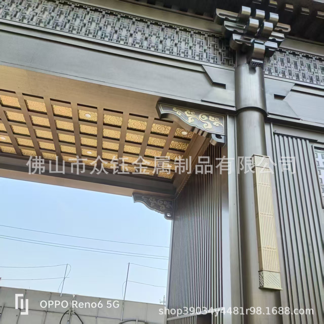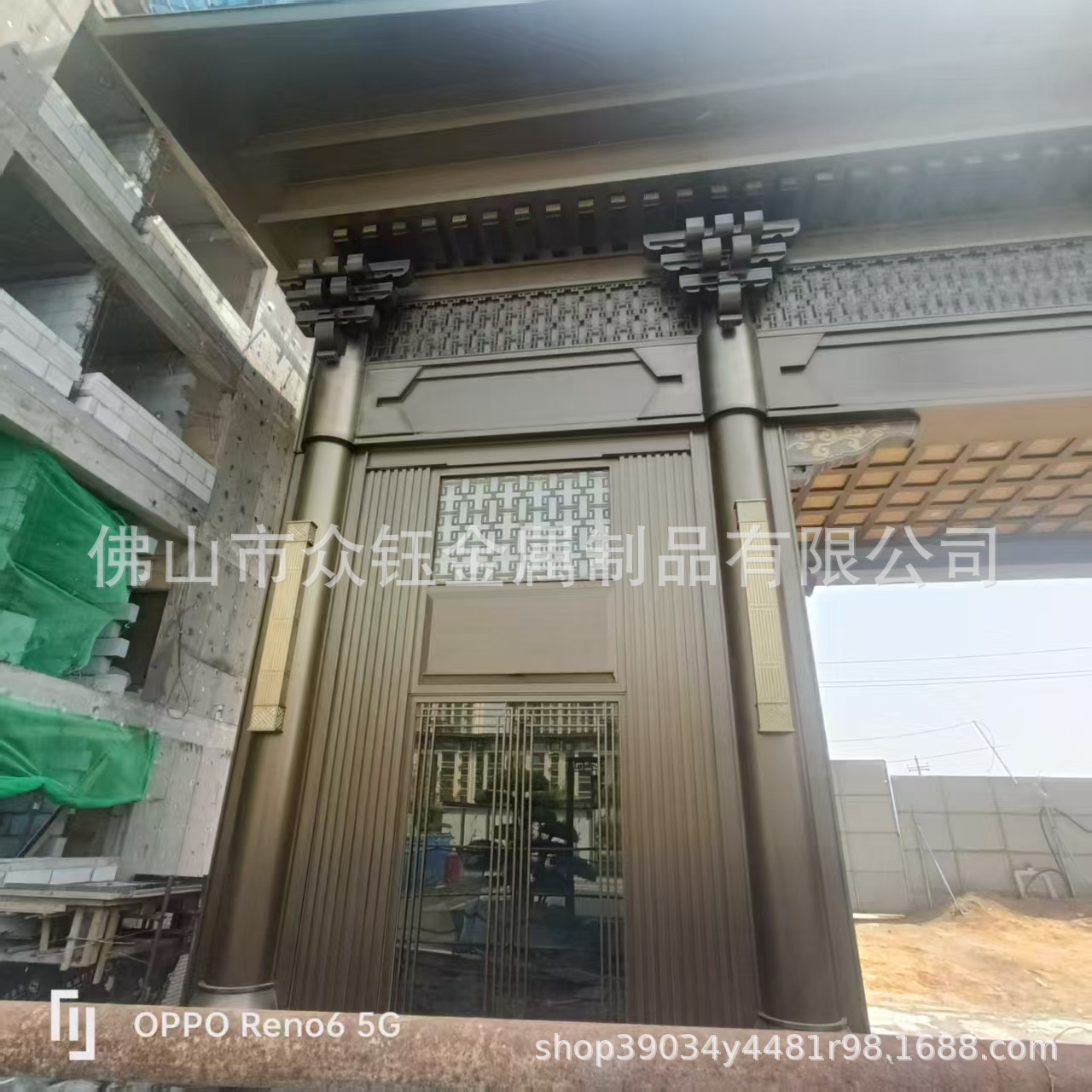 Ворота для жилого комплекса в китайском классическом стиле, имитация меди из нержавеющей стали, Хэбэй Синтай Хунъи Недвижимость Цинюнь Академия