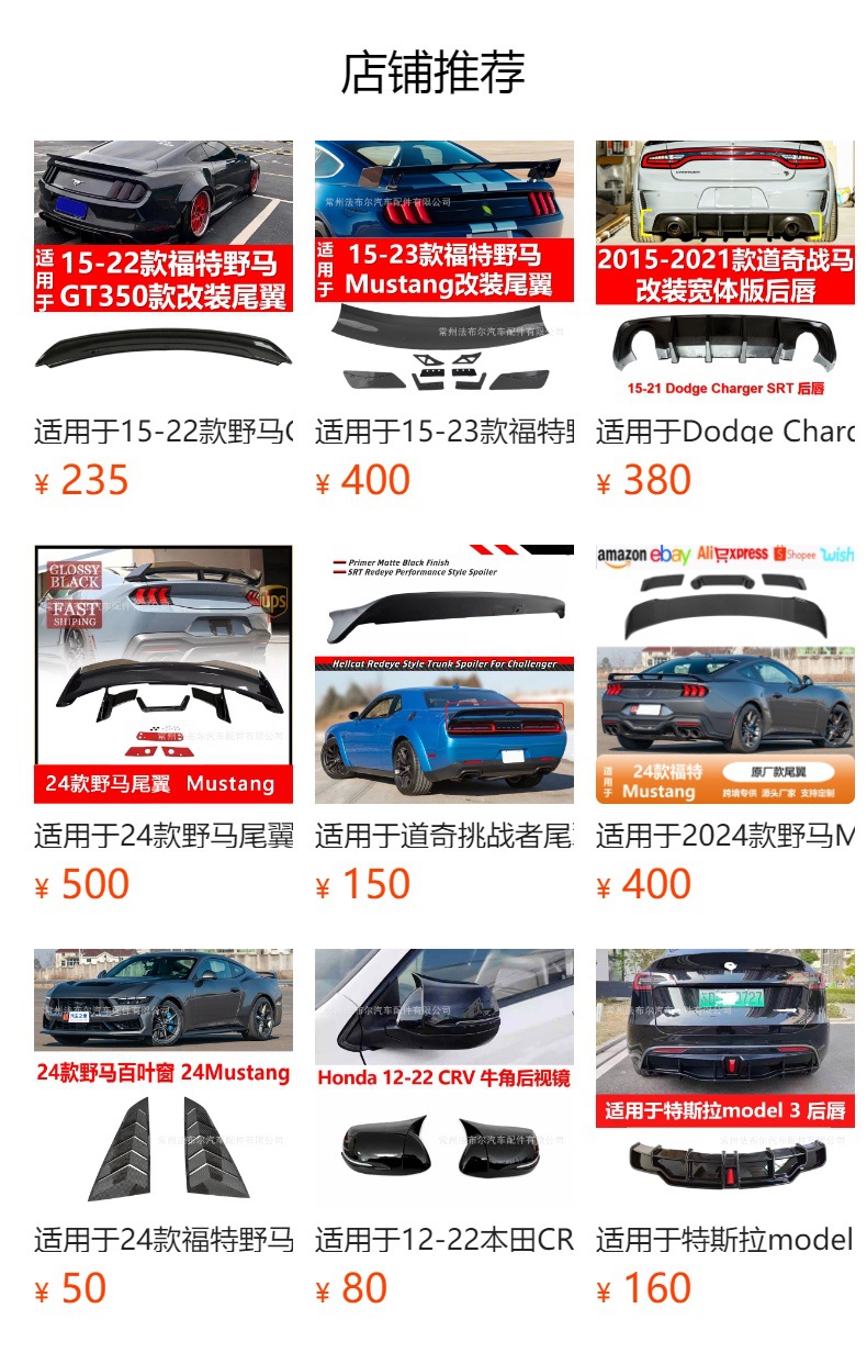 常州法布尔汽车配件有限公司,专业生产研发销售各类外观改装配件。拥有多项专利产品。主要有各车型前铲前唇,中网,侧裙,后护板后唇,尾翼,牛角后视镜,百叶窗等等。热销全国各地。欢迎各界朋友莅临参观、指导和业务洽谈。店铺内所有产品开票需另加税点,详细咨询客服