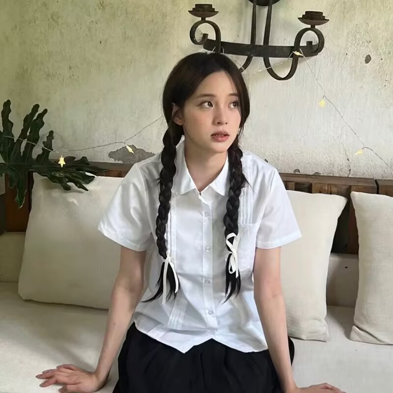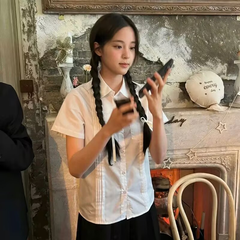 【Xiaoyuanzi】Женская рубашка JK с длинными рукавами, осенняя форма, японский школьный стиль, короткий рукав с круглым воротником, плиссированная женская рубашка, осень и зима.