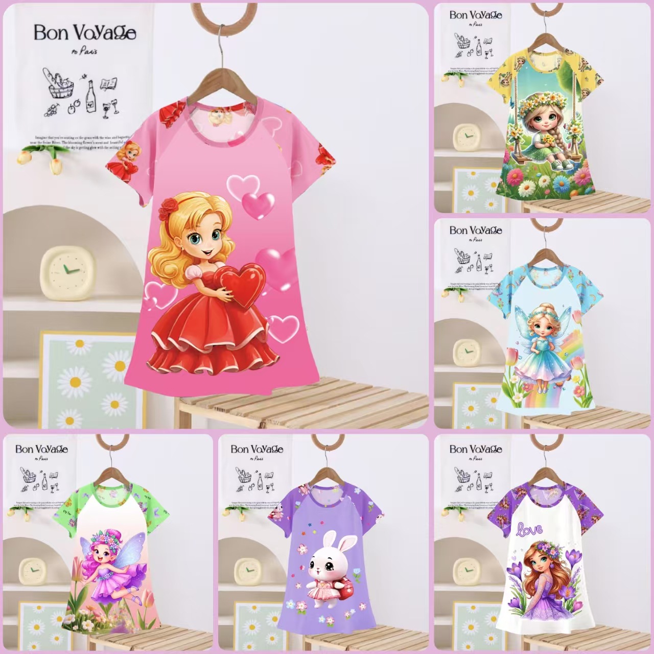 Юбка с коротким рукавом-01#Фиолетовая принцесса на белом фоне; Юбка с коротким рукавом-02#фиолетовый кролик; Юбка с коротким рукавом-03#желтая качающаяся девушка; Юбка с коротким рукавом-04#Средне-желтая принцесса замка; Юбка с коротким рукавом-05#девушка-синяя бабочка; Юбка с коротким рукавом-06#зеленая летающая принцесса; Юбка с коротким рукавом-07#девушка с воздушным шаром розы; Юбка с коротким рукавом-08#любовь принцесса
