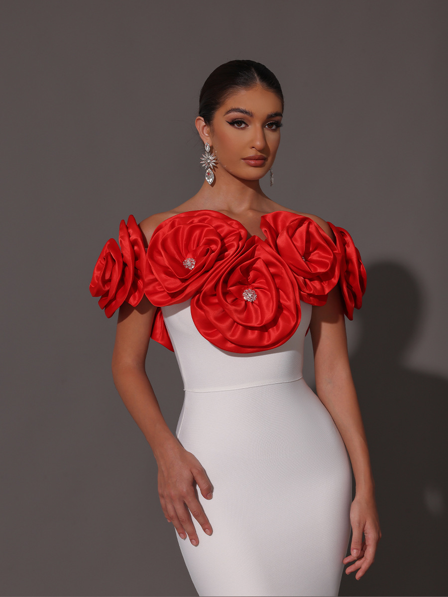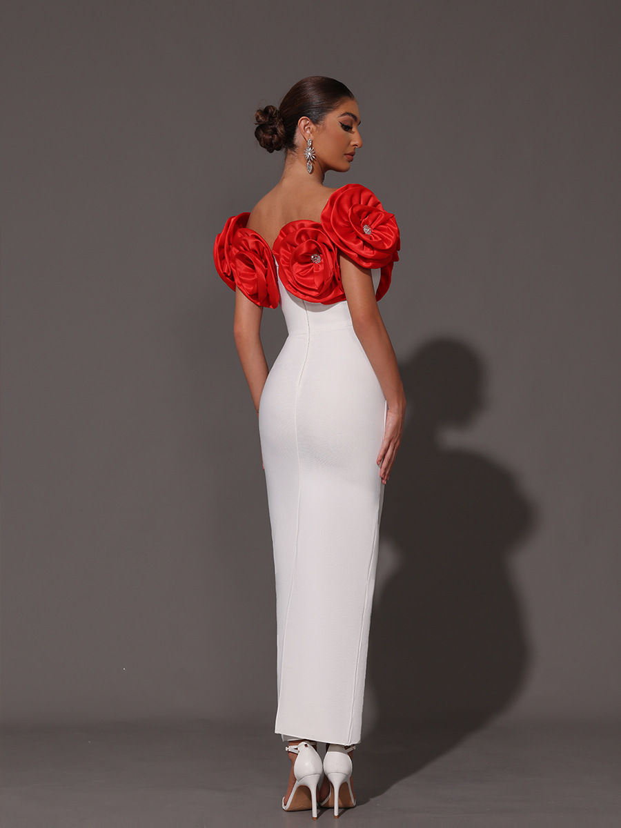 Элегантное вечернее платье-бандаж без бретелек с объемным цветочным узором для торжественных мероприятий, свадеб и Рождества