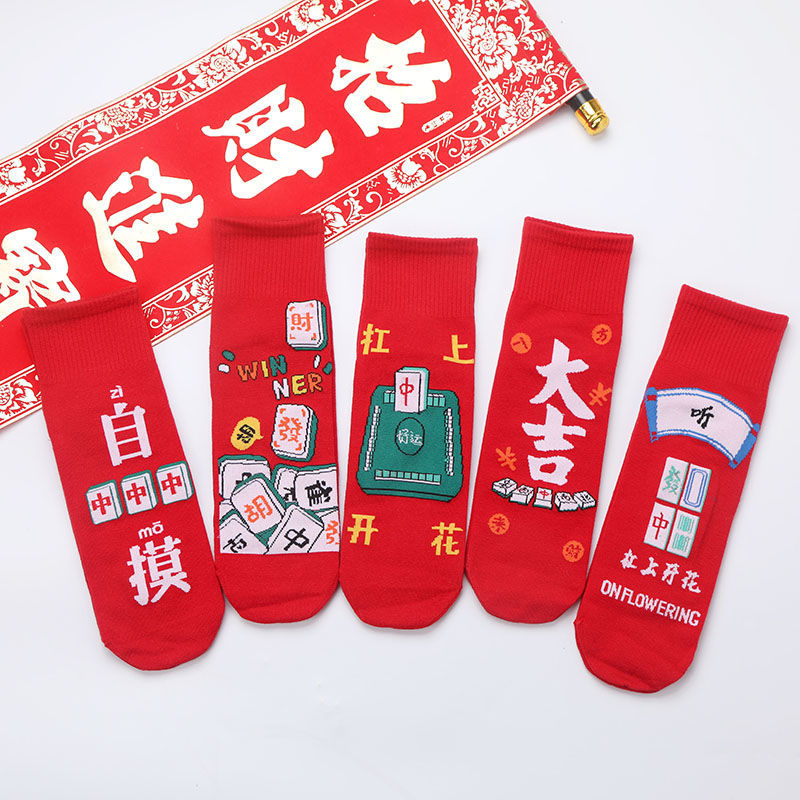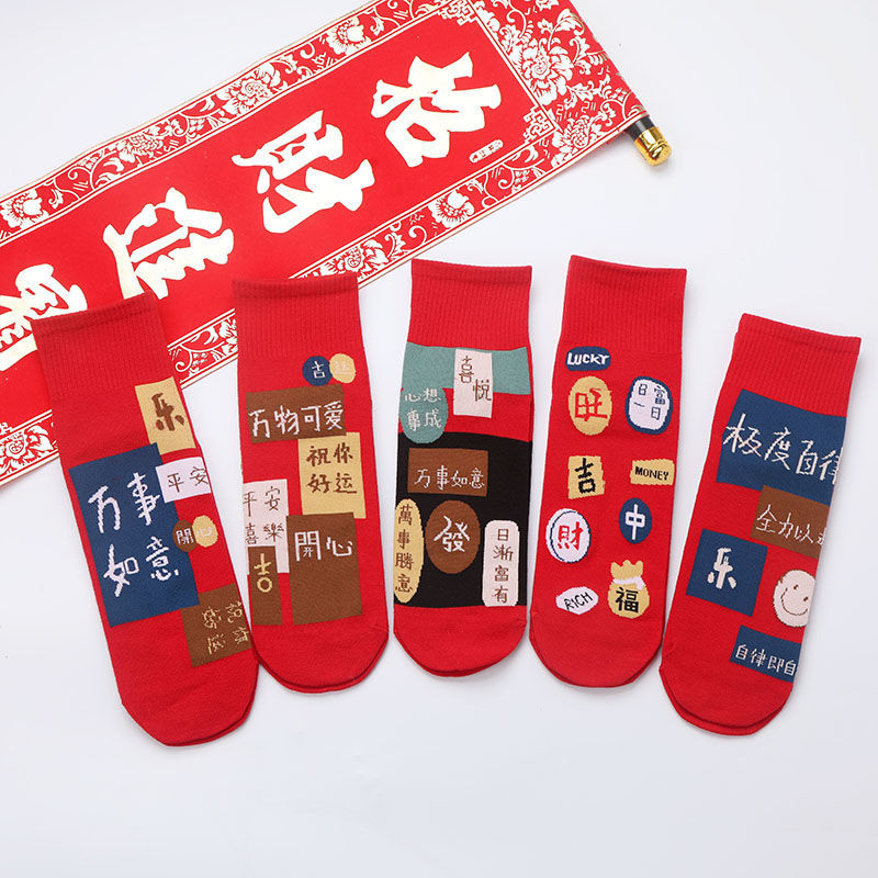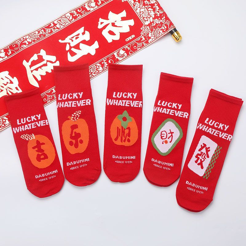 Новогодние красные носки до середины икры для мужчин и женщин, подарок на Новый год, свадебные носки для пар, 2026 год — Год Лошади (Год по знаку зодиака)