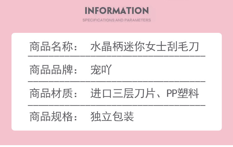 Прозрачная хрустальная ручка-лавандово-фиолетовая [голая]; Прозрачная хрустальная ручка-синяя мечта [голая]; Прозрачный кристаллический румянец-пудра [голый]; Прозрачная хрустальная ручка-лавандово-фиолетовый [мешок OPP]; Прозрачная хрустальная ручка-синяя мечта [мешок OPP]; Прозрачный кристаллический румянец с ручкой [мешок OPP]; Лавандово-фиолетовый [Голова ножа]; Синий сон [Голова ножа]; Ружевая пудра [лезвие]; крем для бритья