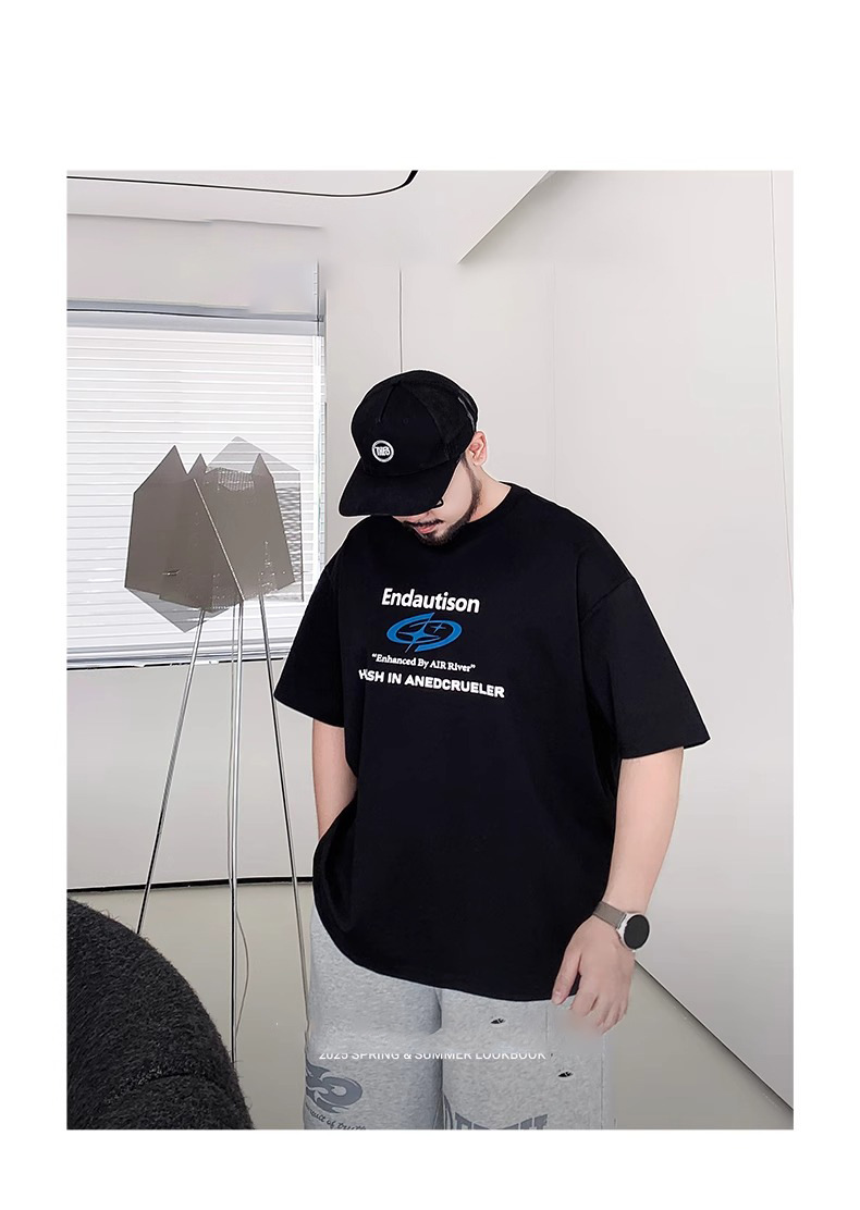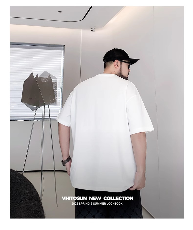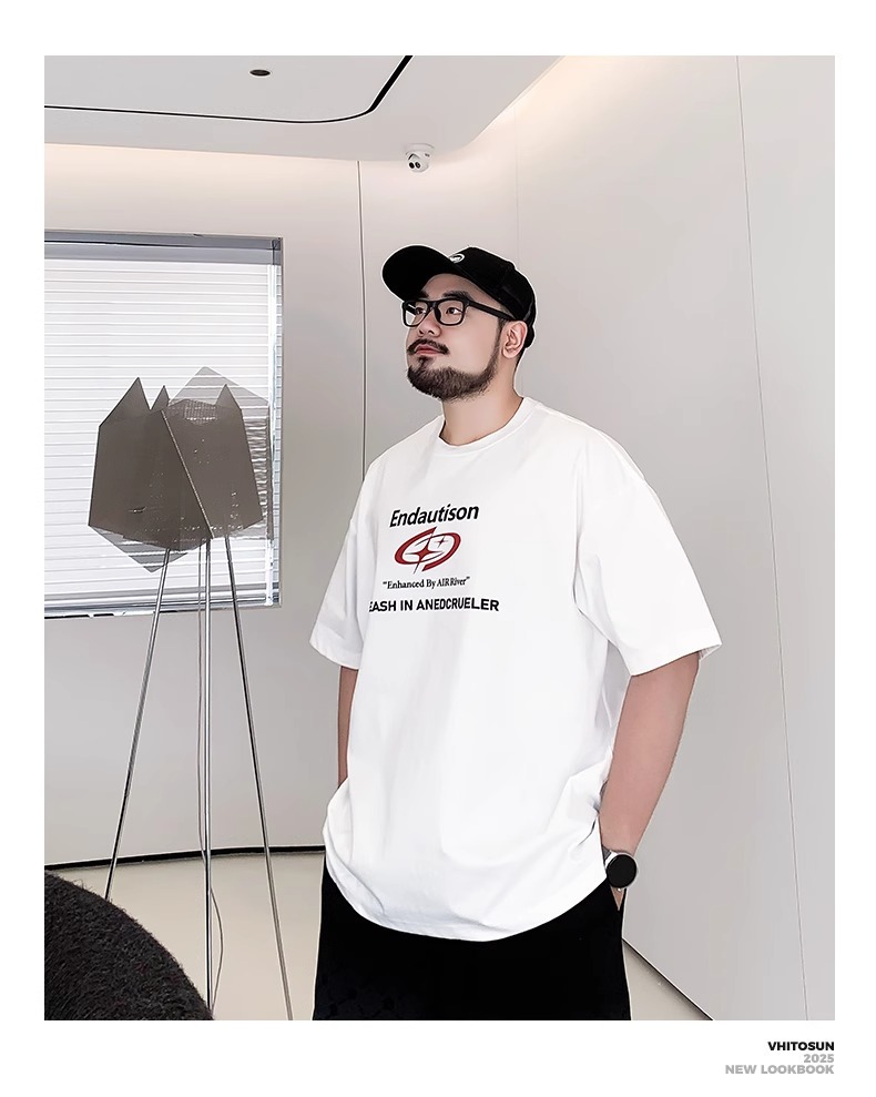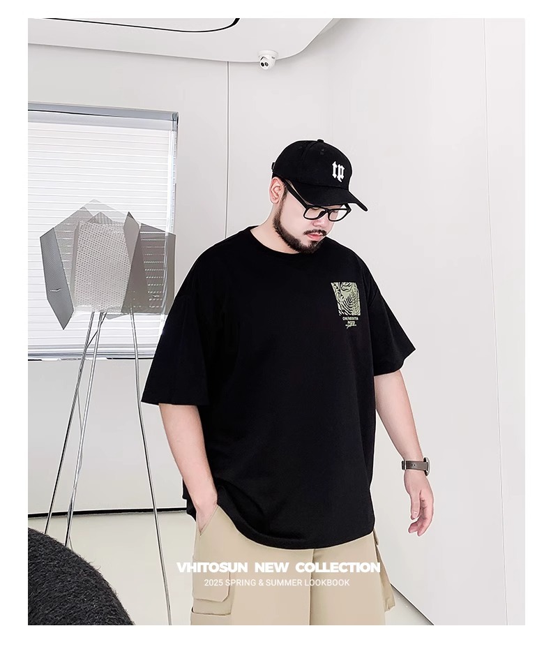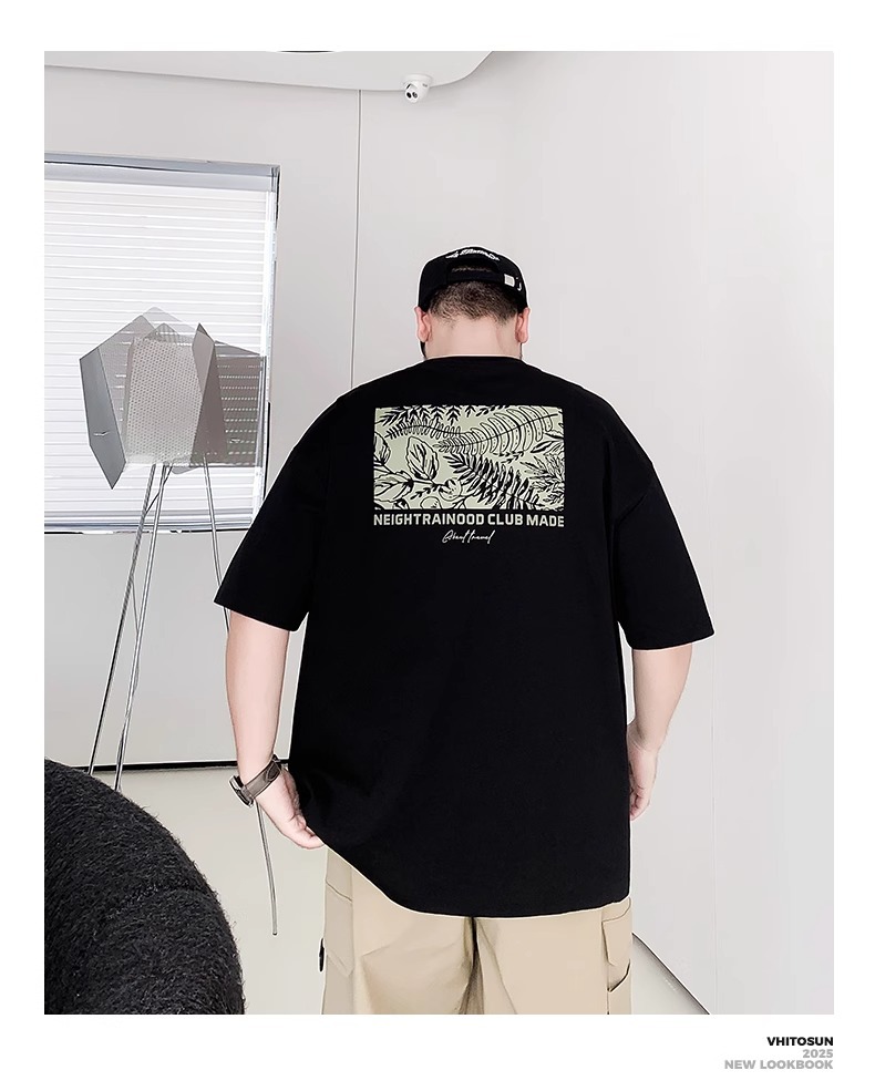 Мужская футболка большого размера из чистого хлопка с принтом и круглым вырезом, свободная повседневная футболка больших размеров, новинка 2025 года, летняя трендовая футболка с короткими рукавами
