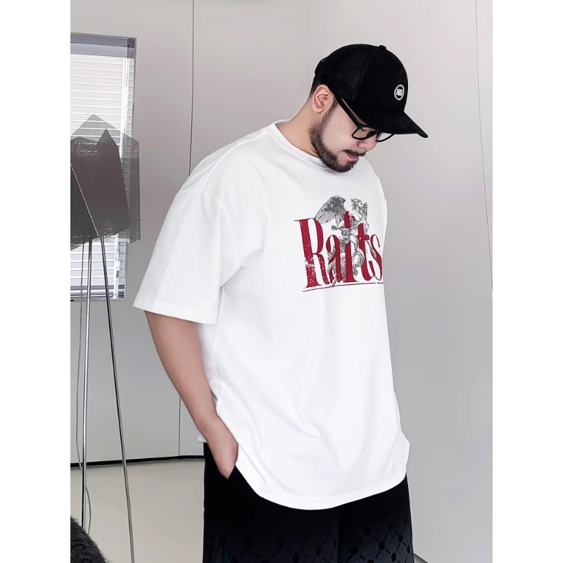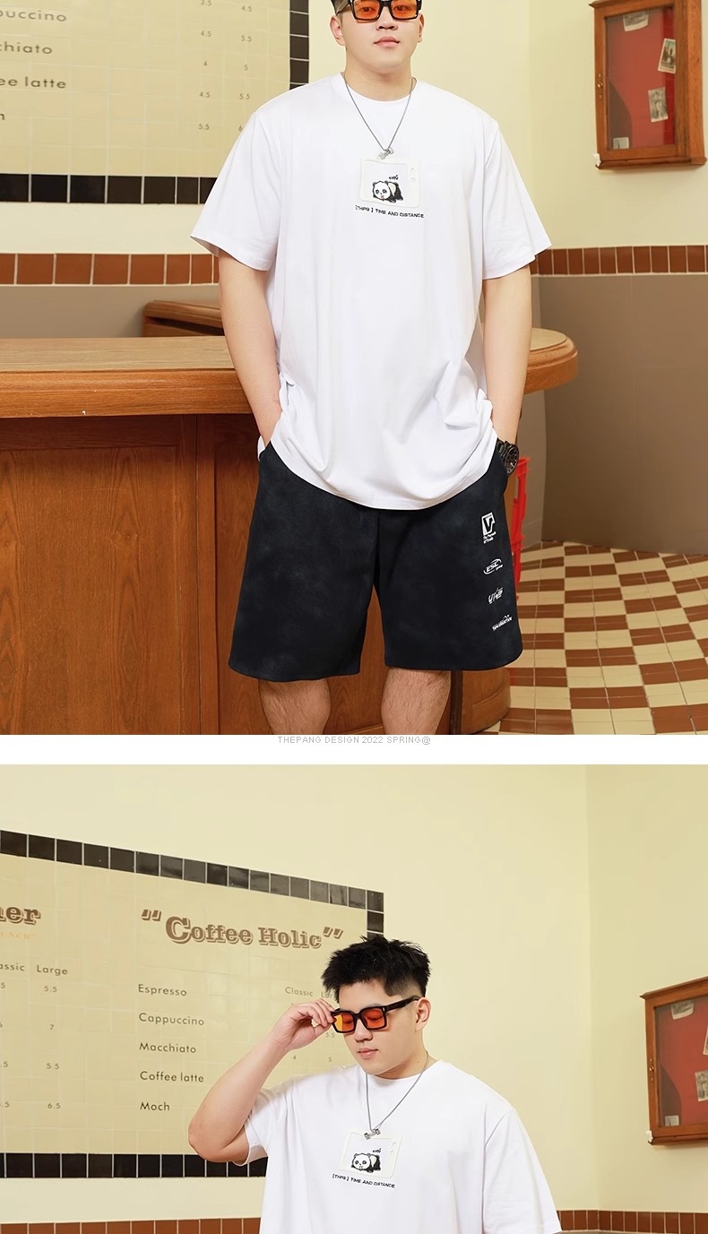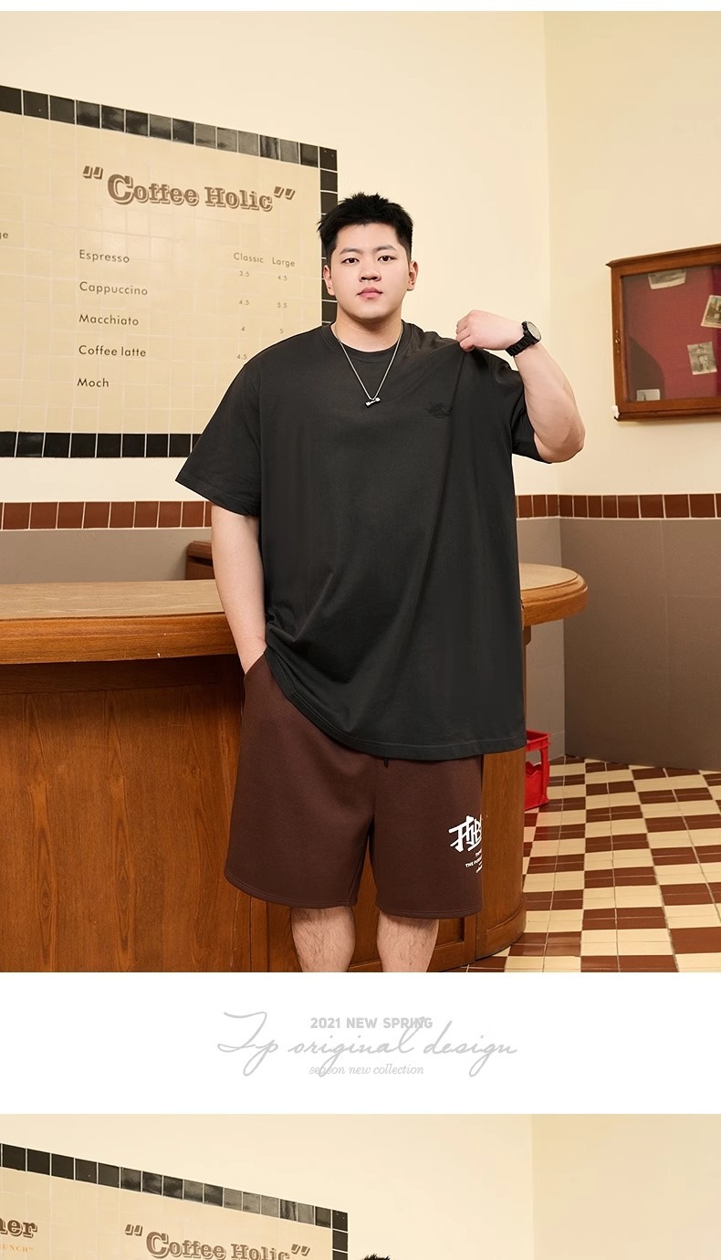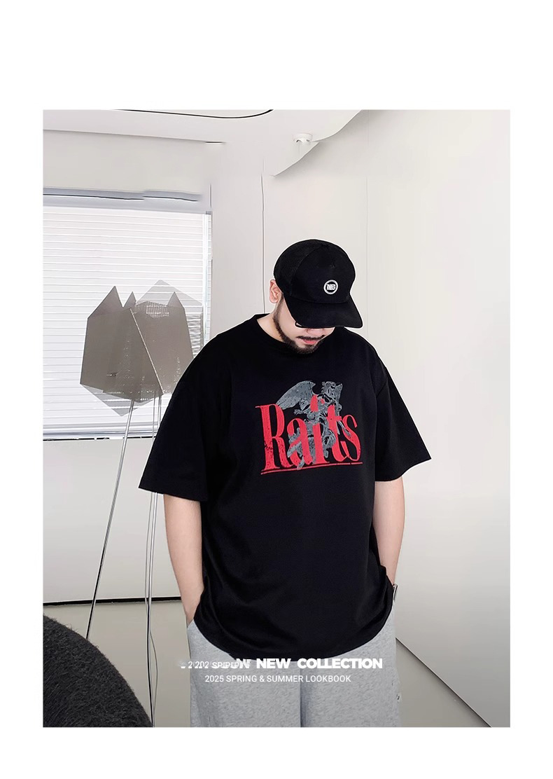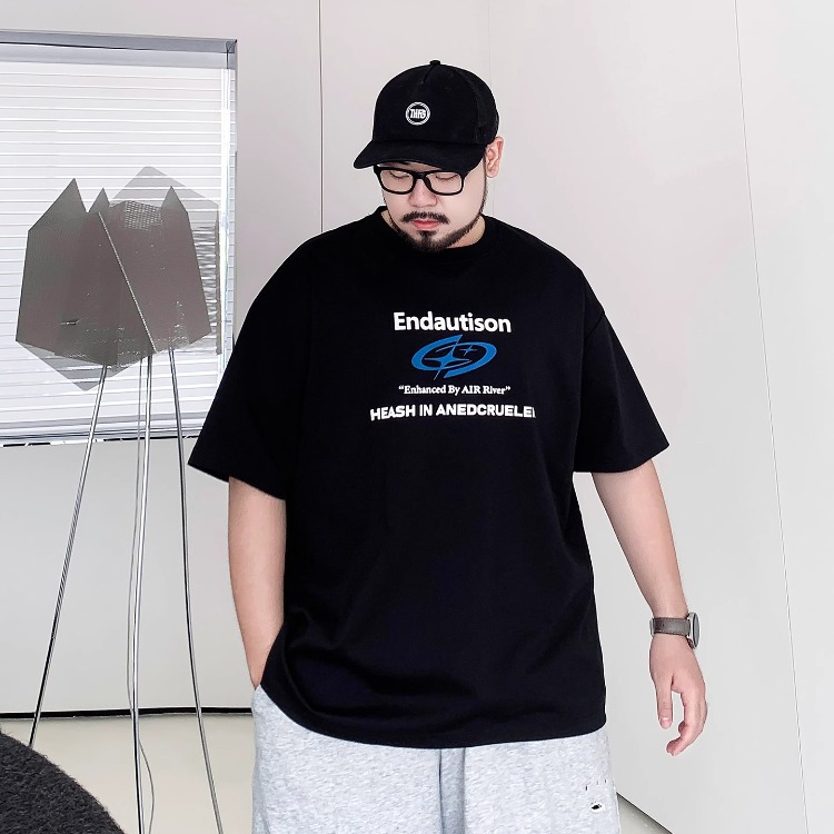 Мужская футболка большого размера из чистого хлопка с принтом и круглым вырезом, свободная повседневная футболка больших размеров, новинка 2025 года, летняя трендовая футболка с короткими рукавами