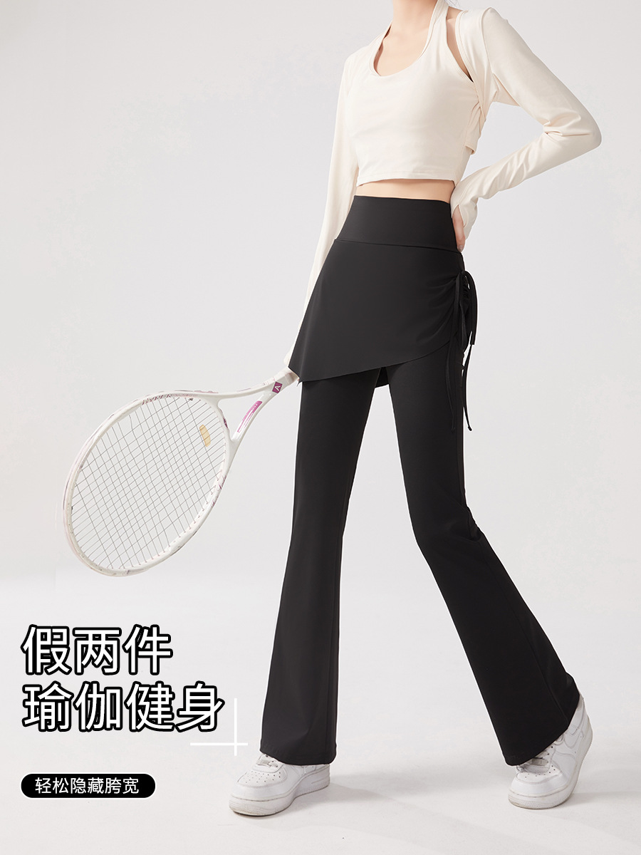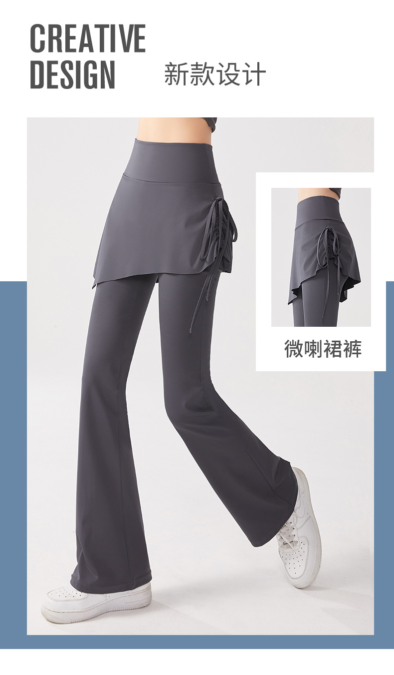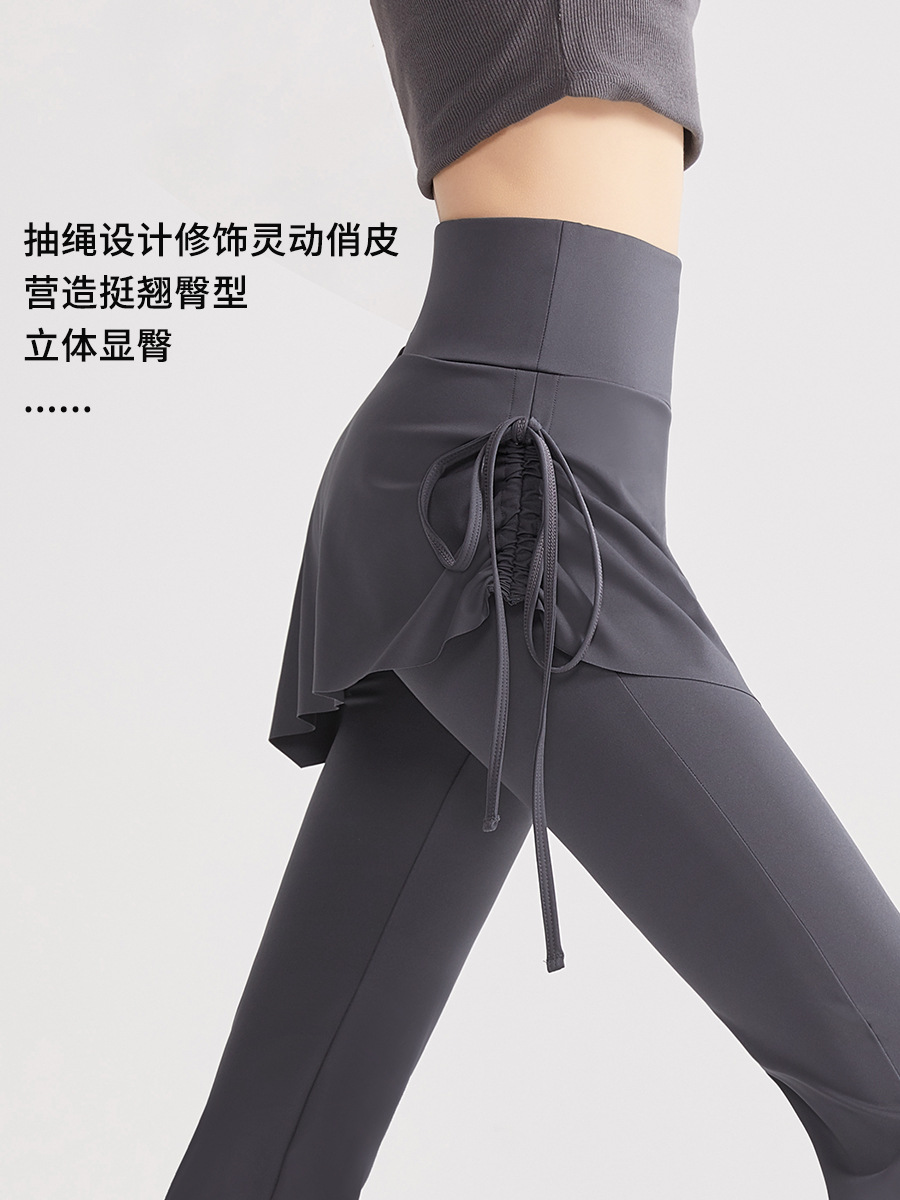 Йога брюки накладные две штаны юбка с высокой талией и бедрами обтягивая анти-ходовые расклешенные брюки пилатес спортивные штаны для фитнеса