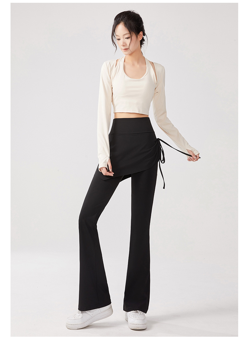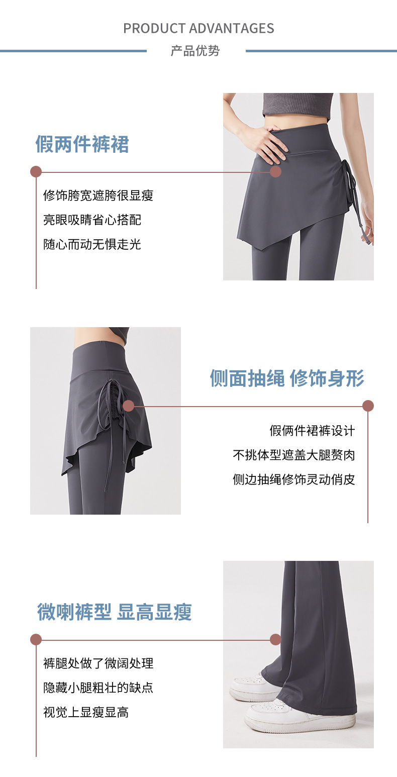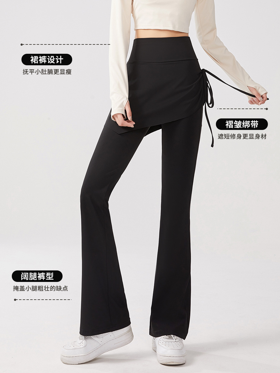 Йога брюки накладные две штаны юбка с высокой талией и бедрами обтягивая анти-ходовые расклешенные брюки пилатес спортивные штаны для фитнеса