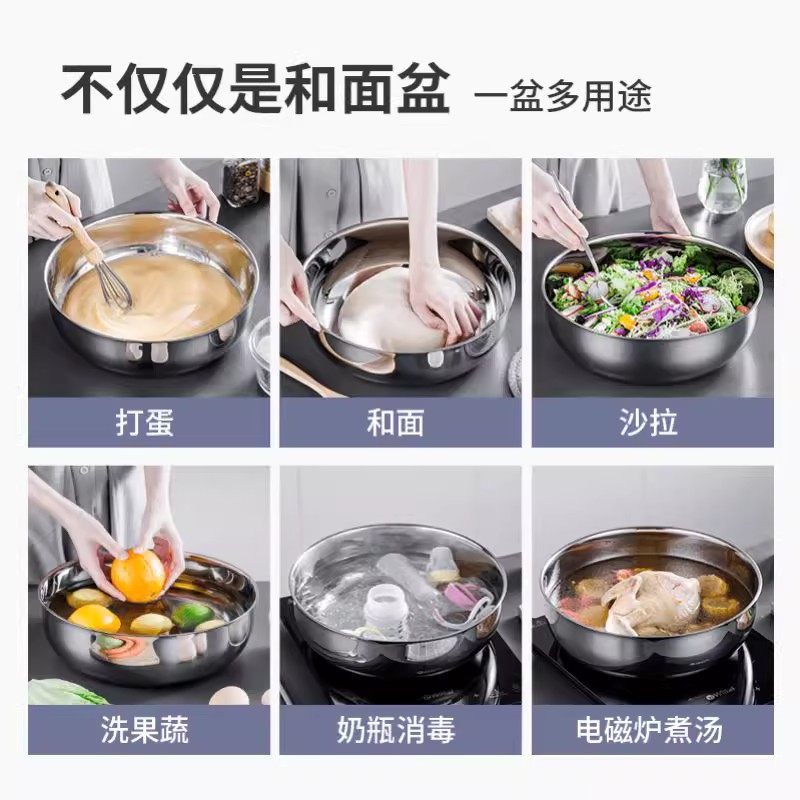 Особо прочная миска для смешивания из нержавеющей стали, большая кухонная мойка для коммерческого и домашнего использования, утолщенная кастрюля для супа, миска для горячих блюд, миска для замеса теста.
