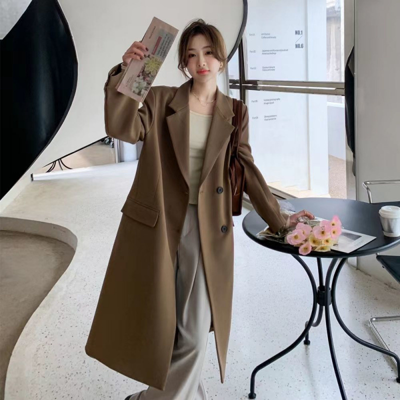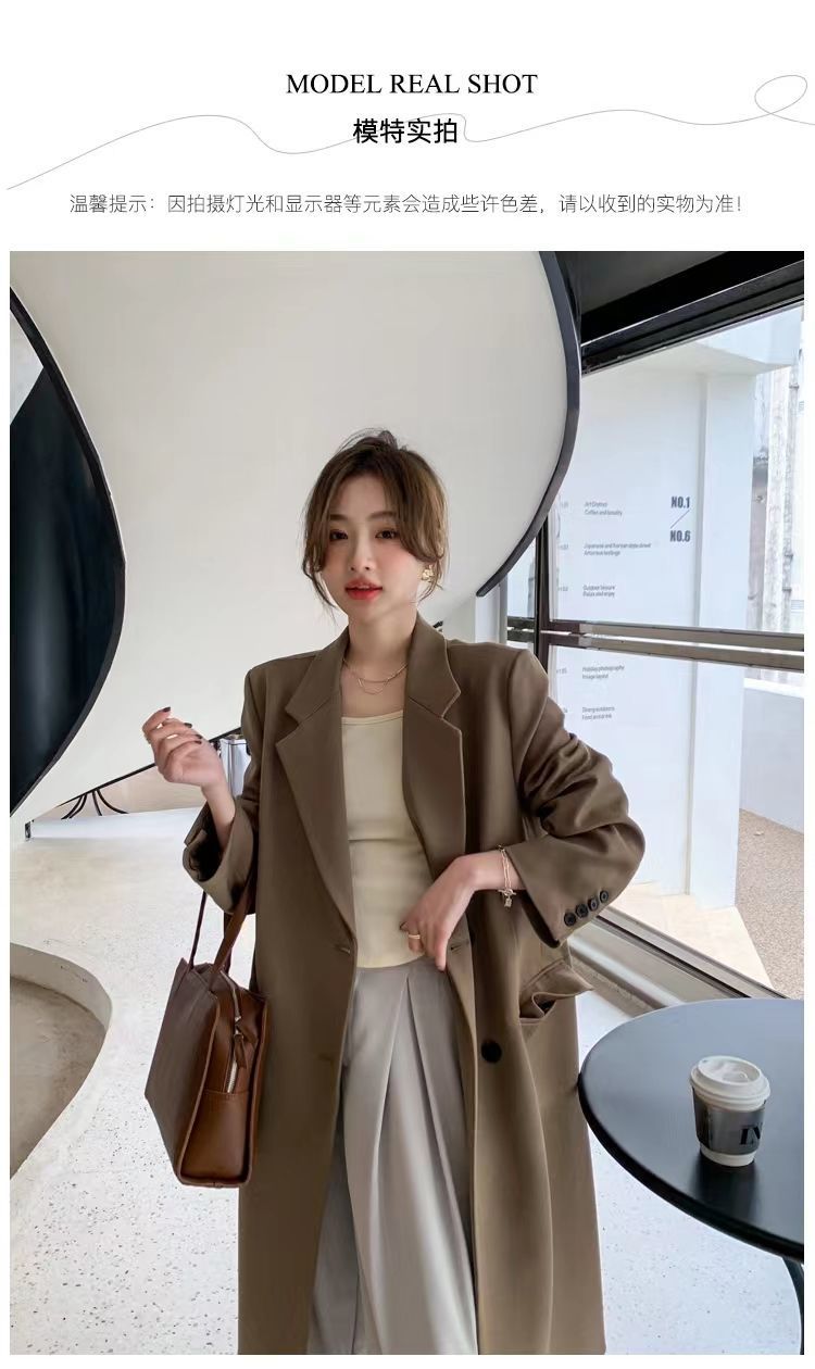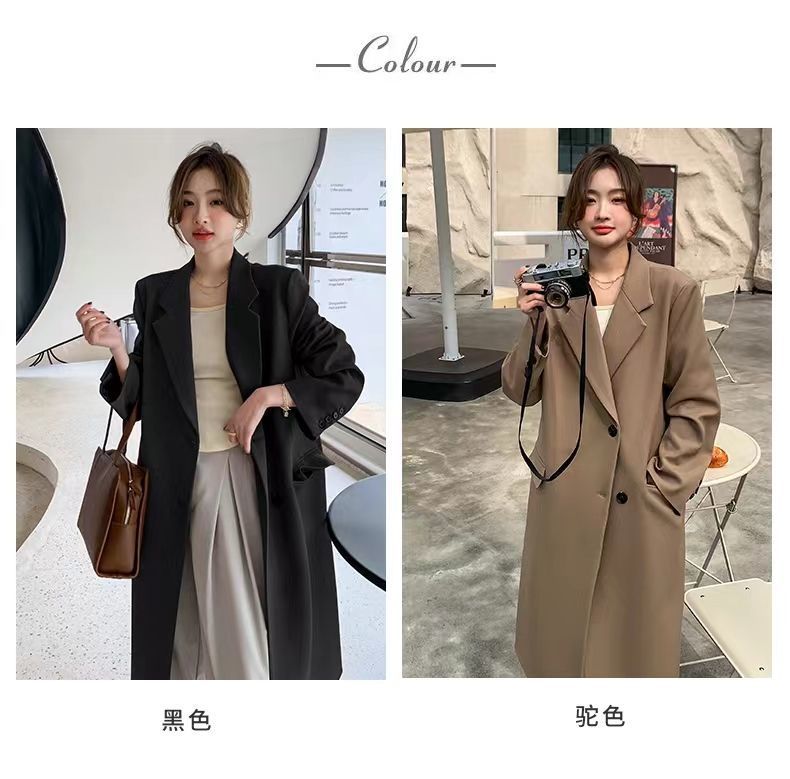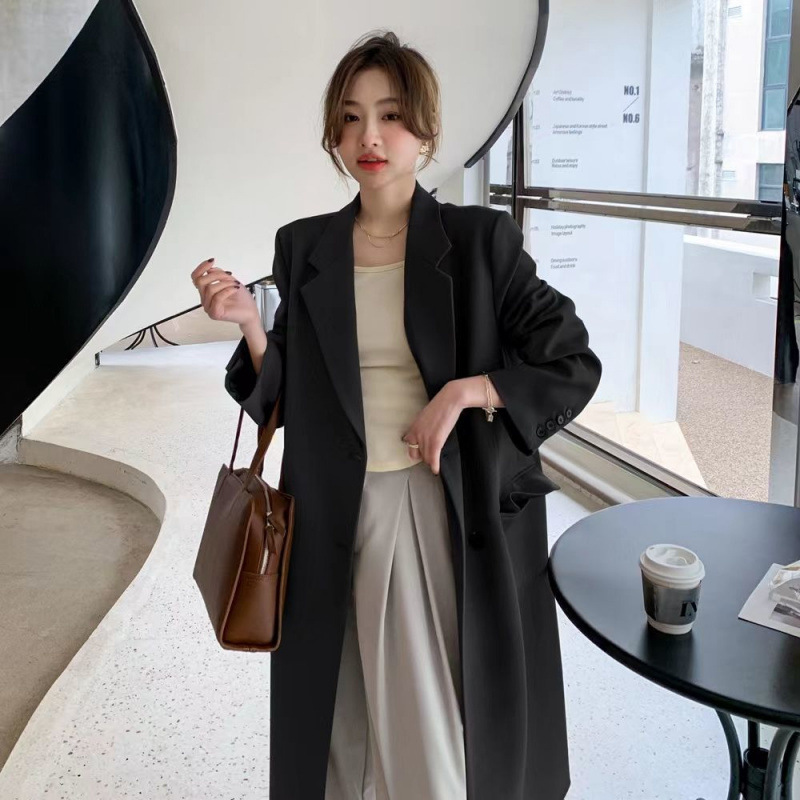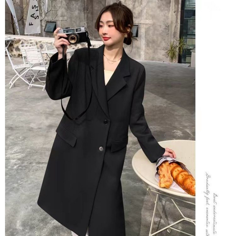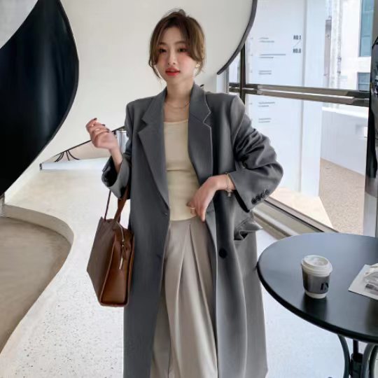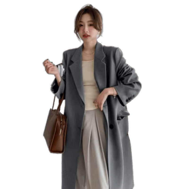 2024 весенне-осенний длинный пиджак в корейском стиле, женский повседневный костюм, свободный утягивающий темперамент, ветровка выше колена, пальто