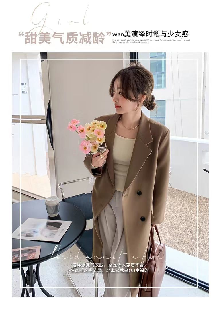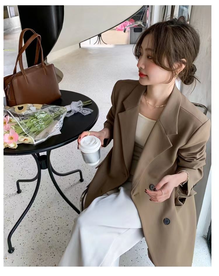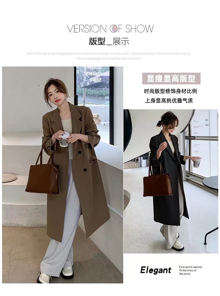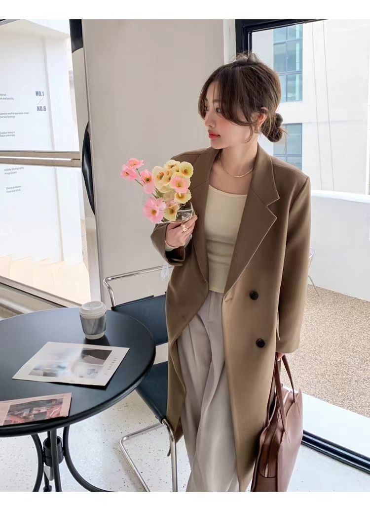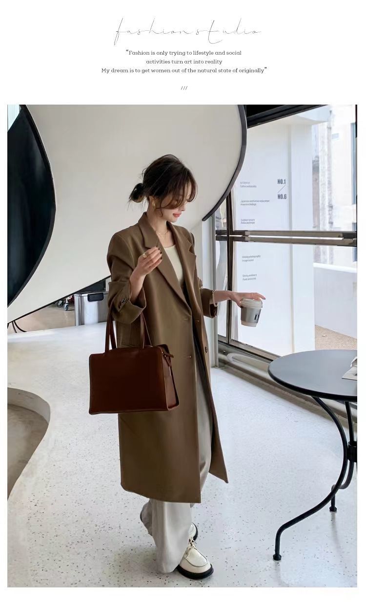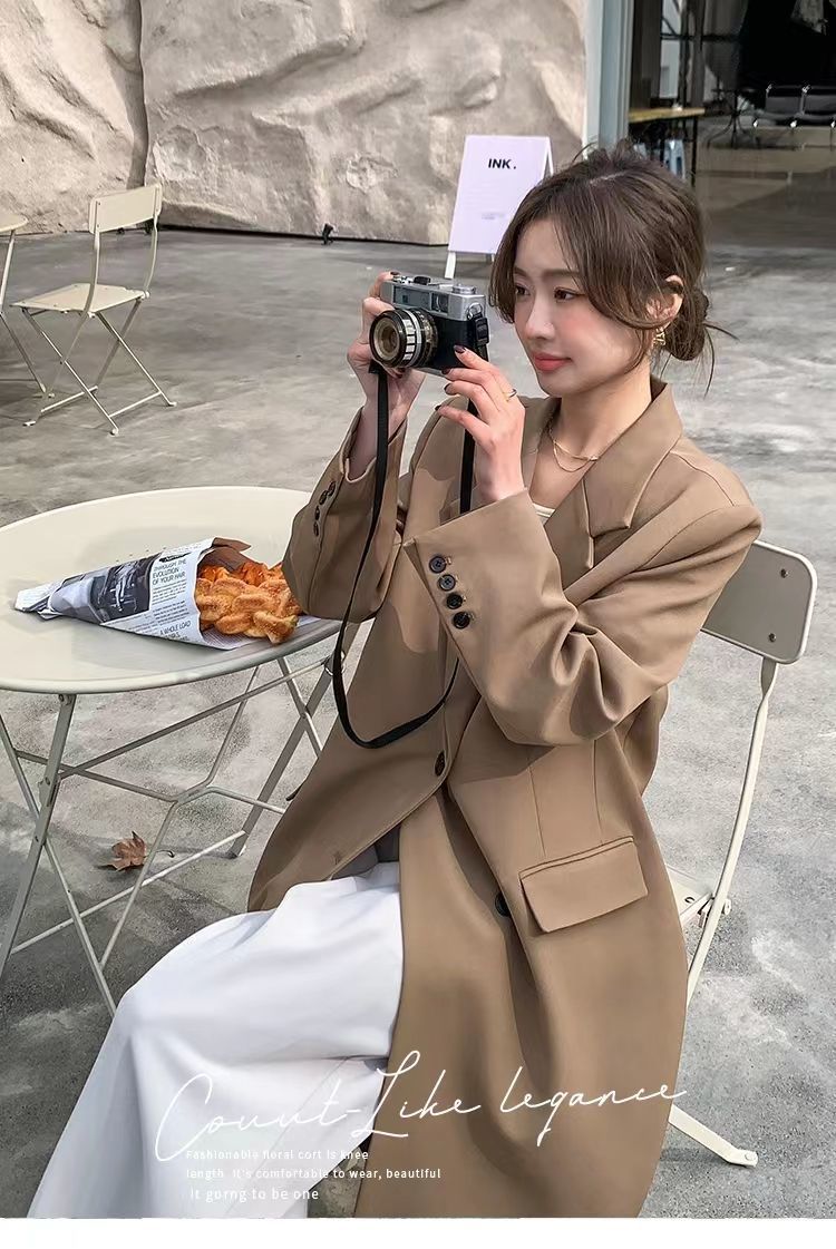 2024 весенне-осенний длинный пиджак в корейском стиле, женский повседневный костюм, свободный утягивающий темперамент, ветровка выше колена, пальто