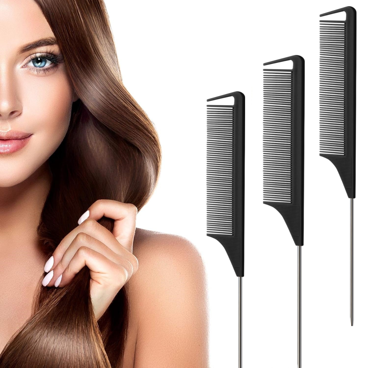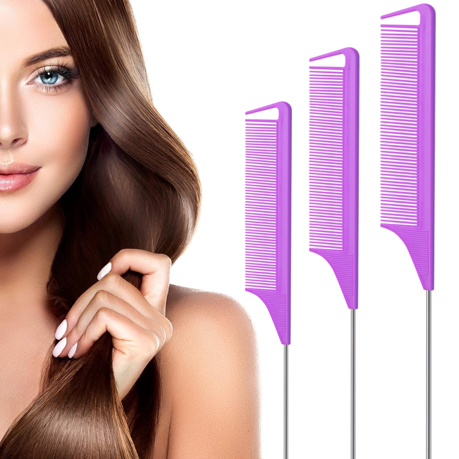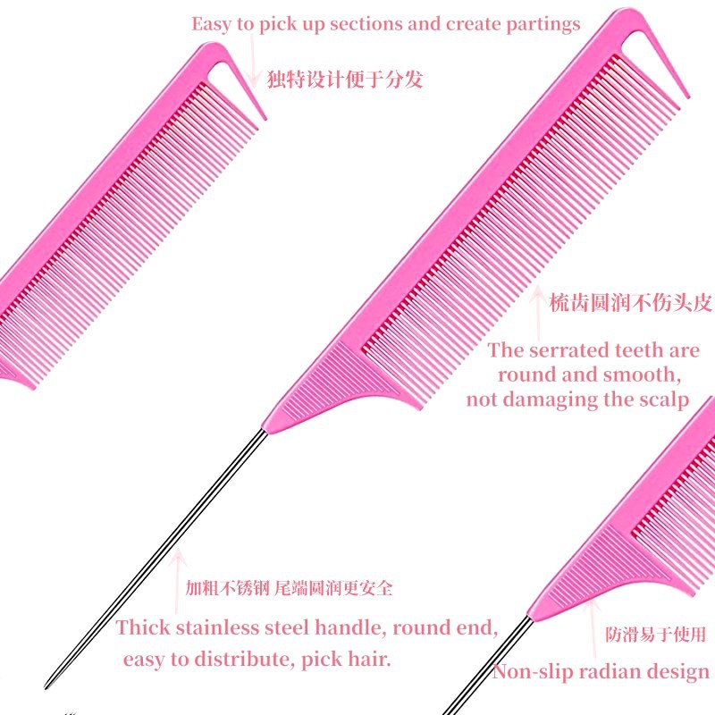Гребень с длинным хвостом из нержавеющей стали.: