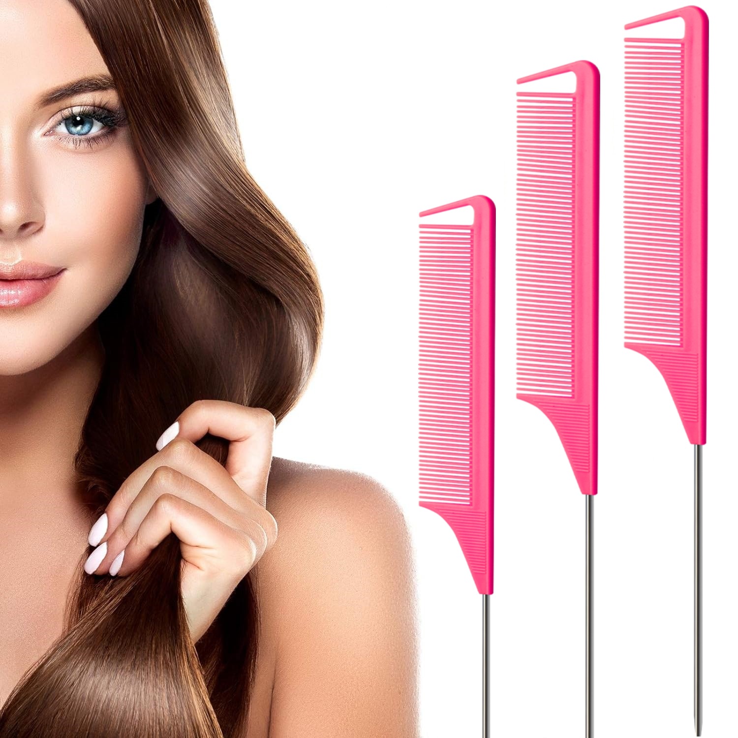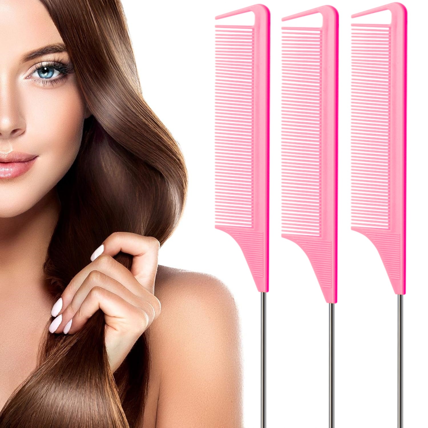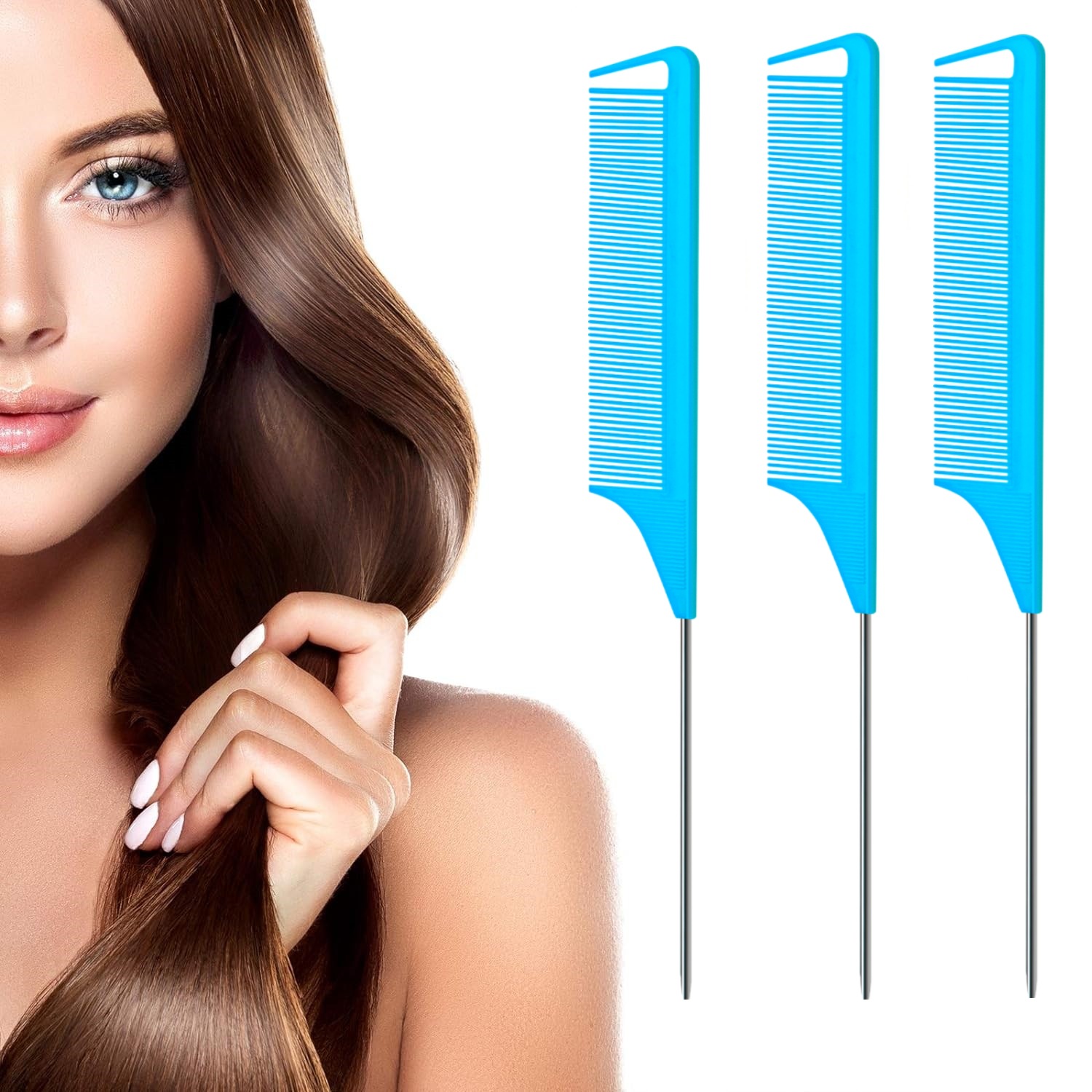 Гребень с длинным хвостом из нержавеющей стали.: