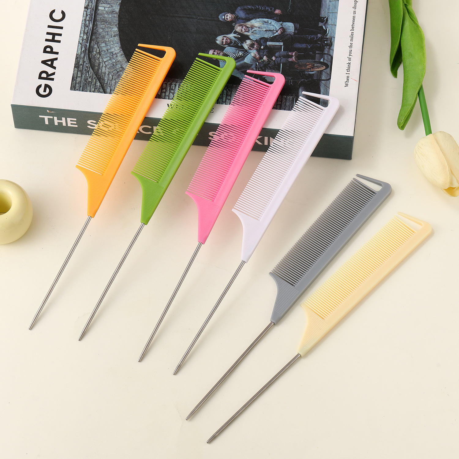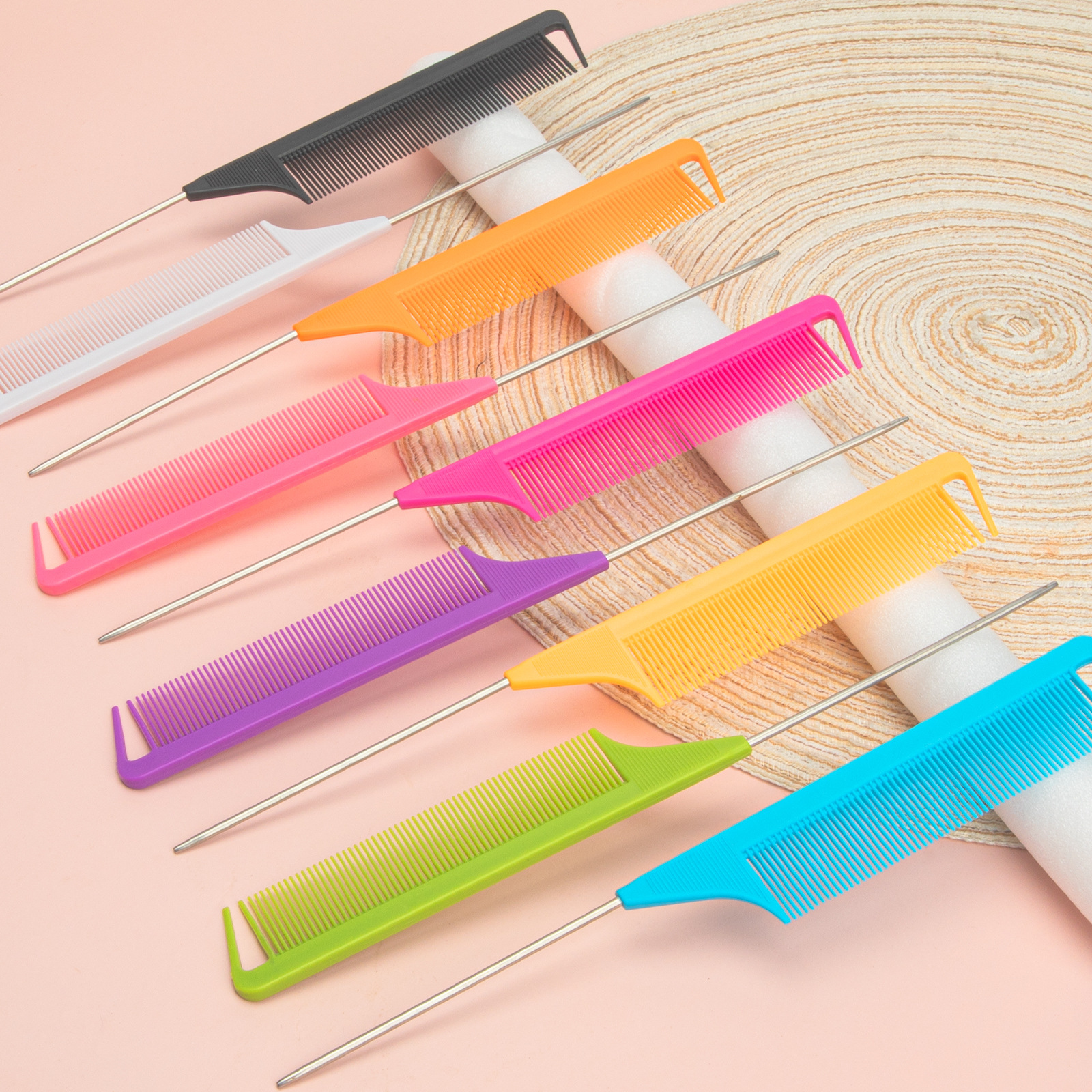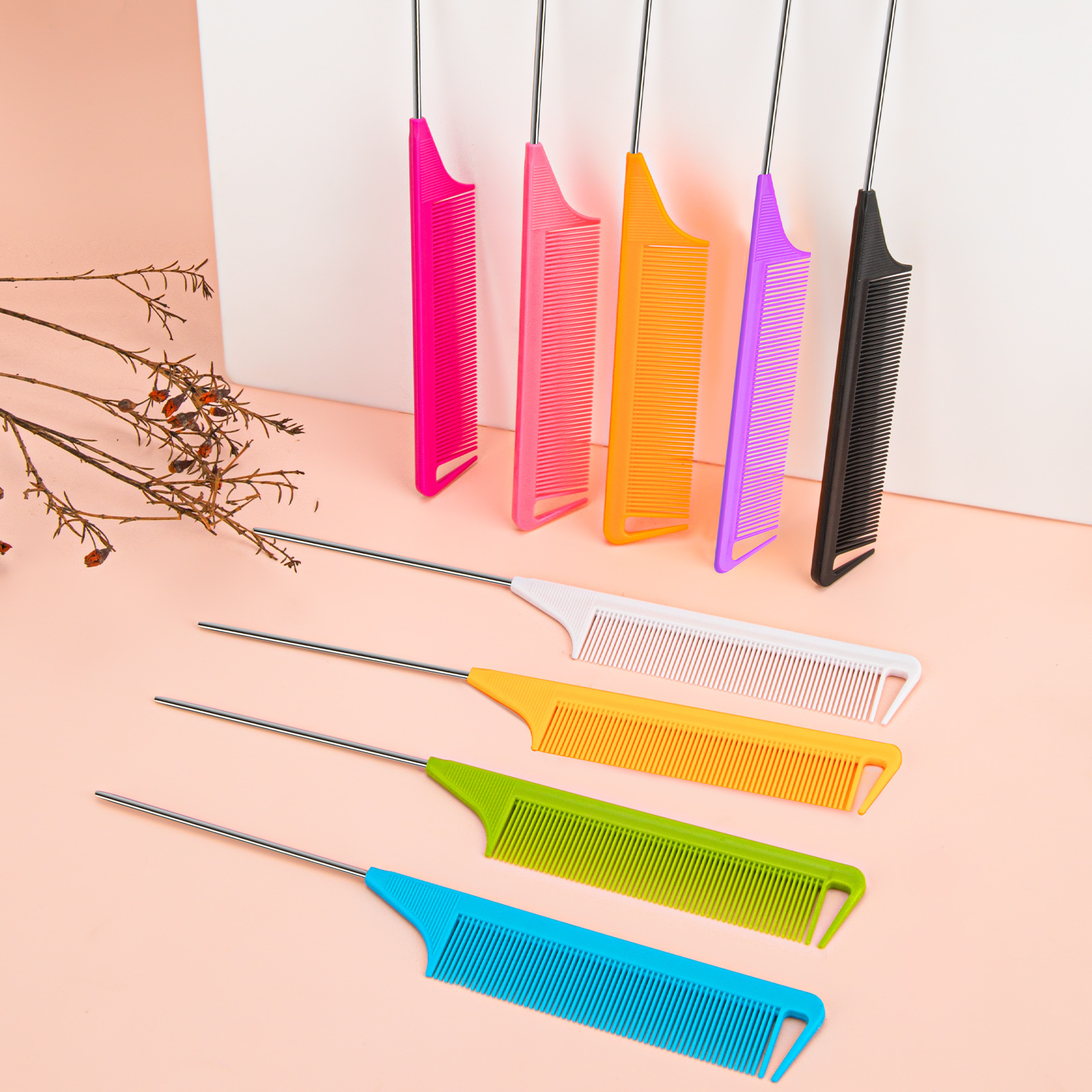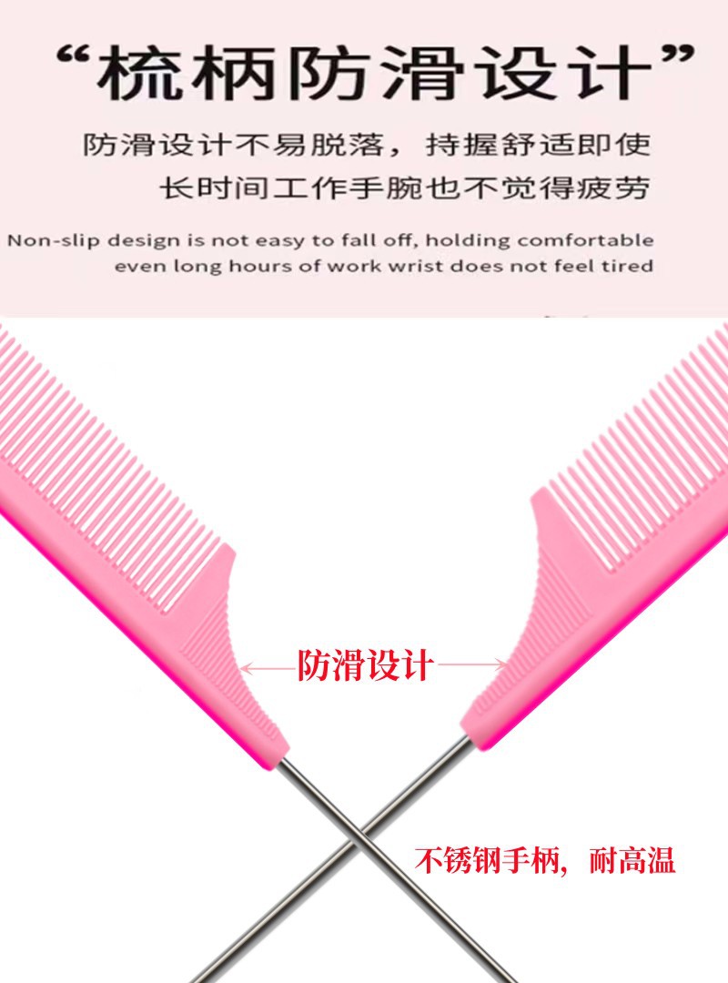 Красочная, мелкозубая, устойчивая к высоким температурам расческа с заостренным хвостом, расческа для мелирования с крючком.