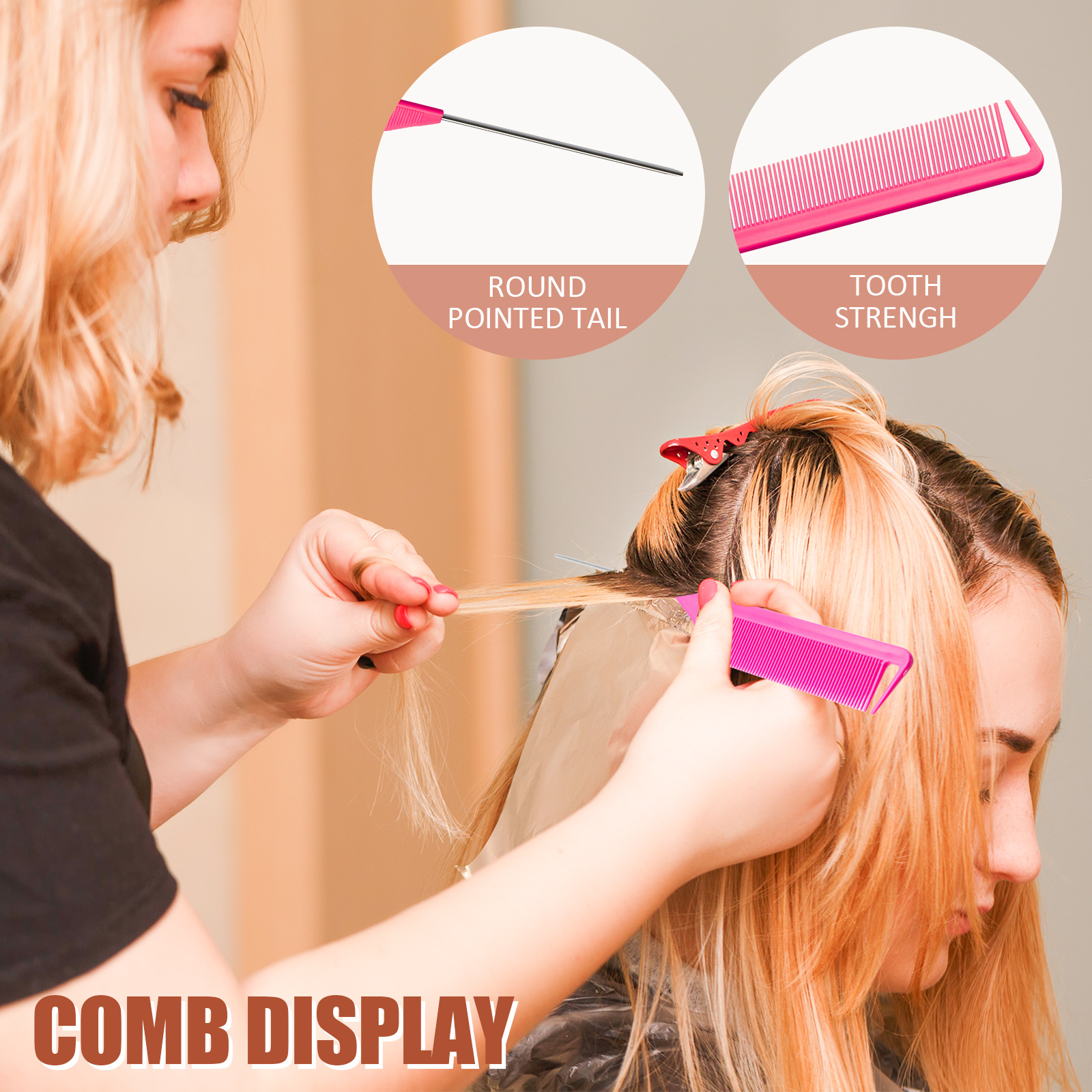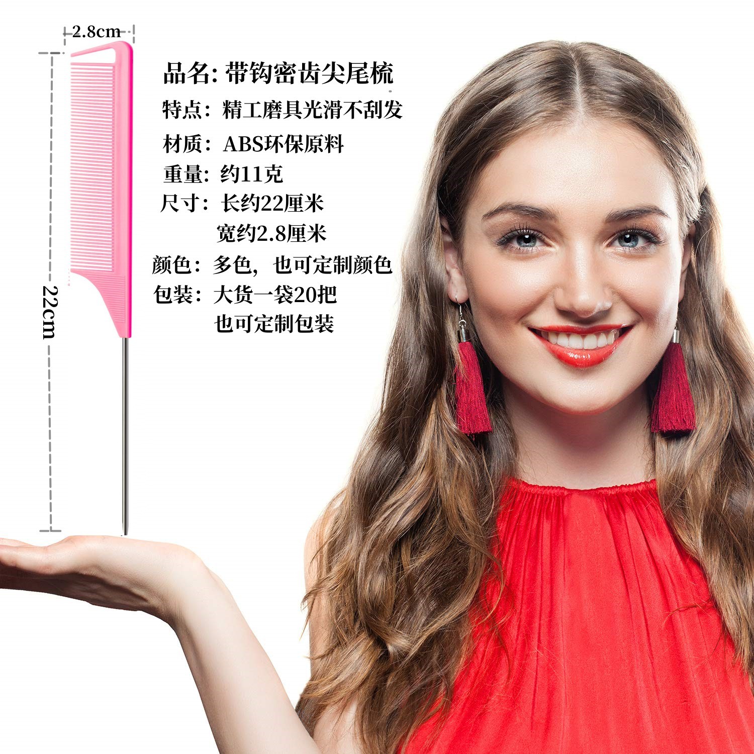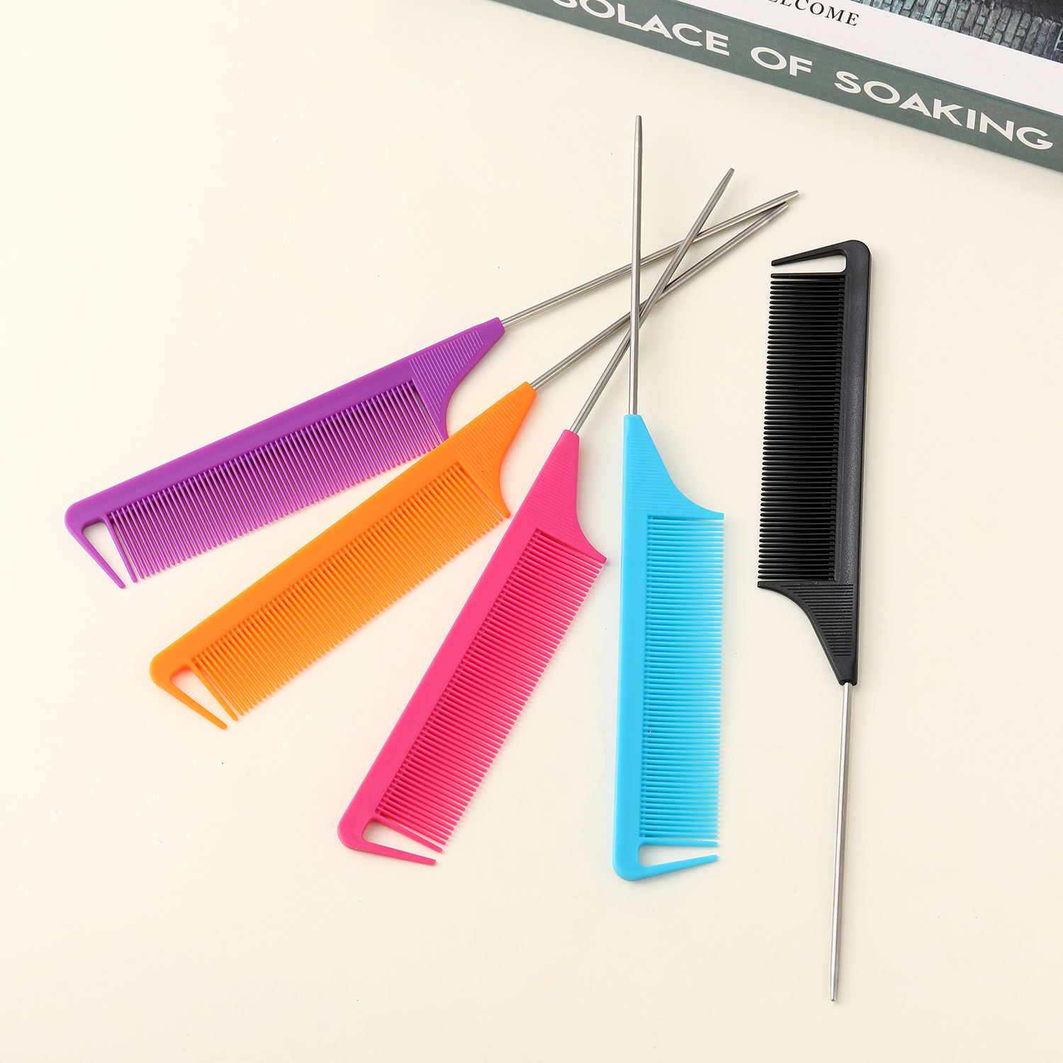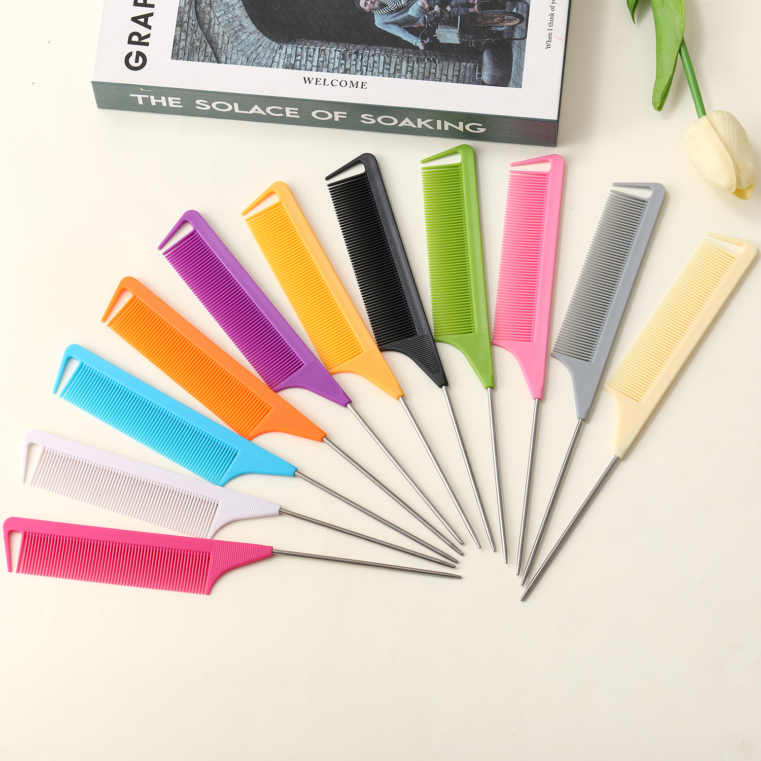 Красочная, мелкозубая, устойчивая к высоким температурам расческа с заостренным хвостом, расческа для мелирования с крючком.