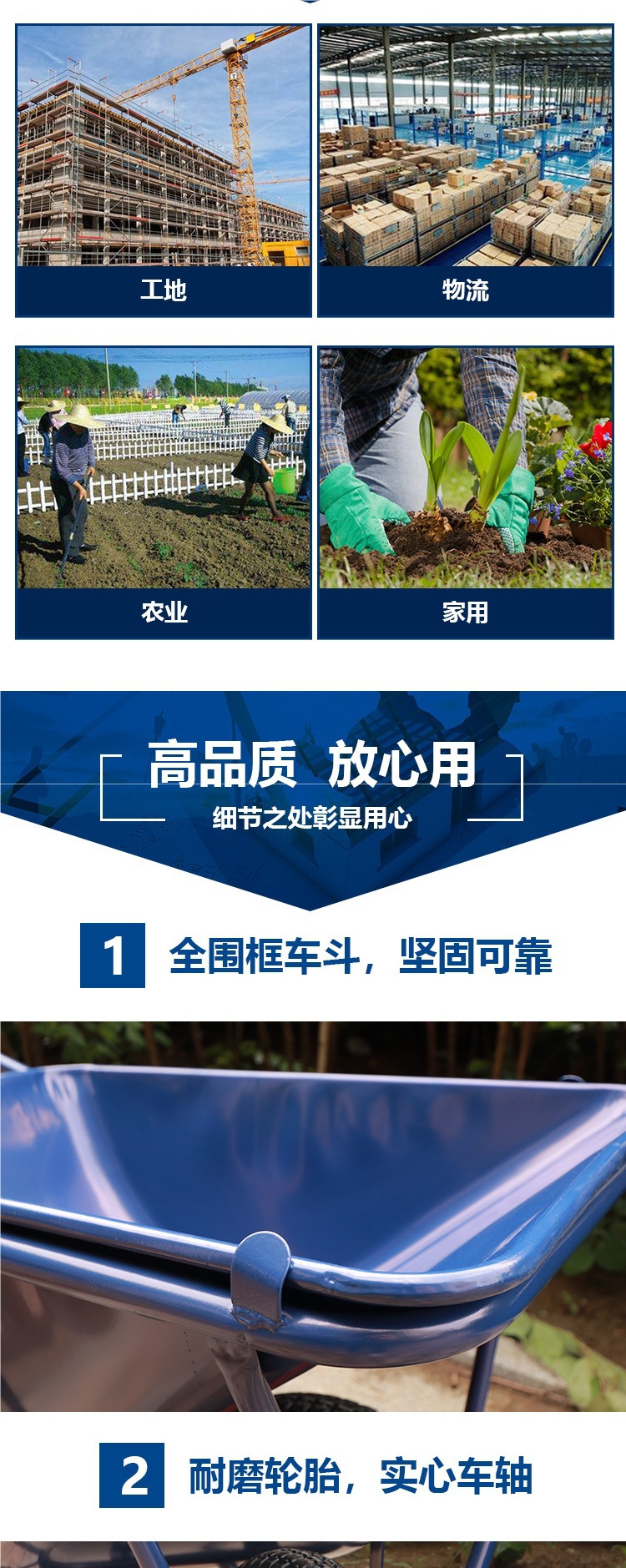 Специальная серия маленькой синей тачки с надувным колесом, грузоподъемность 100kg; Специальная серия маленькой синей тачки с твердым колесом, грузоподъемность 100kg; Модернизированное надувное колесо одноколесного велосипеда большого рамного типа с грузоподъемностью 150kg; Модернизированная тачка большого рамного типа с полезной нагрузкой на сплошное колесо 150kg; Модернизированная двухколесная тележка большого рамного типа с надувным колесом, грузоподъемность 175kg; Модернизированная двухколесная тележка большого рамного типа с цельными колесами, грузоподъемностью 175kg; Утолщенное оцинкованное надувное колесо тачки, грузоподъемность 200kg; Утолщенная оцинкованная тачка с цельным колесом, грузоподъемность 200kg; Утолщенное черное надувное колесо для одноколесного велосипеда, грузоподъемность 150kg; Утолщенное черное тачка с цельным колесом, грузоподъемность 150kg; Утолщенное и усиленное желтое надувное колесо тачки, грузоподъемность 200kg; Утолщенное и усиленное желтое колесо тачки, грузоподъемность 200kg