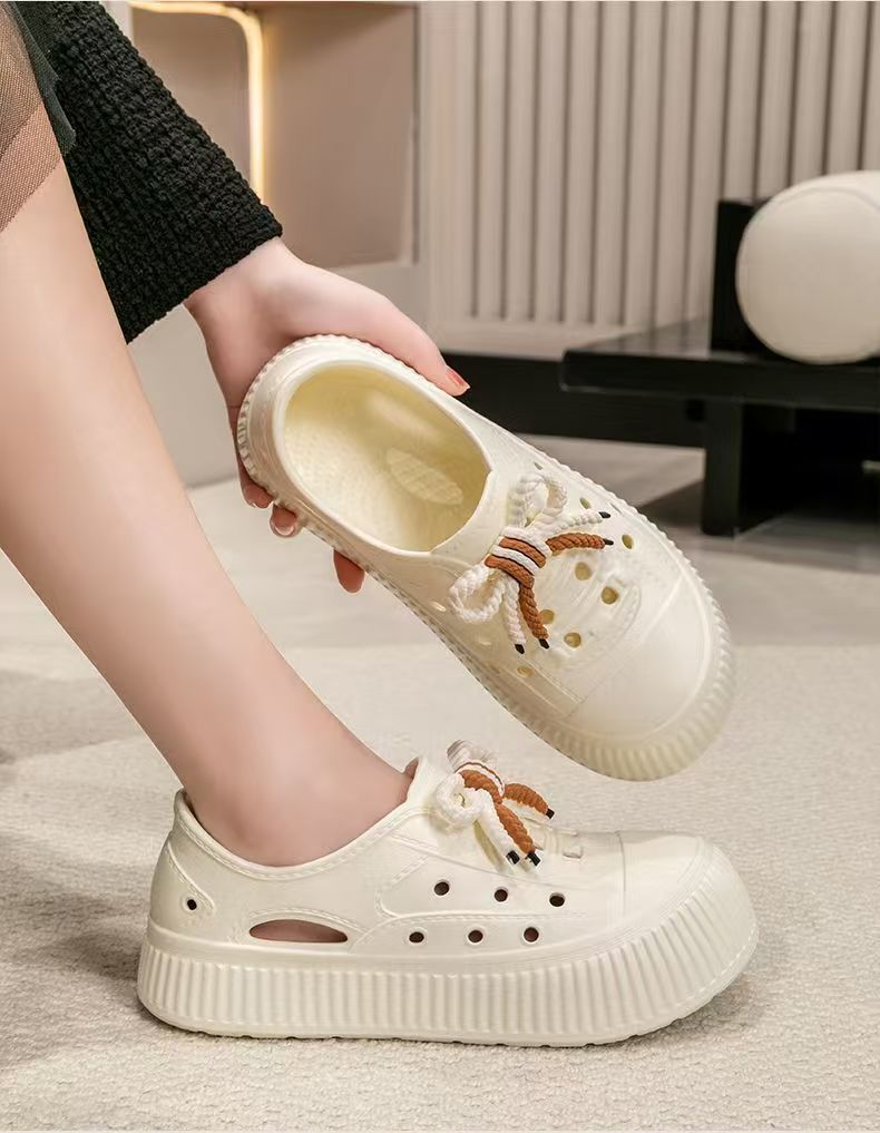 Женские летние сабо 2025 года с вырезами, толстой подошвой из ЭВА, закрытым носком, спортивная обувь для студенток, удобные и модные сандалии
