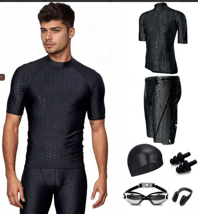 Черный с цветочными полосками; черный с оранжевым; Черный мужской костюм-двойка; Мужской набор "Рыбья чешуя"; оборудование; 708 комплект