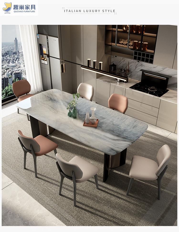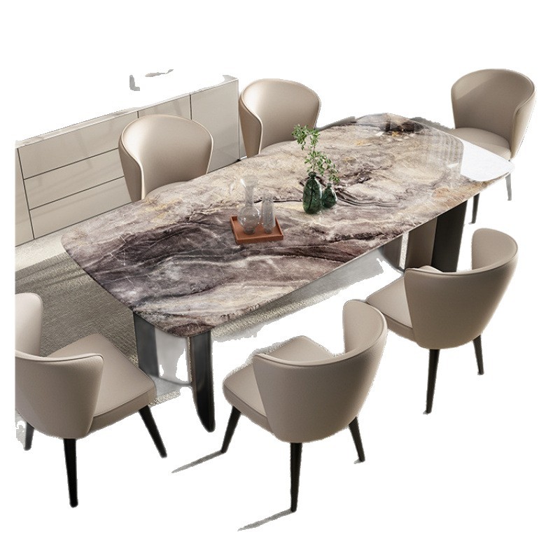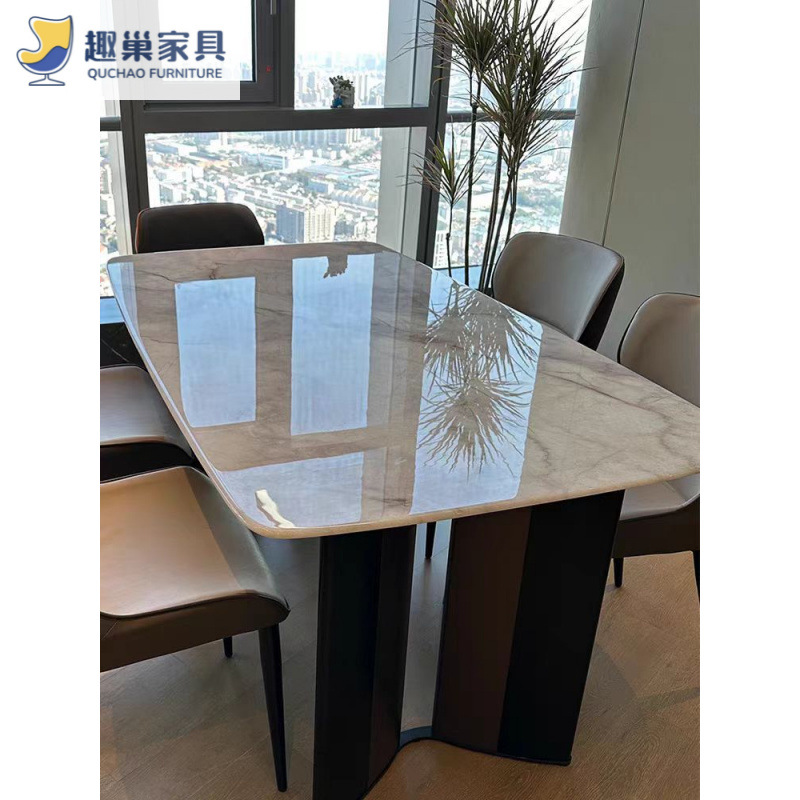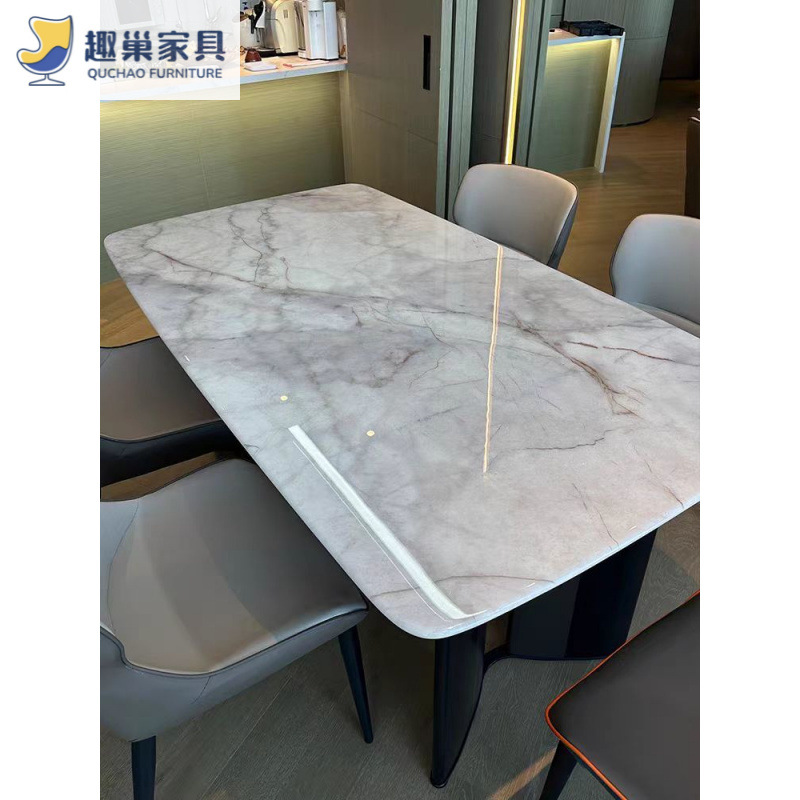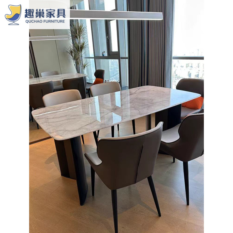 Обеденный стол и стулья из ультра-кристаллического камня в стиле лайт-люкс, обеденный стол для небольшой квартиры, итальянский современный минималистичный прямоугольный обеденный стол для дома.