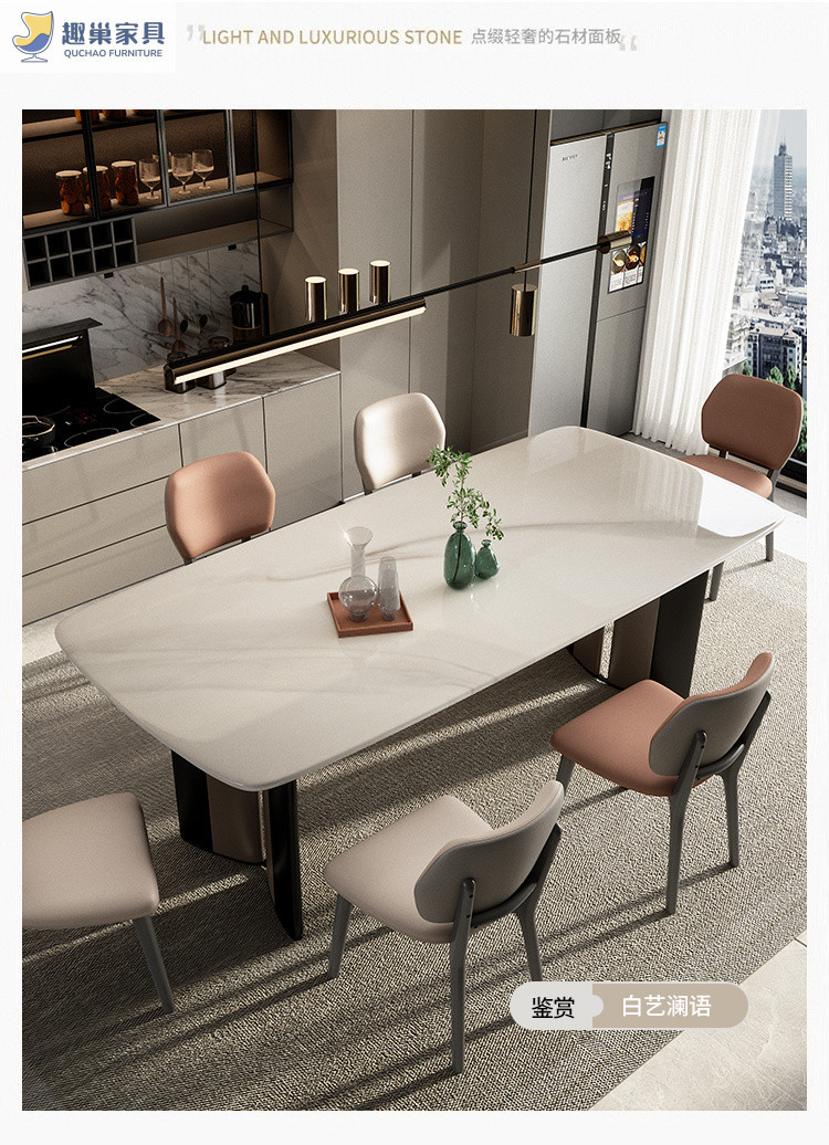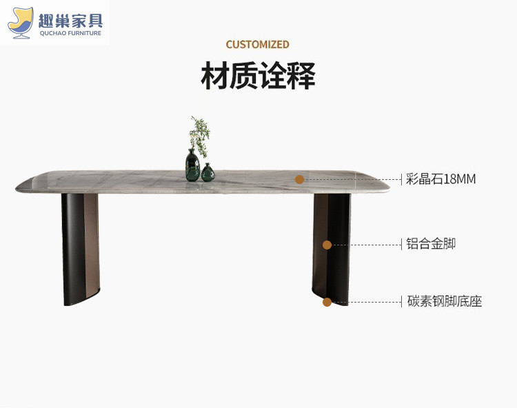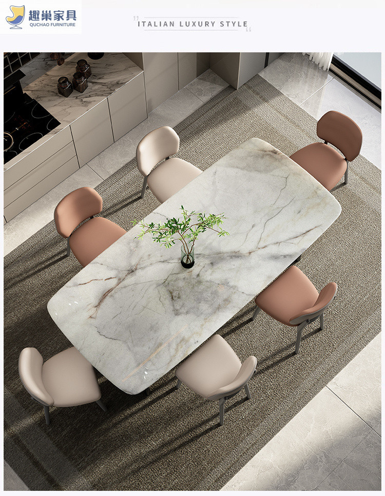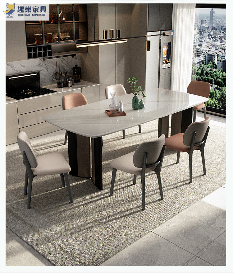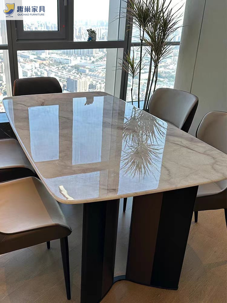 Обеденный стол и стулья из ультра-кристаллического камня в стиле лайт-люкс, обеденный стол для небольшой квартиры, итальянский современный минималистичный прямоугольный обеденный стол для дома.