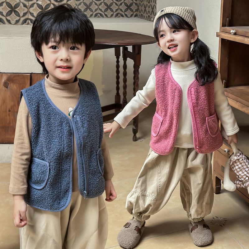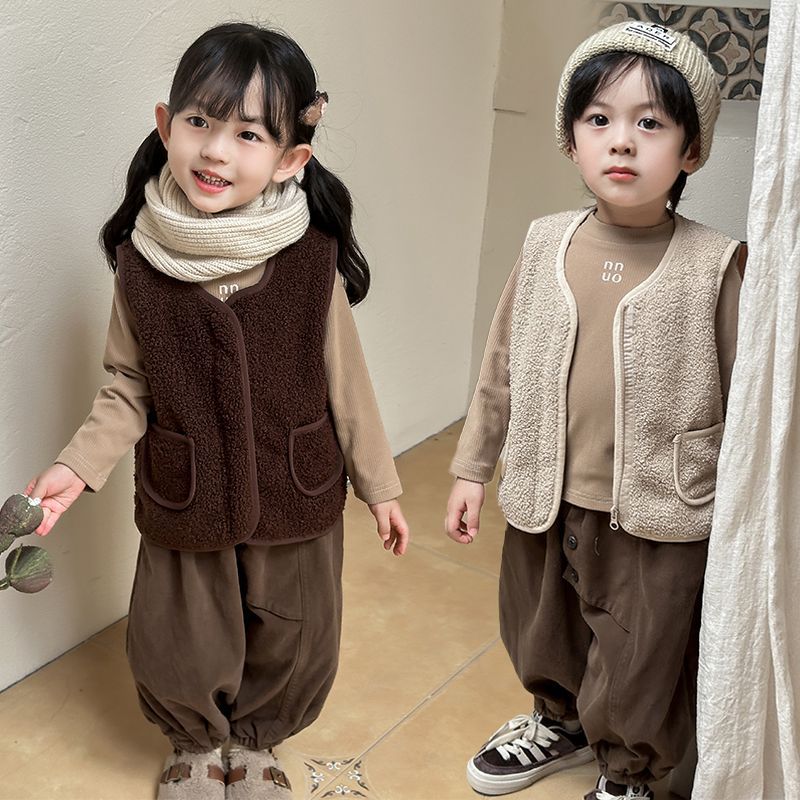 Детский терможилет с бархатной подкладкой из овечьей шерсти, новинка 2024 года, осенне-зимний стиль для девочек и мальчиков, весенне-осенний жилет для мальчиков