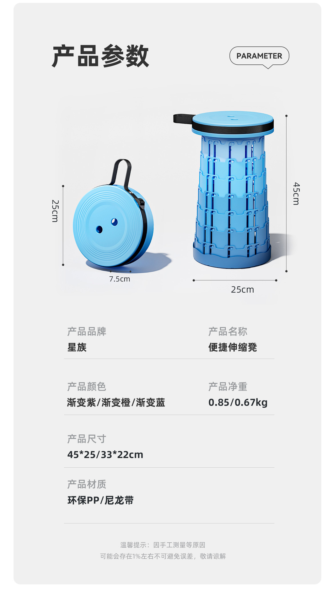 Телескопическая табуретка на открытом воздухе пикник новый градиент кемпинг путешествия Рыбалка в очереди Маза пластиковый складной стул портативный