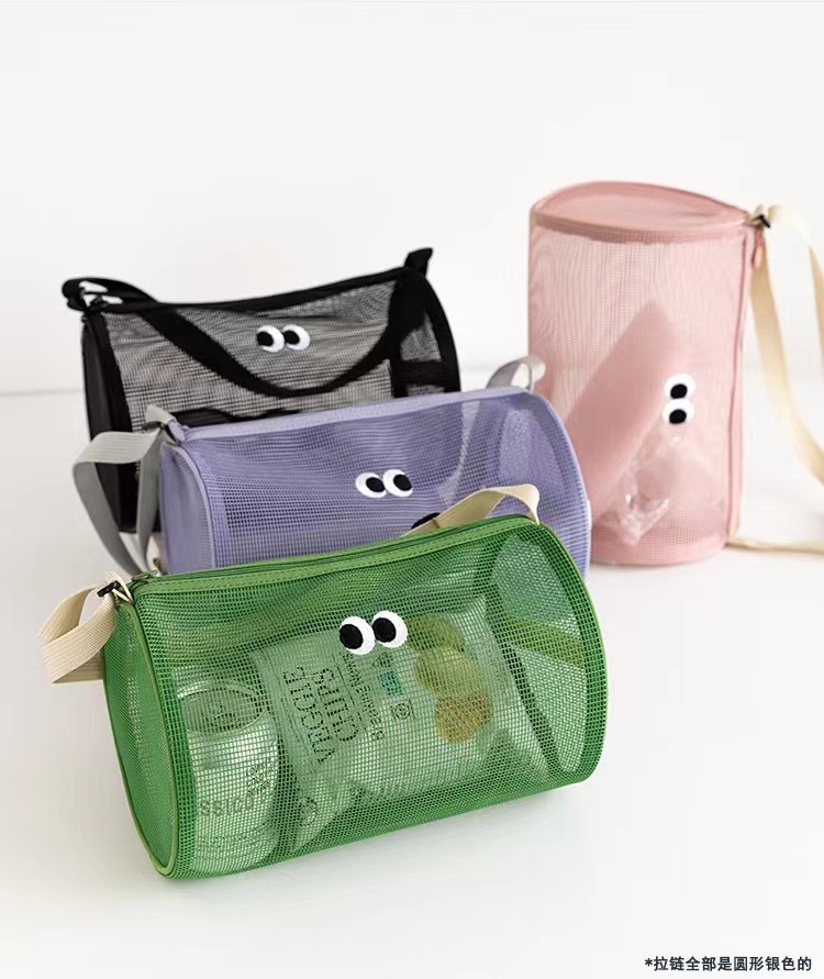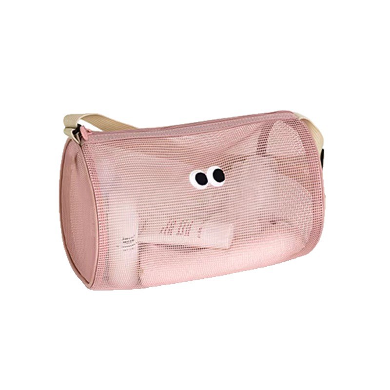 Цилиндрическая сетчатая сумка для туалетных принадлежностей, дорожная сумка через плечо, пляжная сумка для плавания, большая вместительная портативная сумка для хранения принадлежностей для ванны и душа