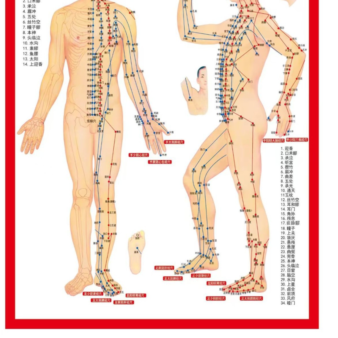 Схема акупунктурных точек человеческого тела, настенная диаграмма акупунктурных точек, бесплатный образец высокой четкости, клиническое руководство для обучения традиционной китайской медицине