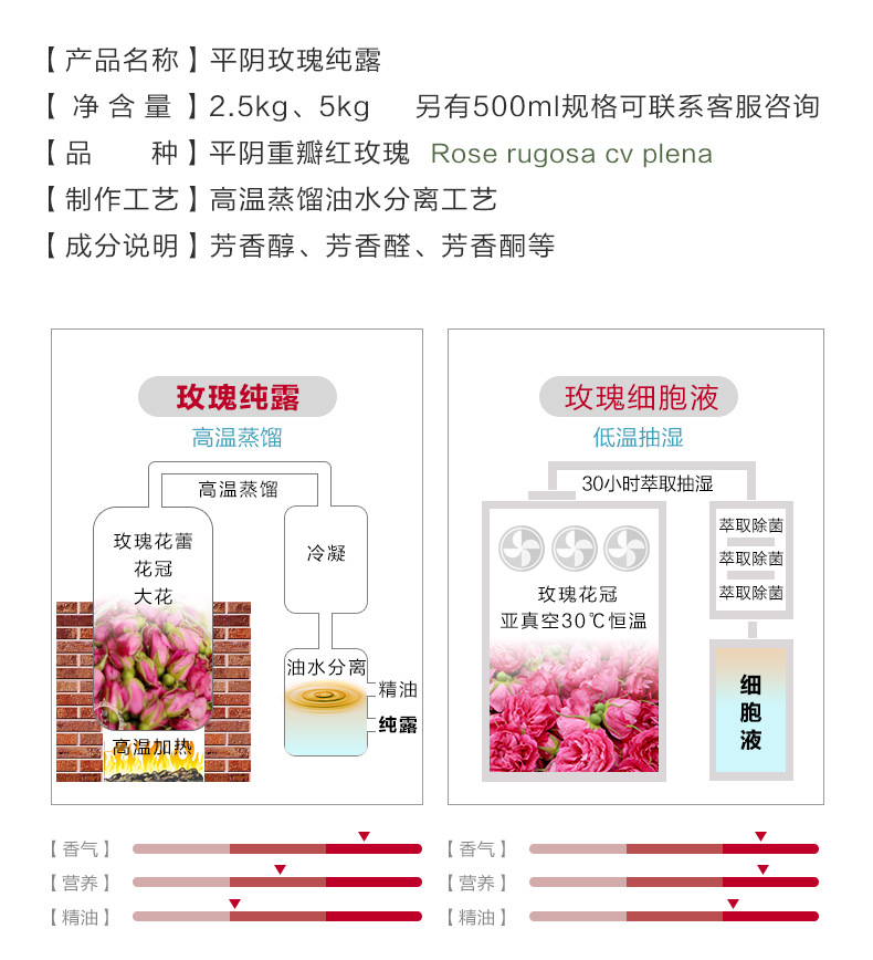 平阴原产地工厂,纯露原料原液不稀释不提油,不回流重复提纯。