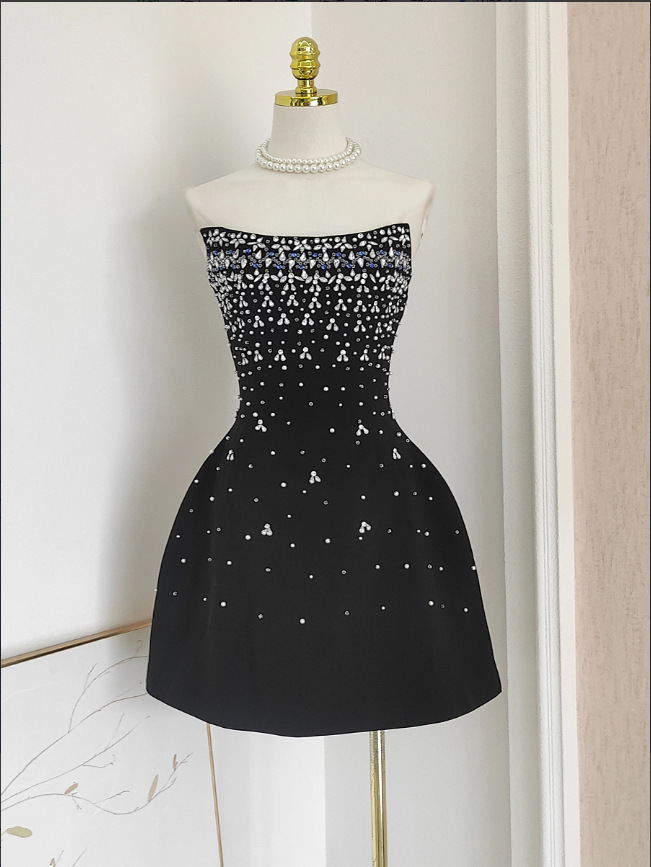Высококачественное платье без бретелек в форме песочных часов, ручная работа со стразами во французском стиле, короткое вечернее платье в стиле ретро.