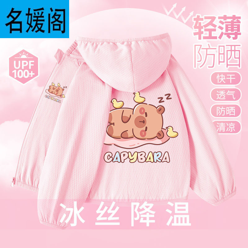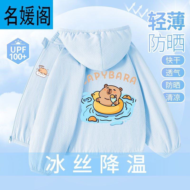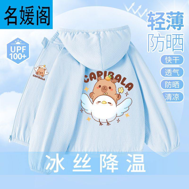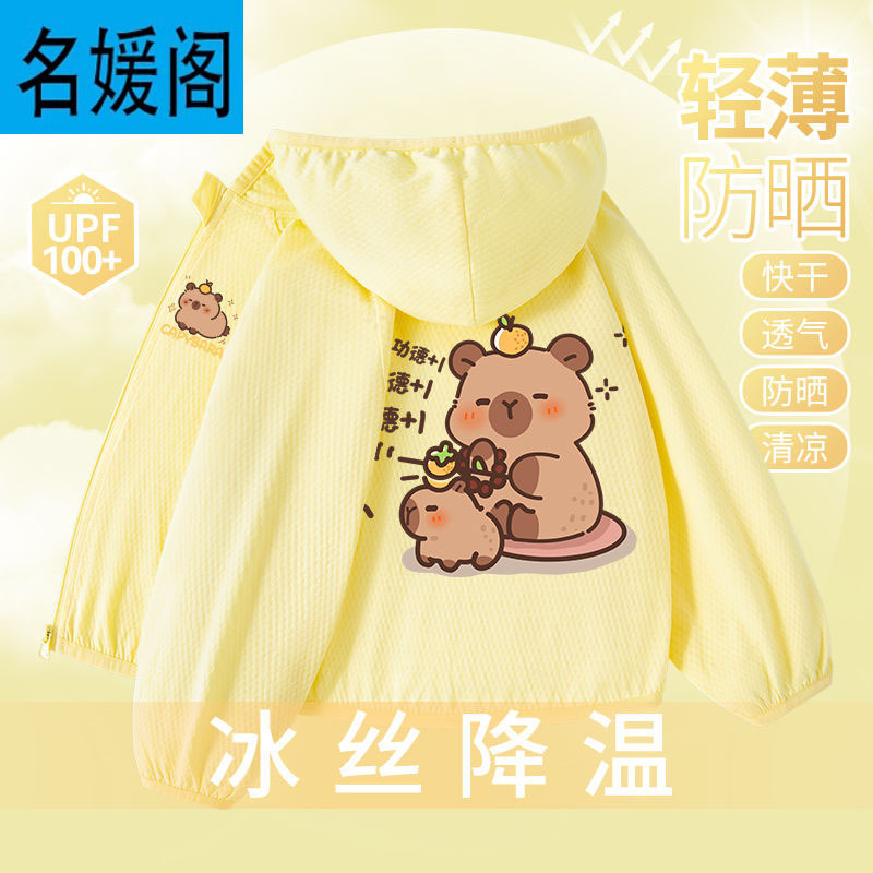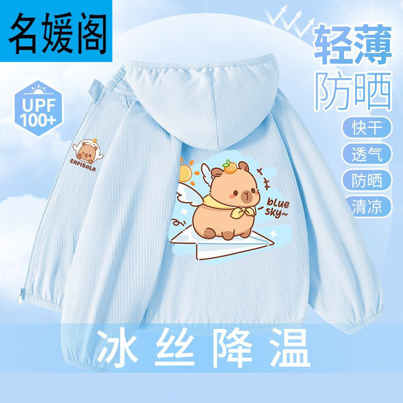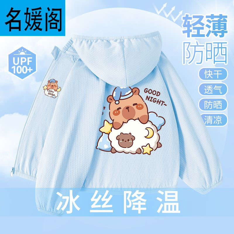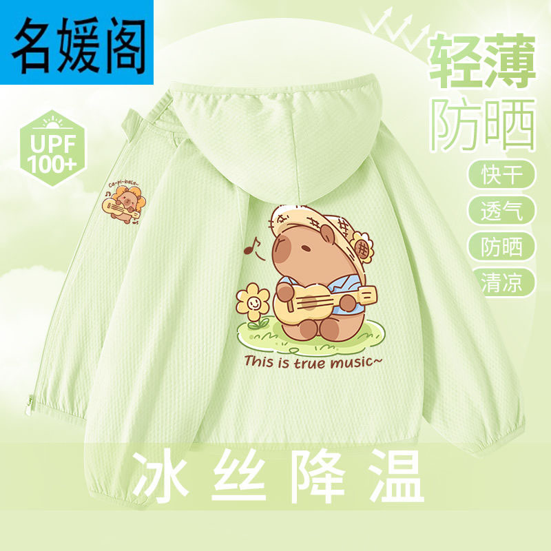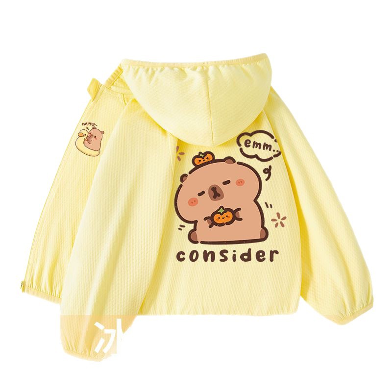 Детская летняя куртка из ледяного шелка для защиты от солнца, лето 2025, новая, UPF100+, быстросохнущая, тонкая, модная, с капибарой.