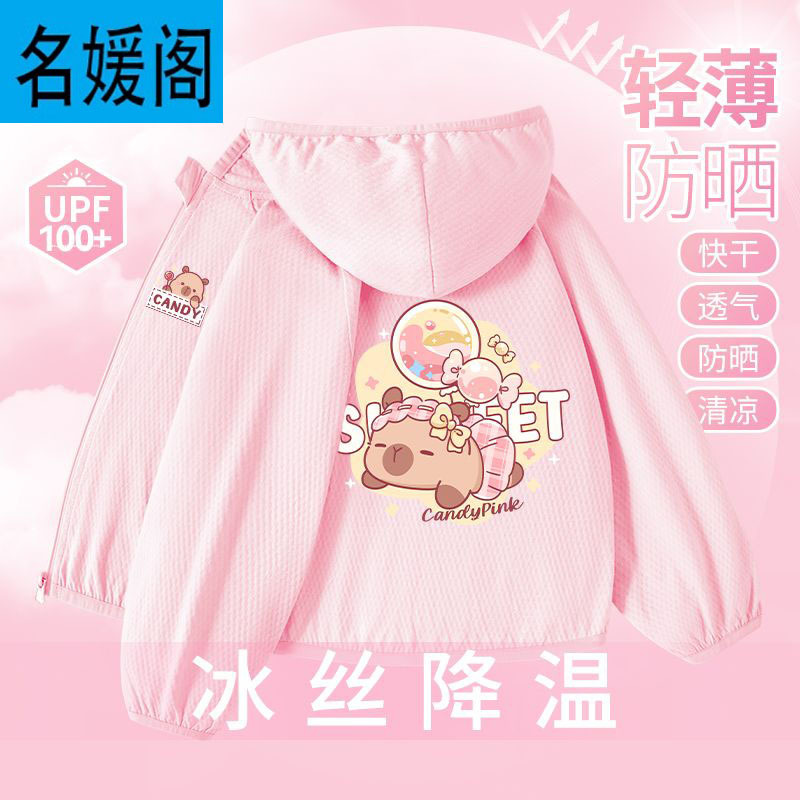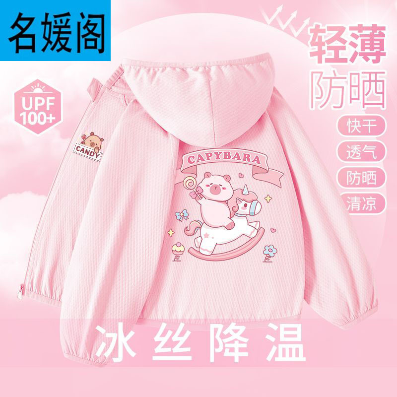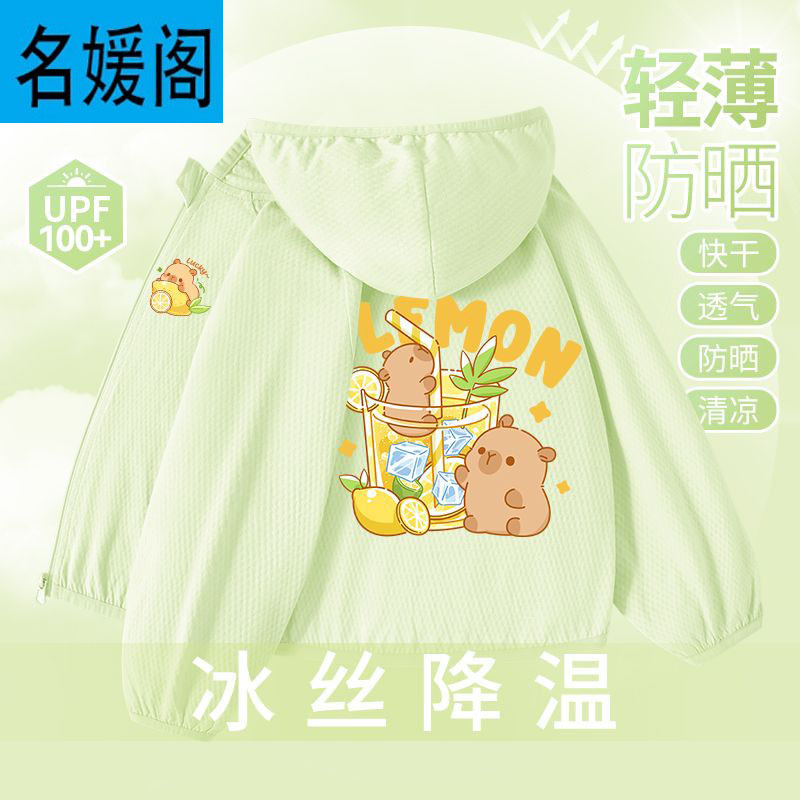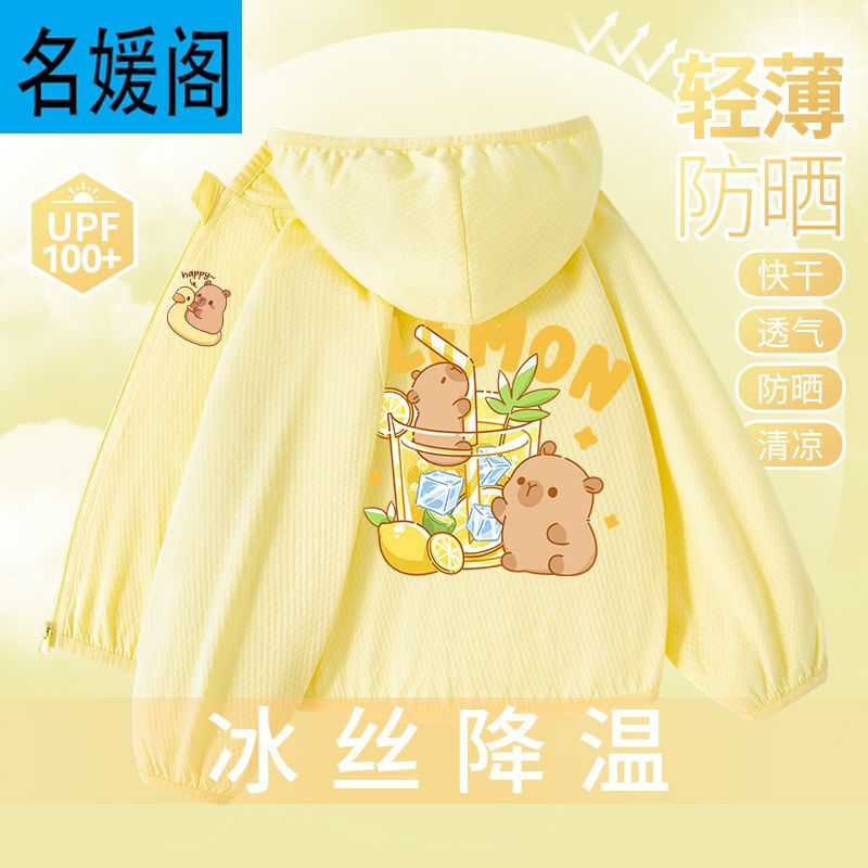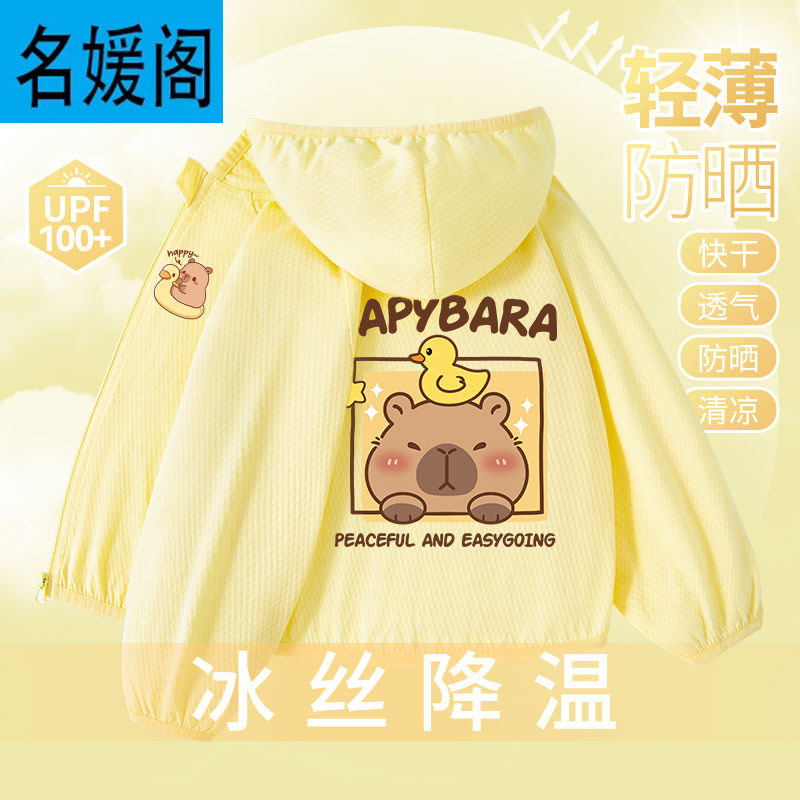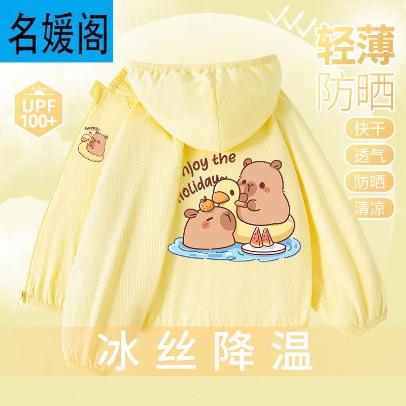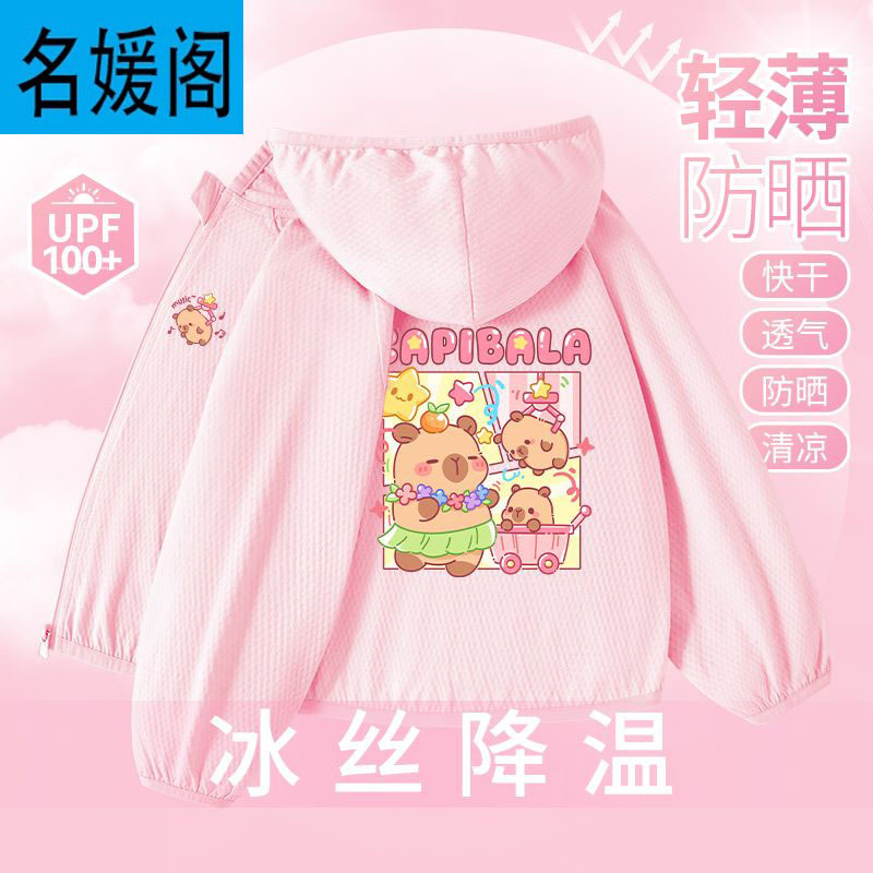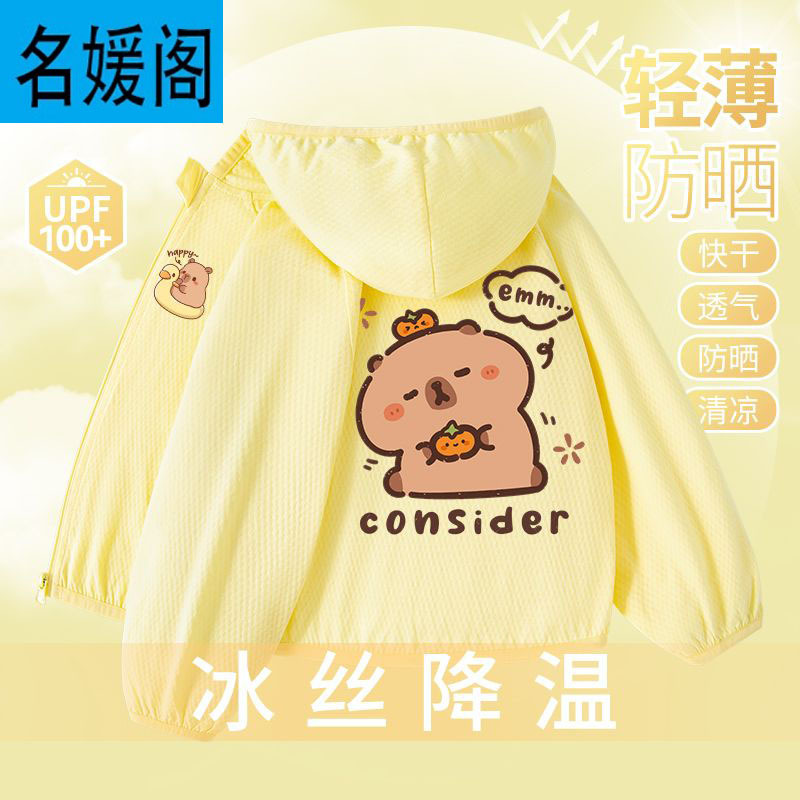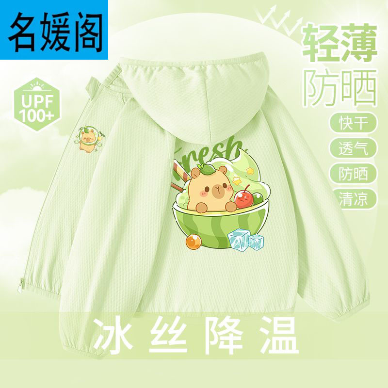 Детская летняя куртка из ледяного шелка для защиты от солнца, лето 2025, новая, UPF100+, быстросохнущая, тонкая, модная, с капибарой.