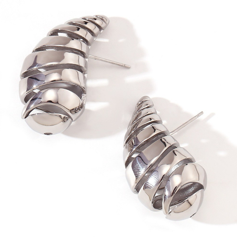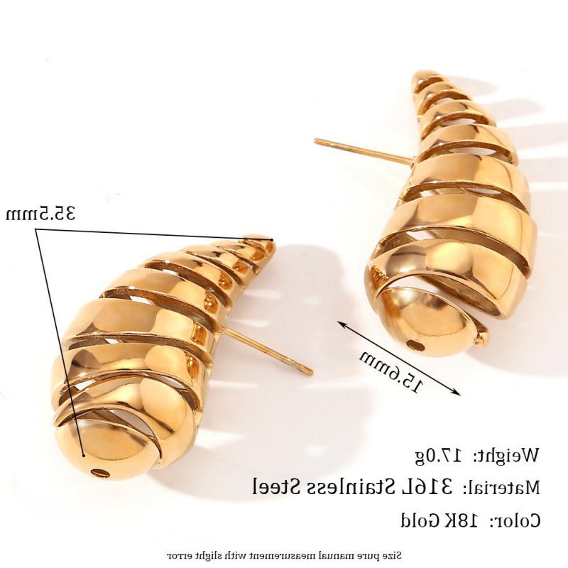Европейские и американские трансграничные французские ретро-глянцевые серьги-капли для женщин, полые стерео серьги в форме груши из нержавеющей стали с покрытием из 18-каратного золота