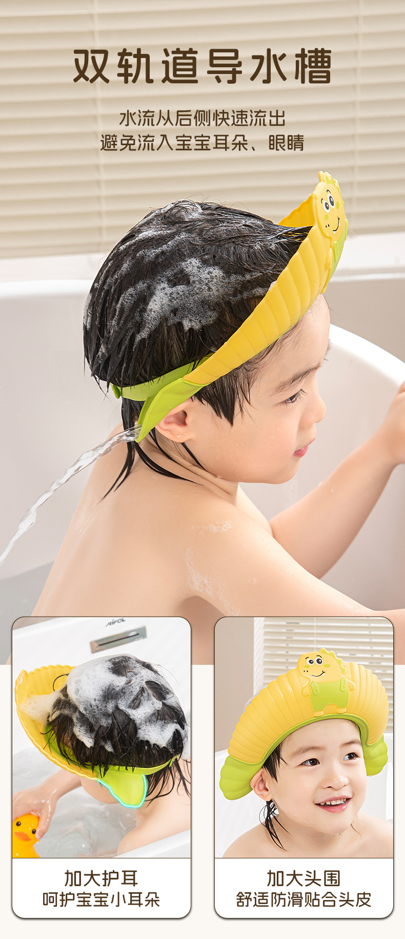 Детские шампуни артефакт Детские шампуни, водяные шапки, детские шампуни, регулируемые наушники, водонепроницаемые шапки для душа динозавров