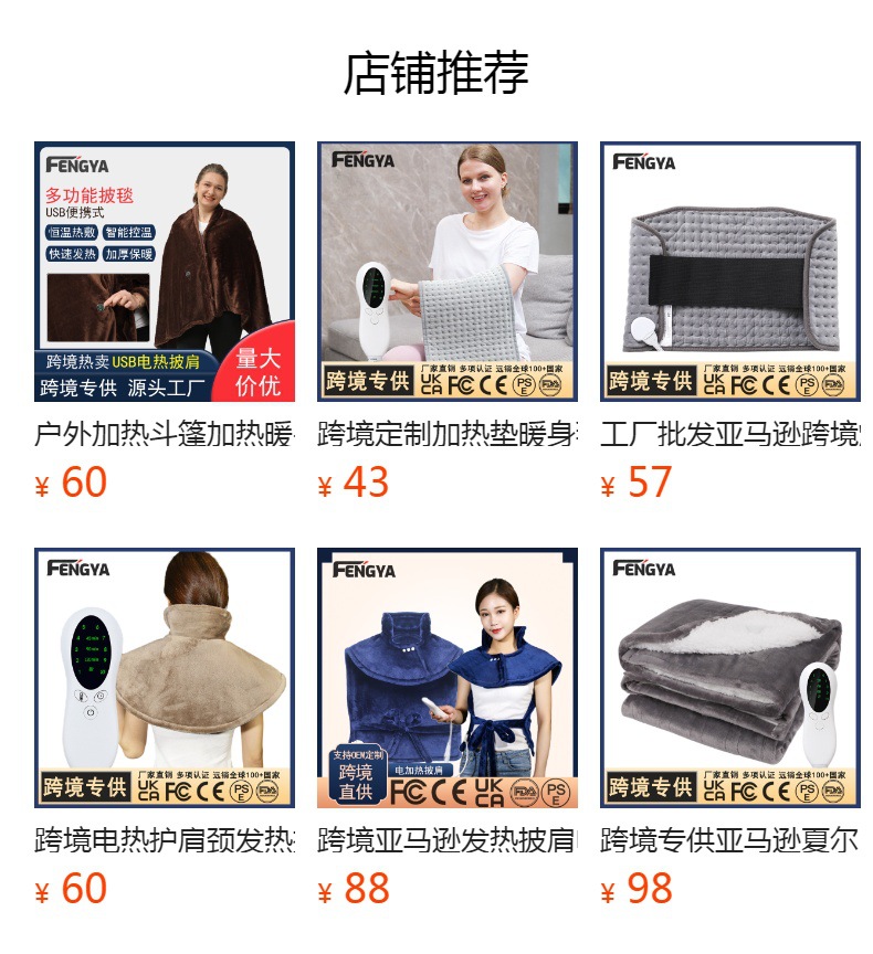 5、我们是加热垫、电热毯源头工厂,支持一件代发,分销0门槛,免收代理费,提供跨境电商数据包,及坚实的售后保障!