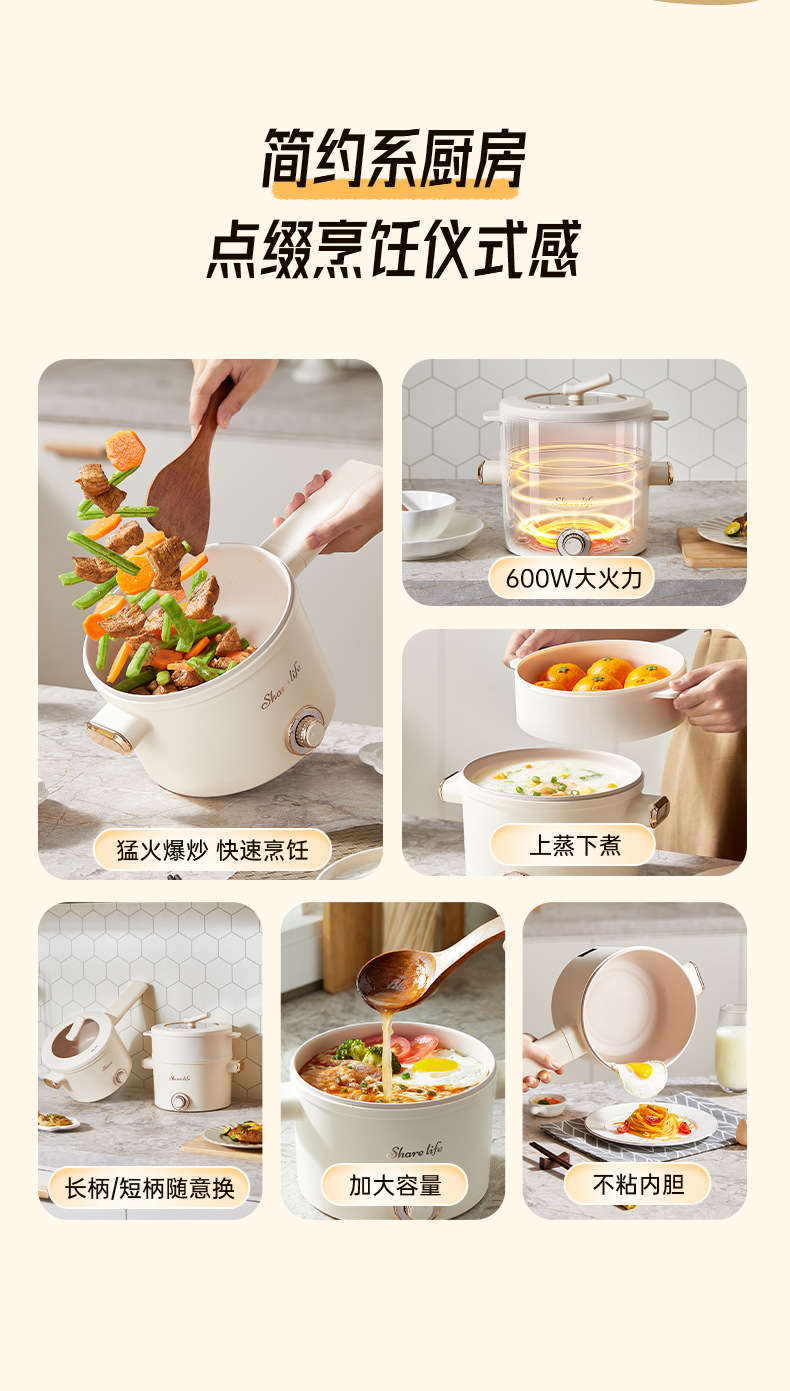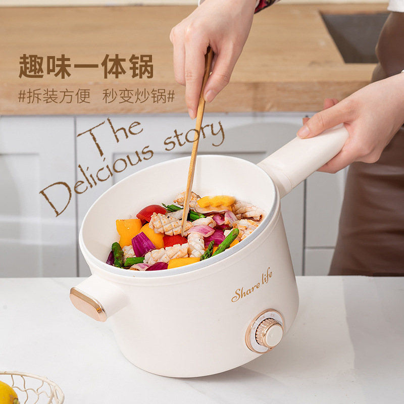 Новая маленькая электрическая кастрюля для студентов общежитий, чтобы готовить на пару и жарить. Маленькая электрическая кастрюля для одного человека. Умная ручная электрическая кастрюля «все в одном».