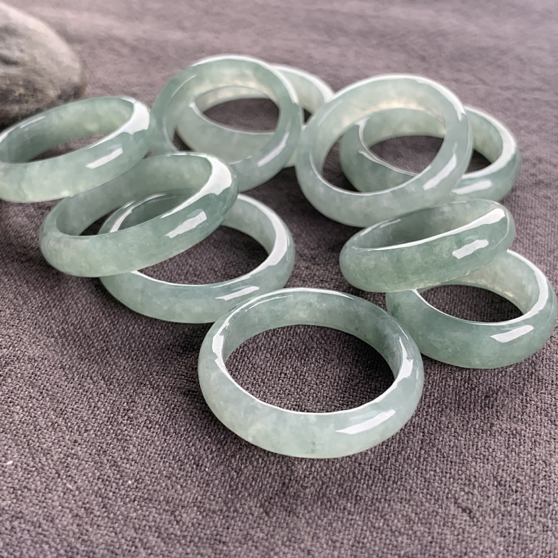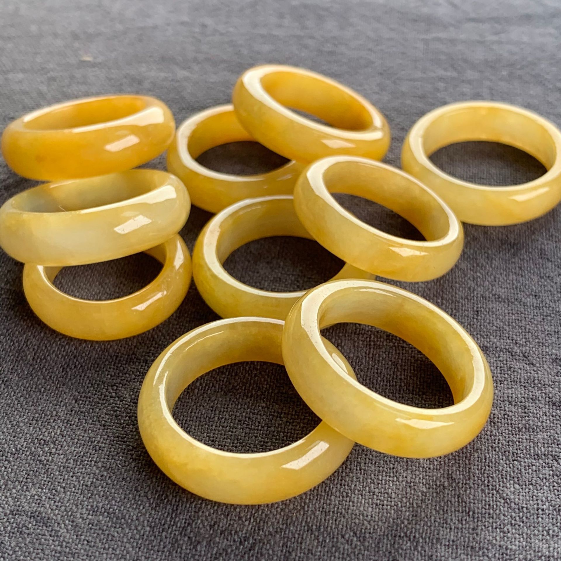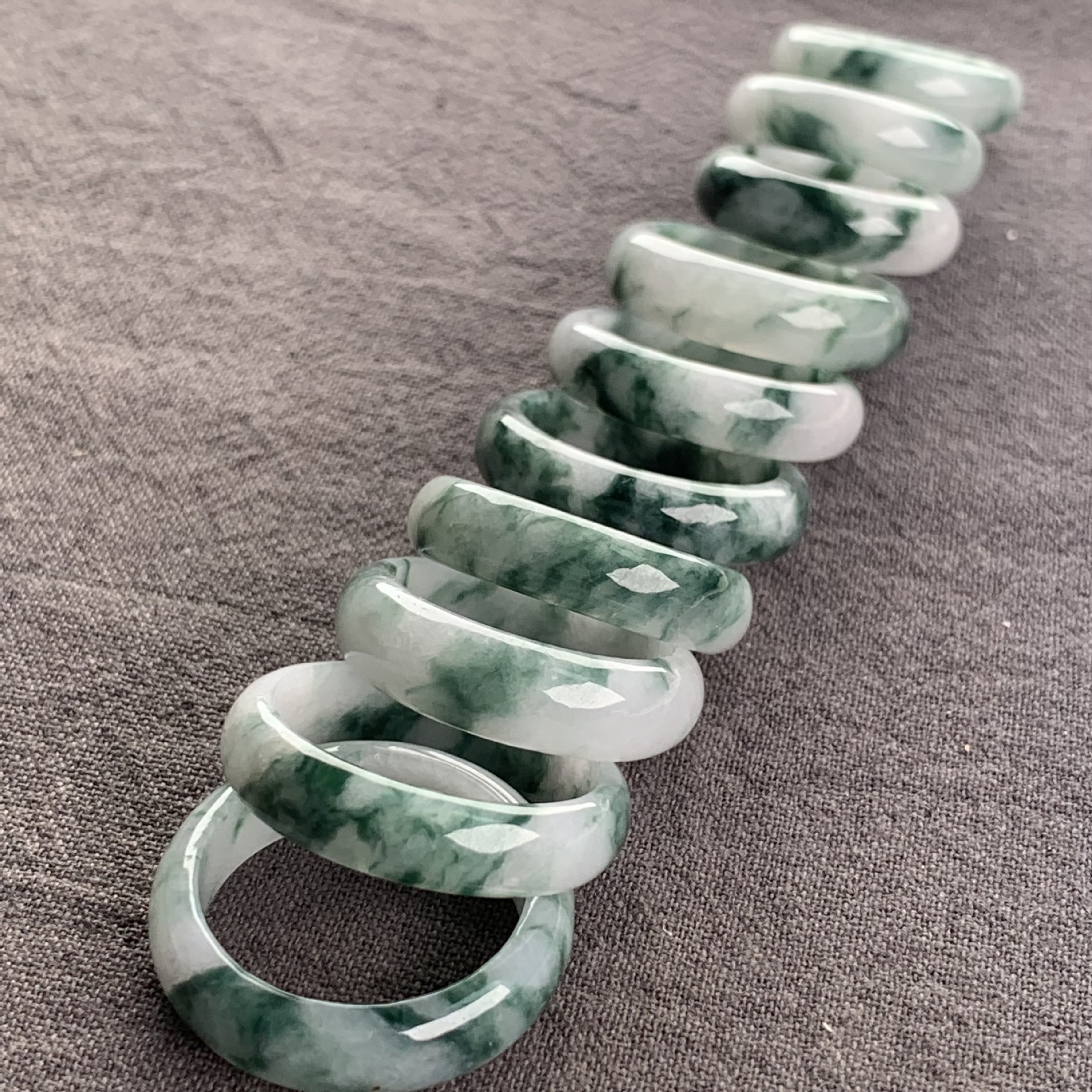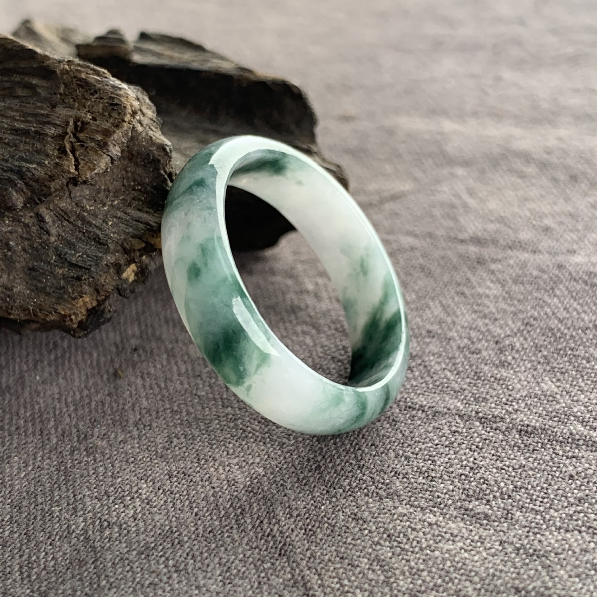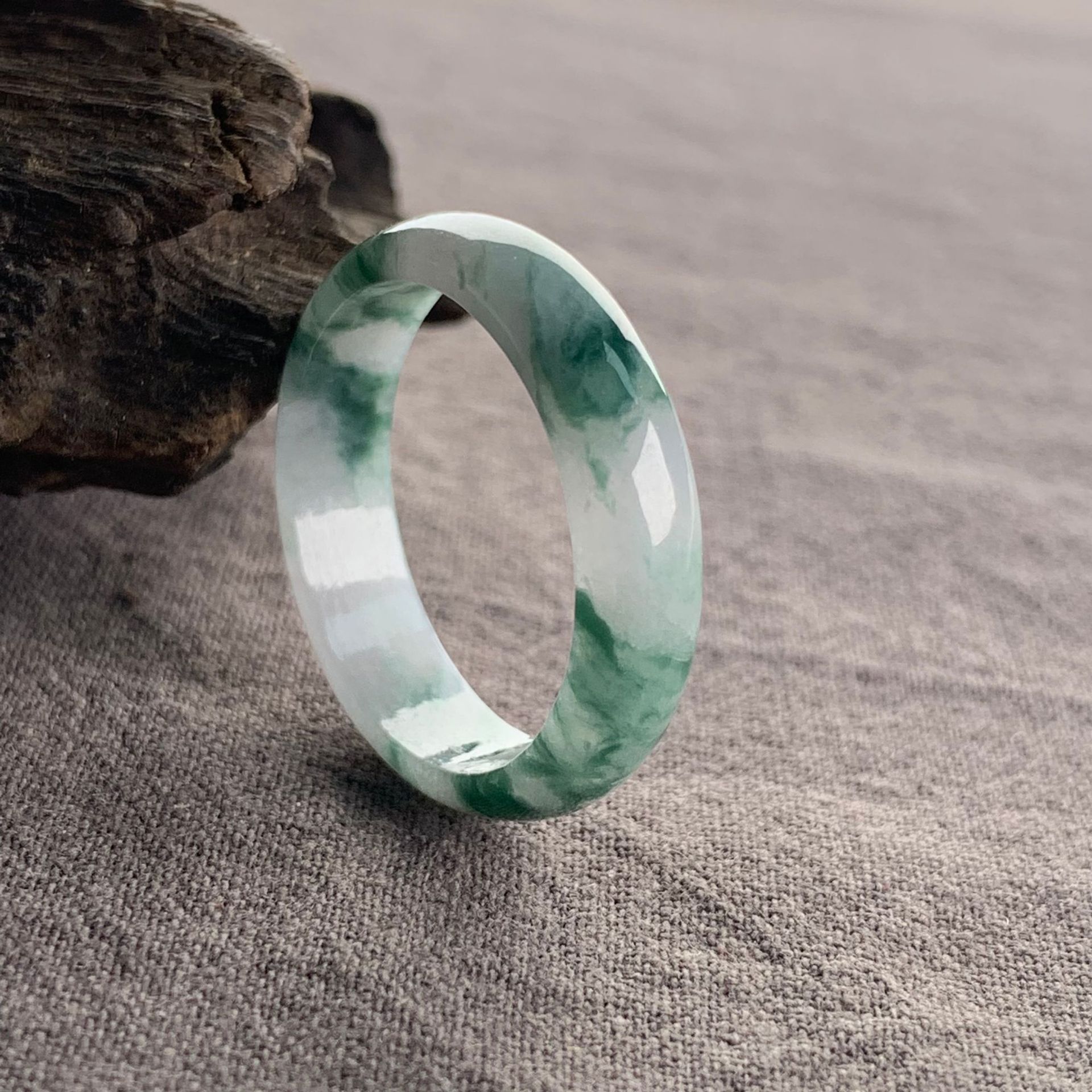 Кольцо из бирманского нефрита класса А, зеленое с цветочными узорами, кольцо типа «ледяная курица», нефрит цвета «жидкое масло» с зелеными узорами, пара колец.