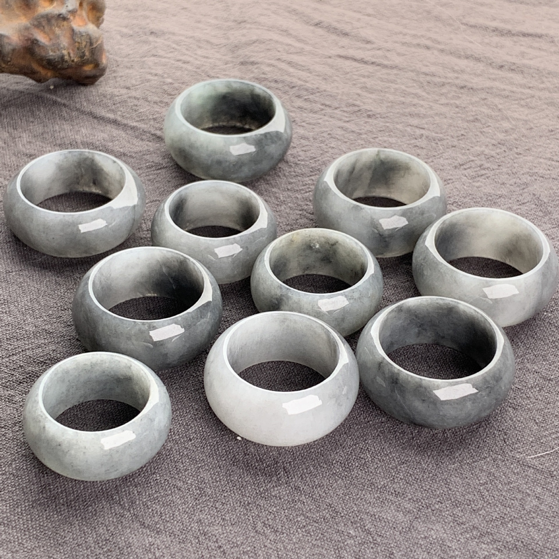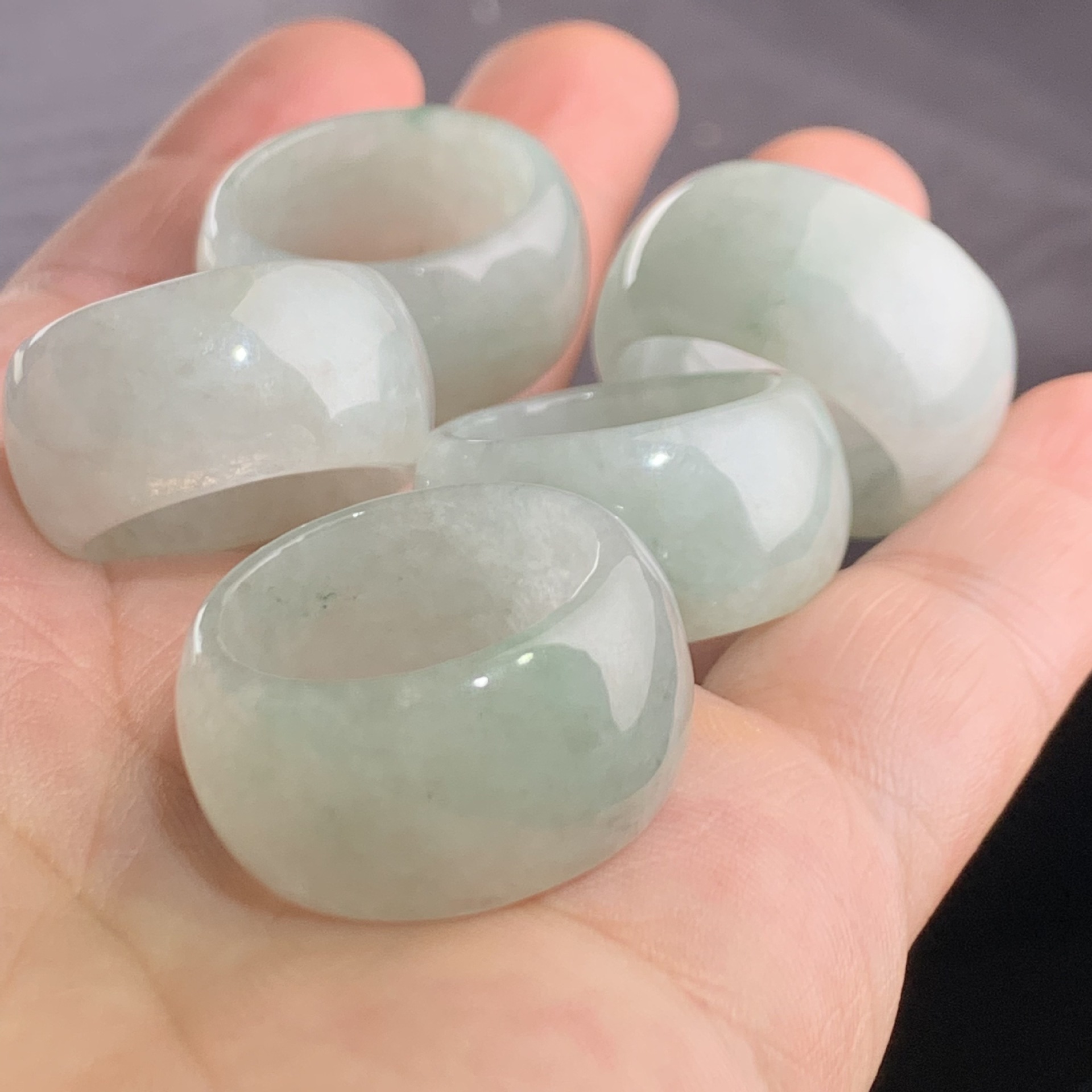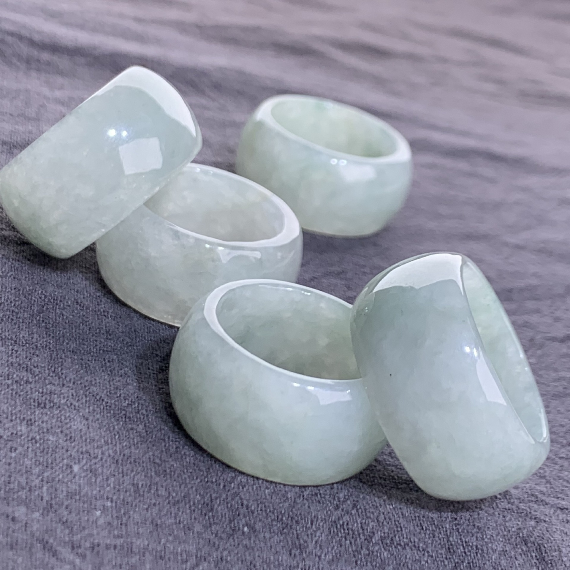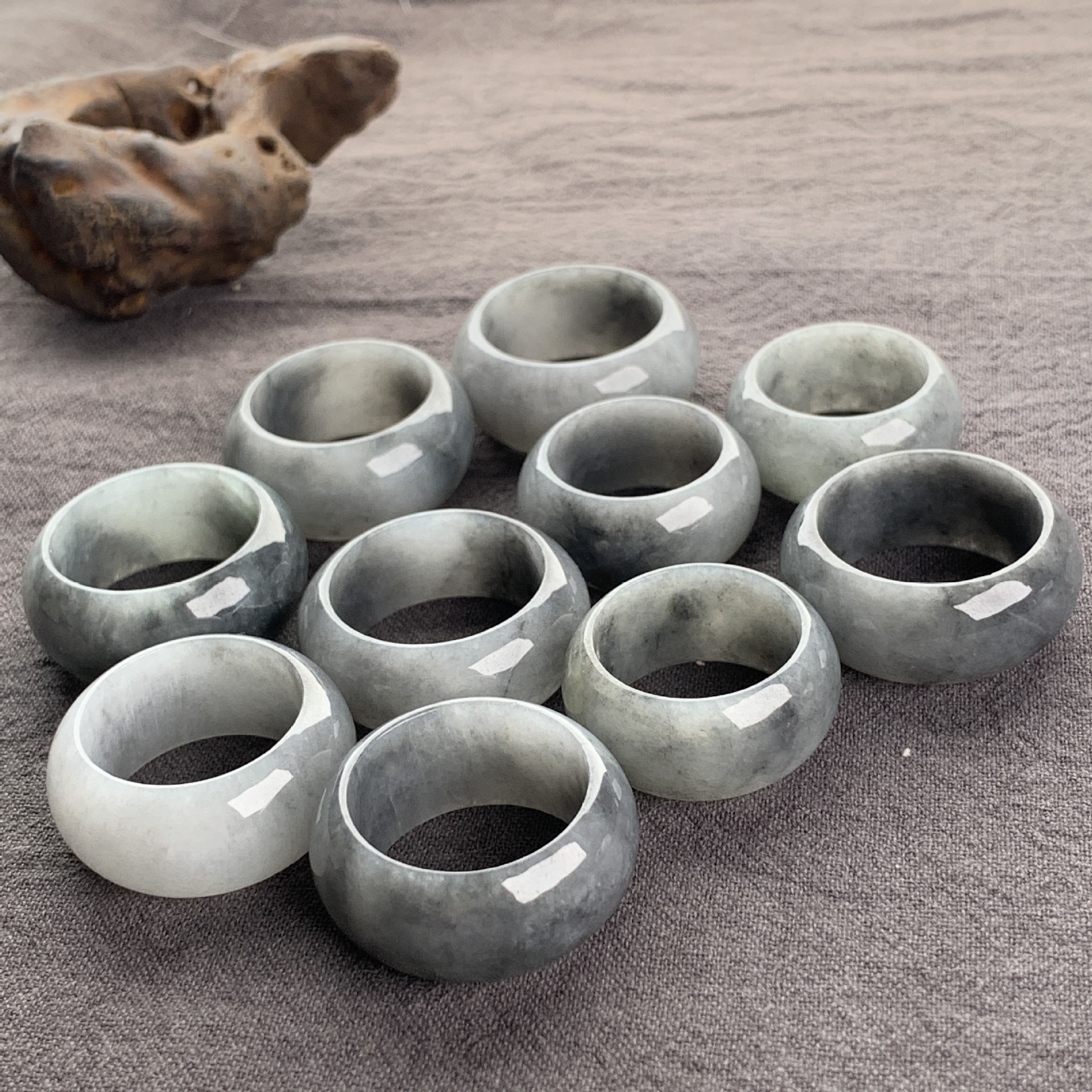 Кольцо из бирманского нефрита класса А, зеленое с цветочными узорами, кольцо типа «ледяная курица», нефрит цвета «жидкое масло» с зелеными узорами, пара колец.
