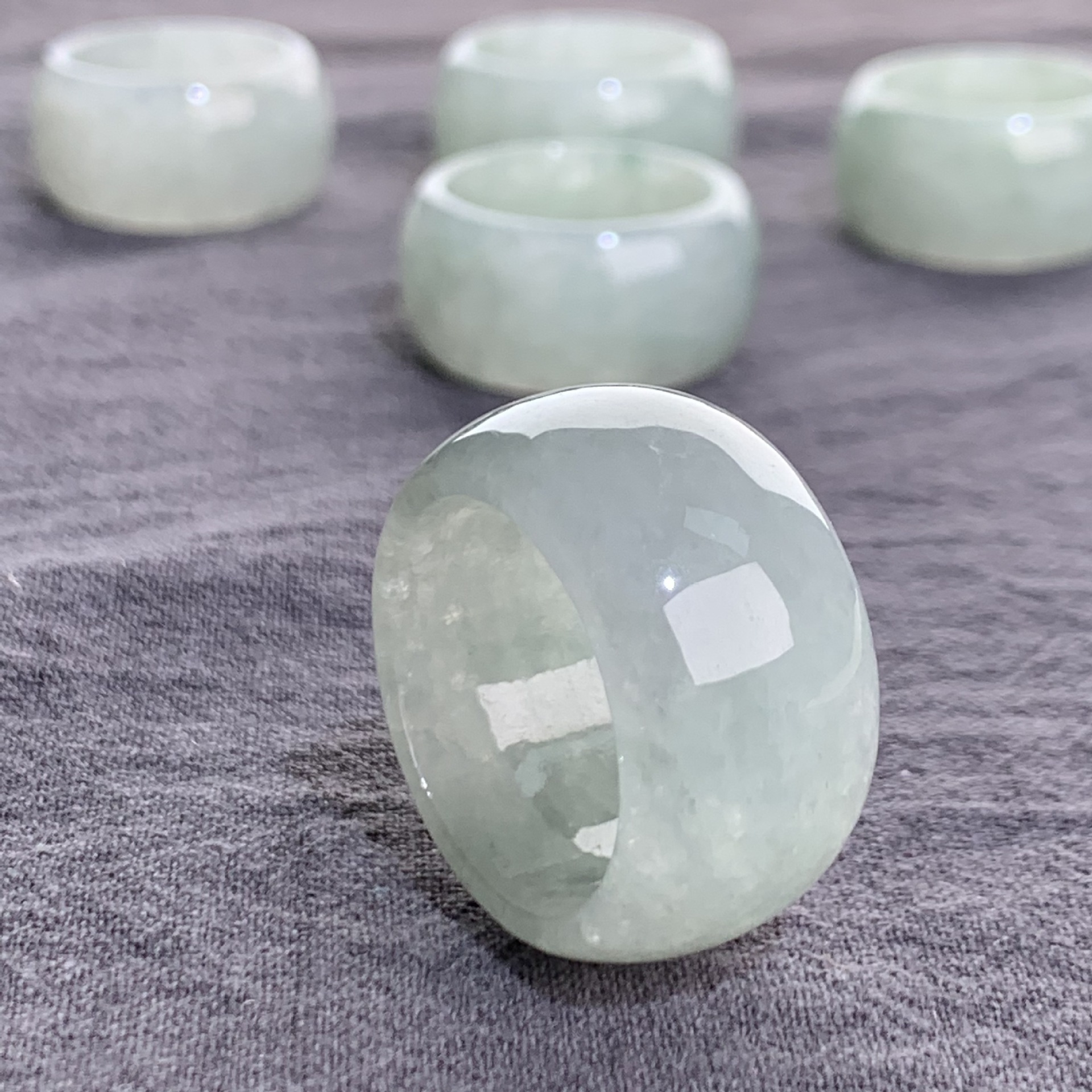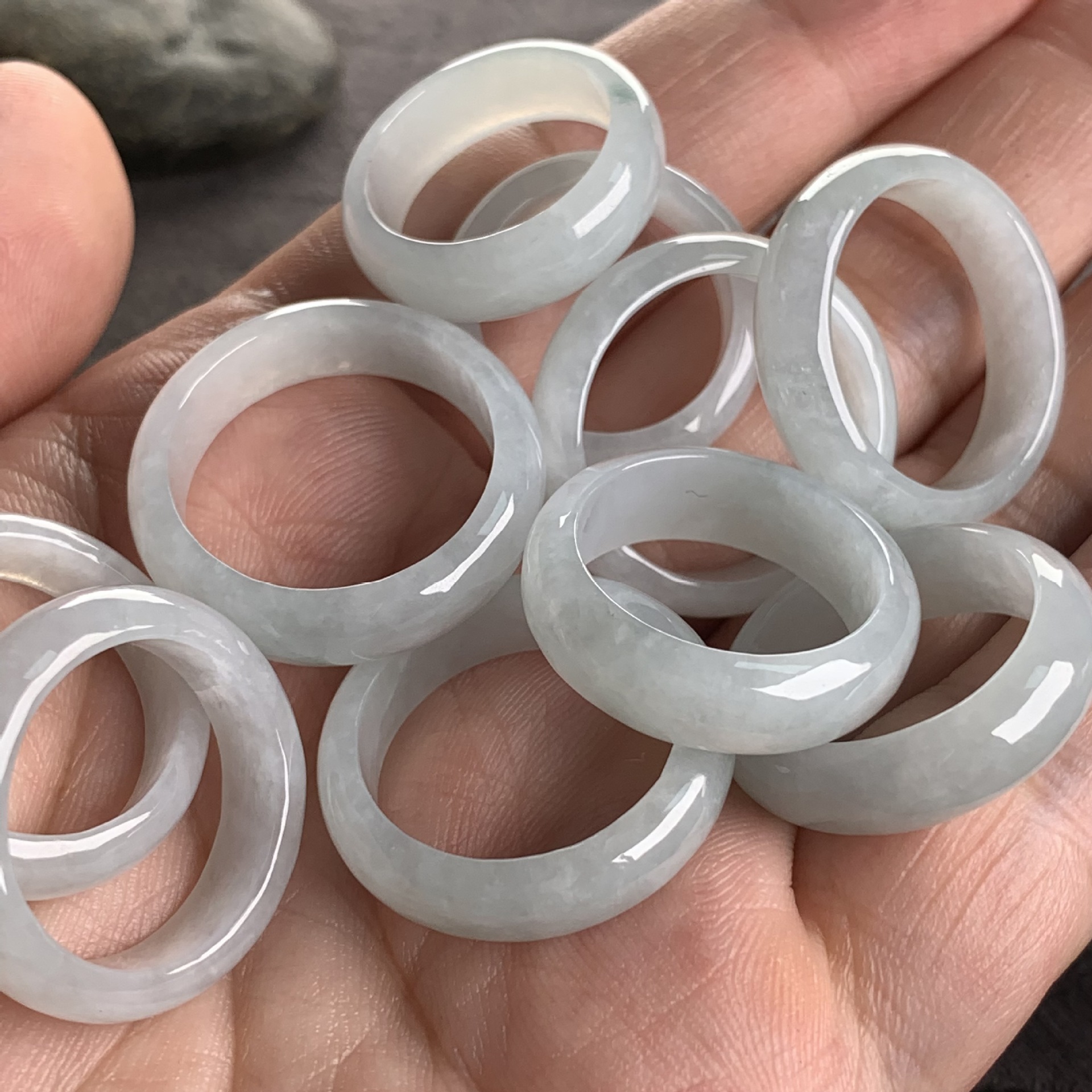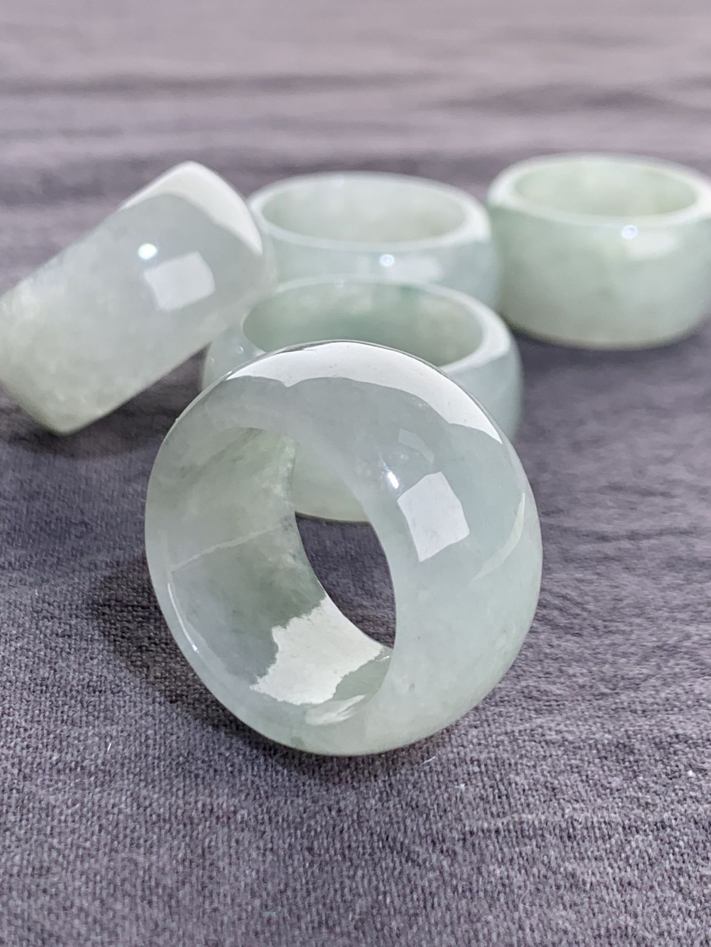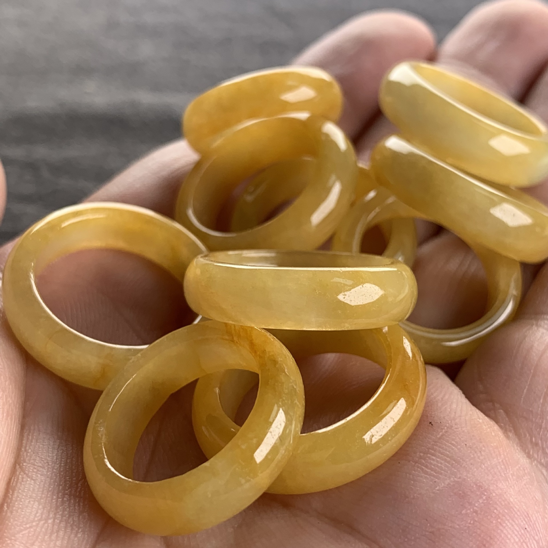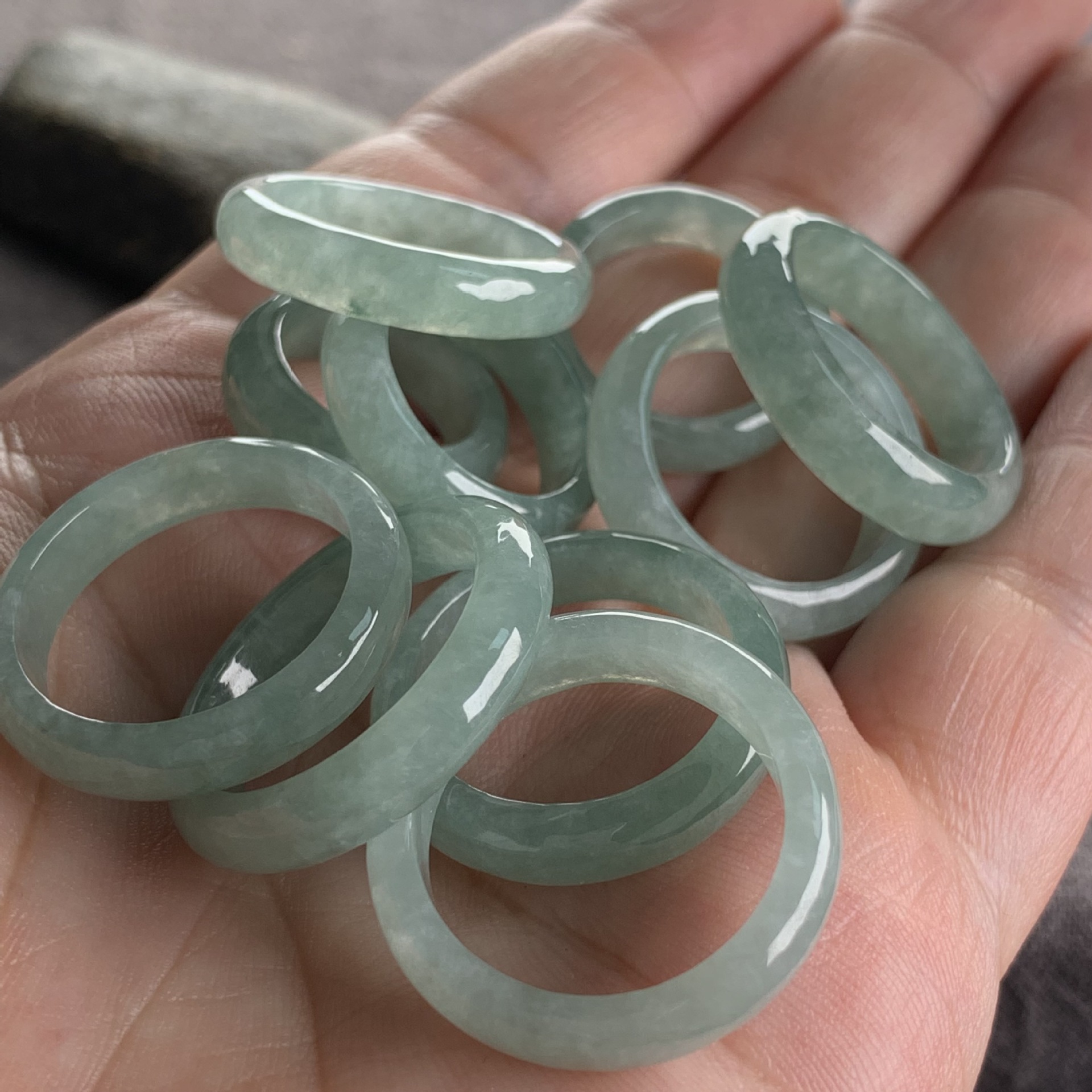 Кольцо из бирманского нефрита класса А, зеленое с цветочными узорами, кольцо типа «ледяная курица», нефрит цвета «жидкое масло» с зелеными узорами, пара колец.