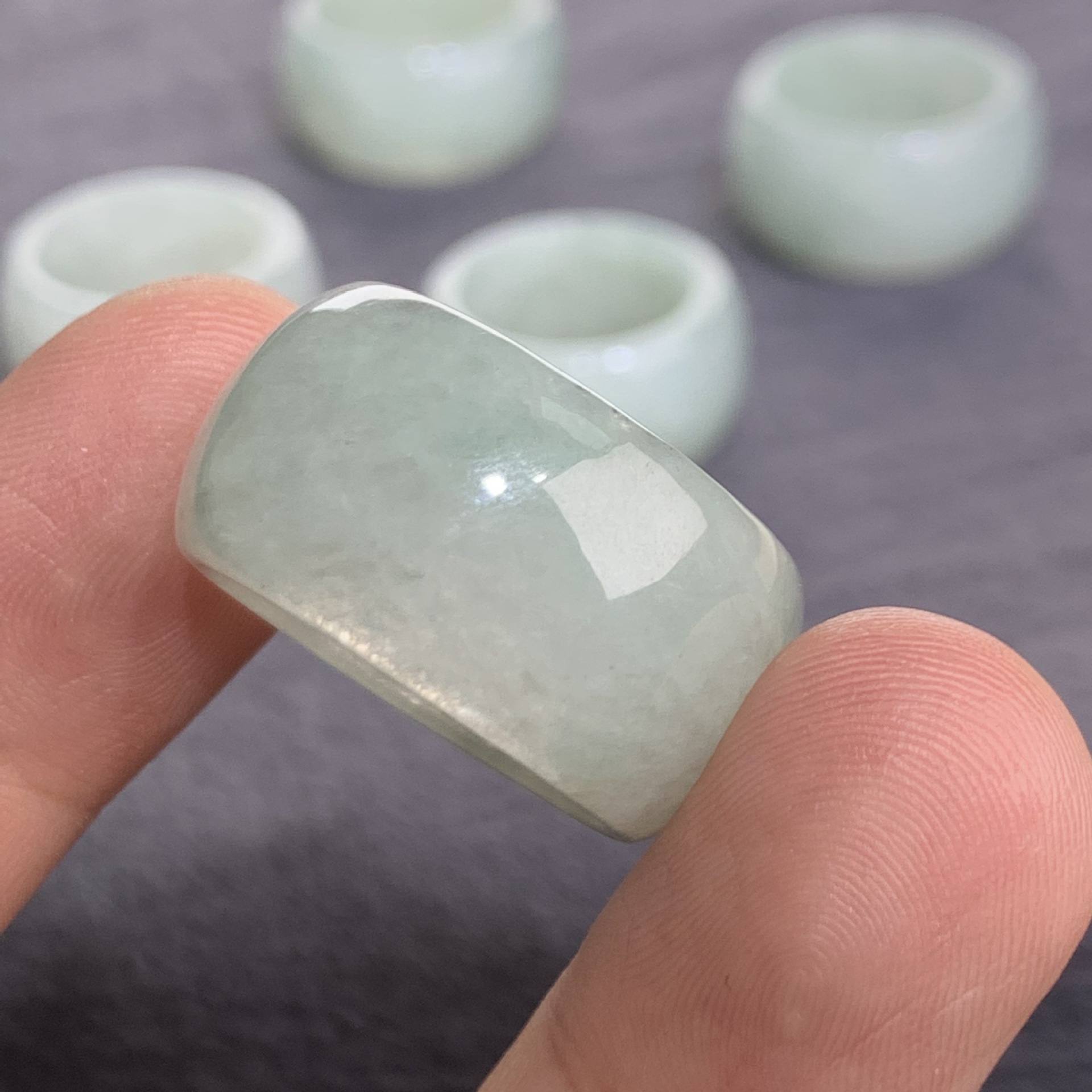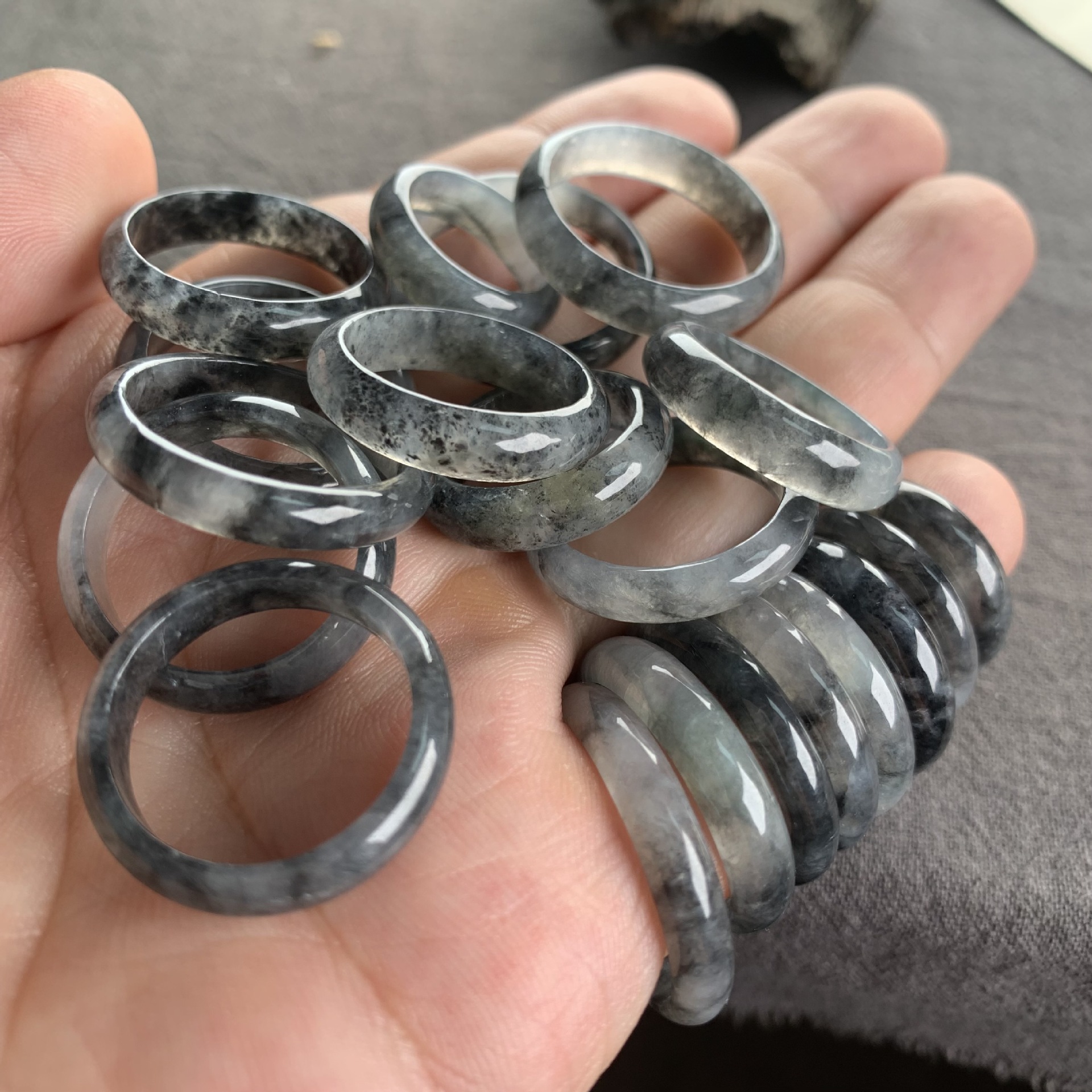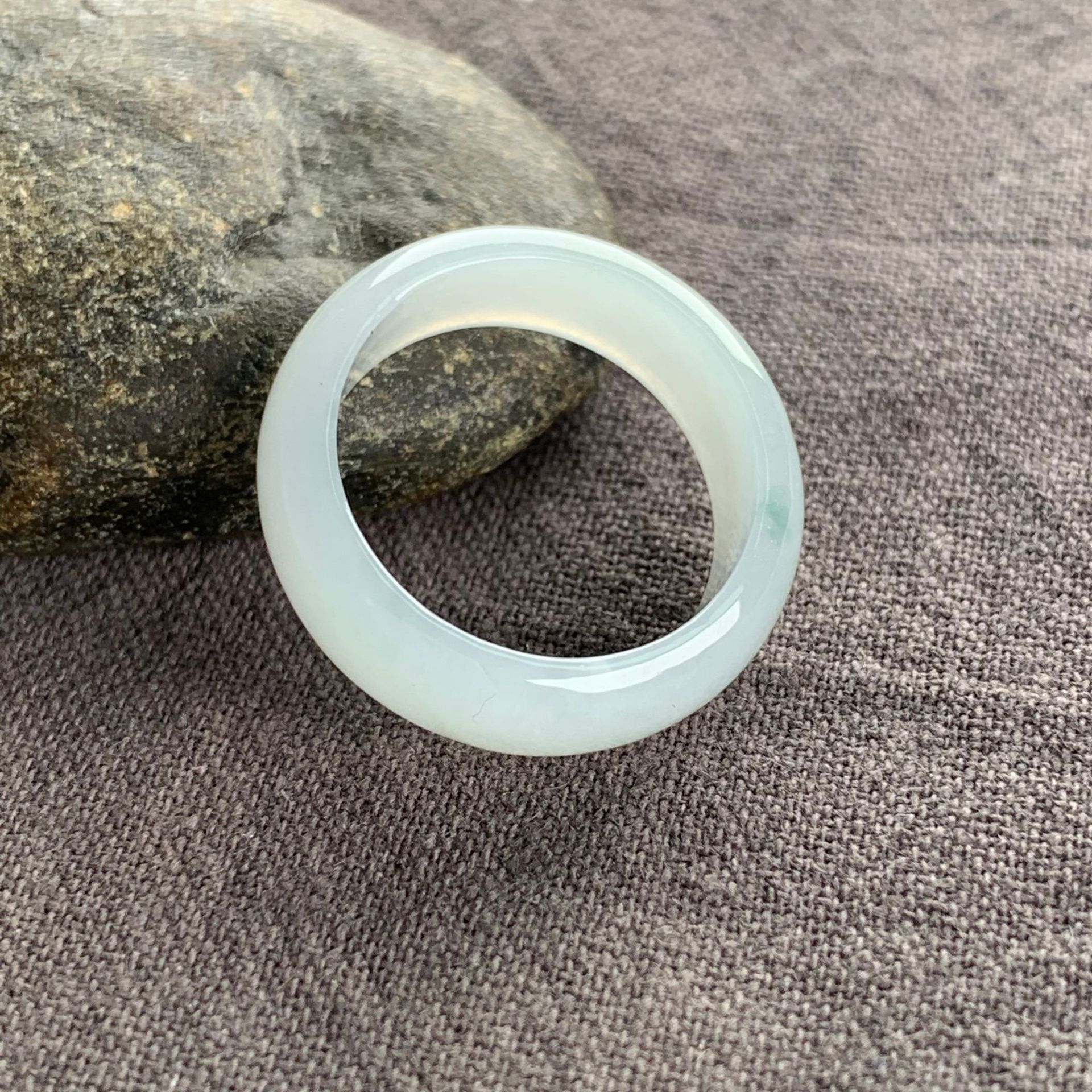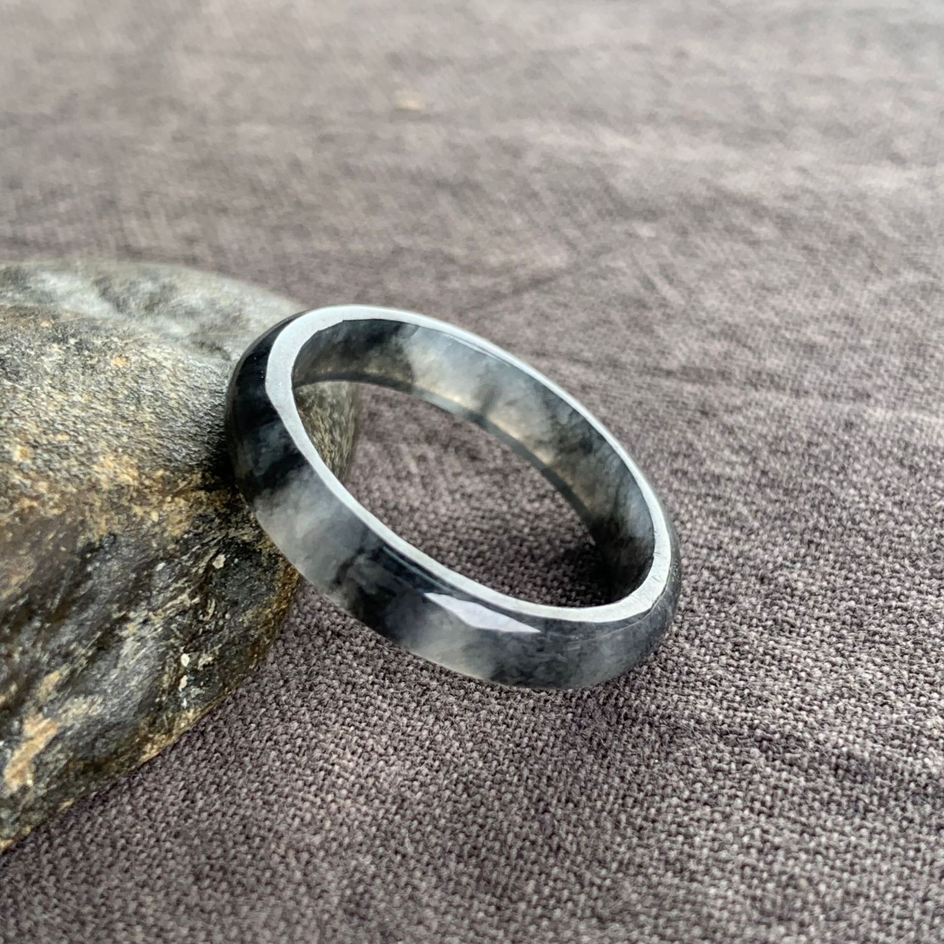 Кольцо из бирманского нефрита класса А, зеленое с цветочными узорами, кольцо типа «ледяная курица», нефрит цвета «жидкое масло» с зелеными узорами, пара колец.