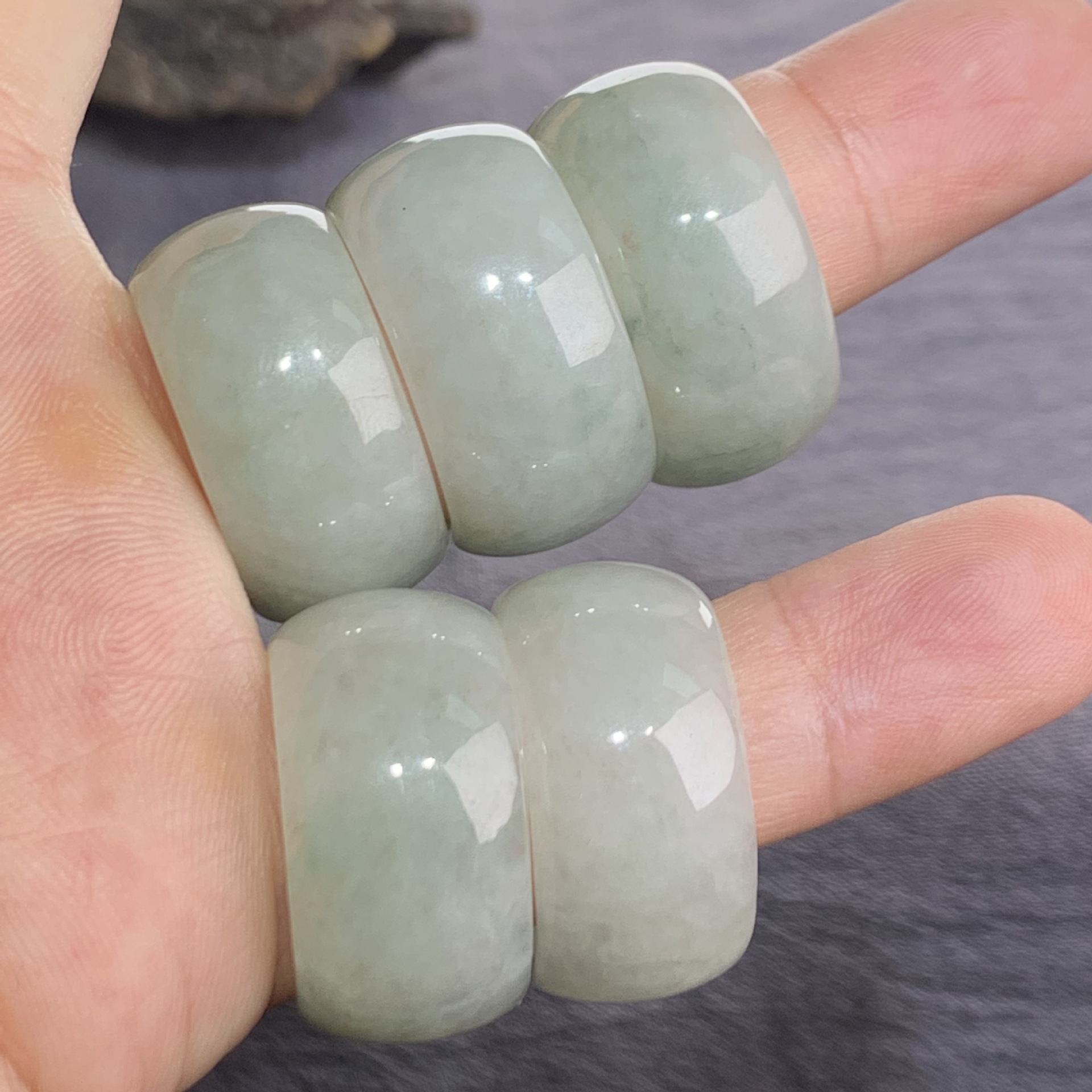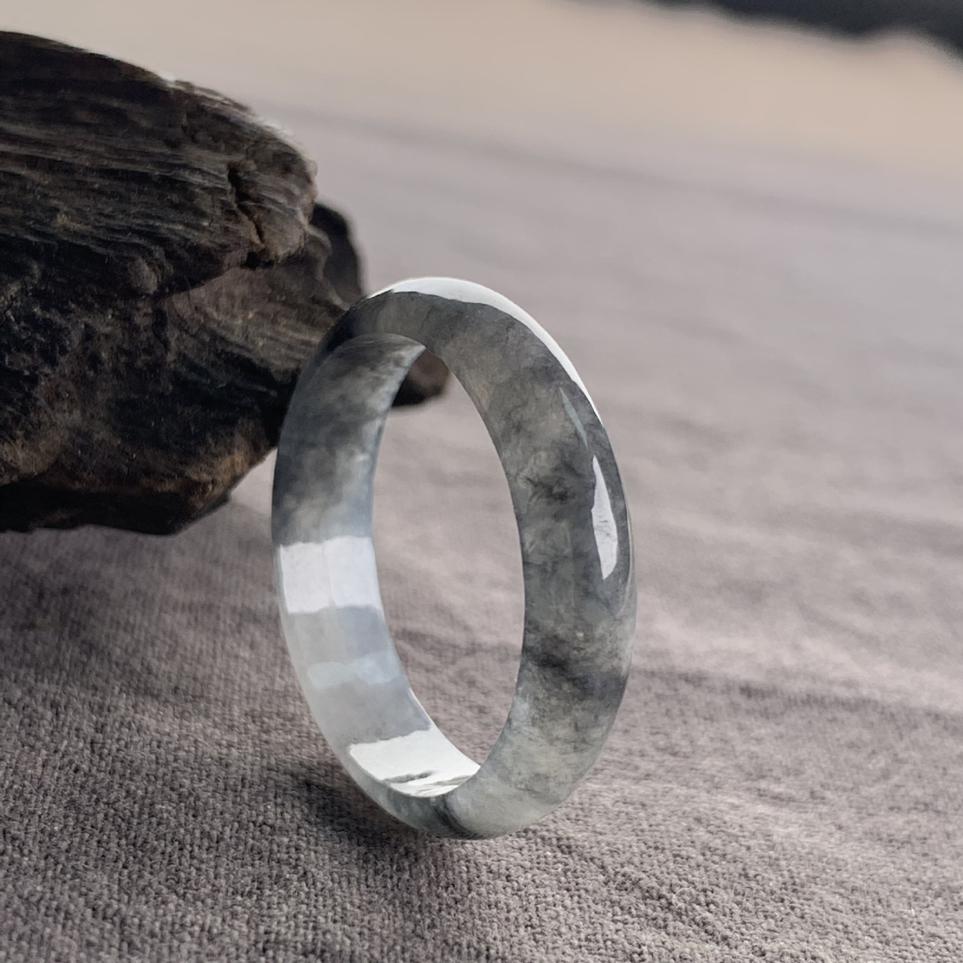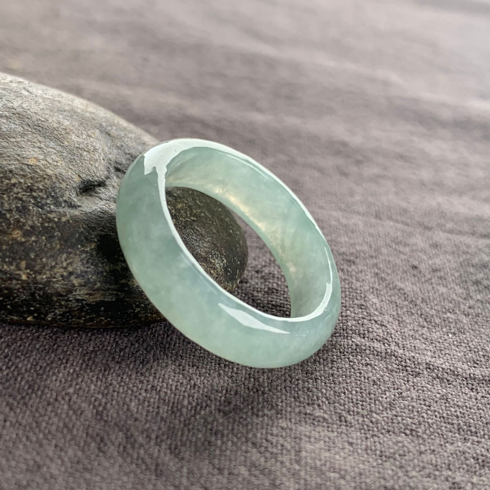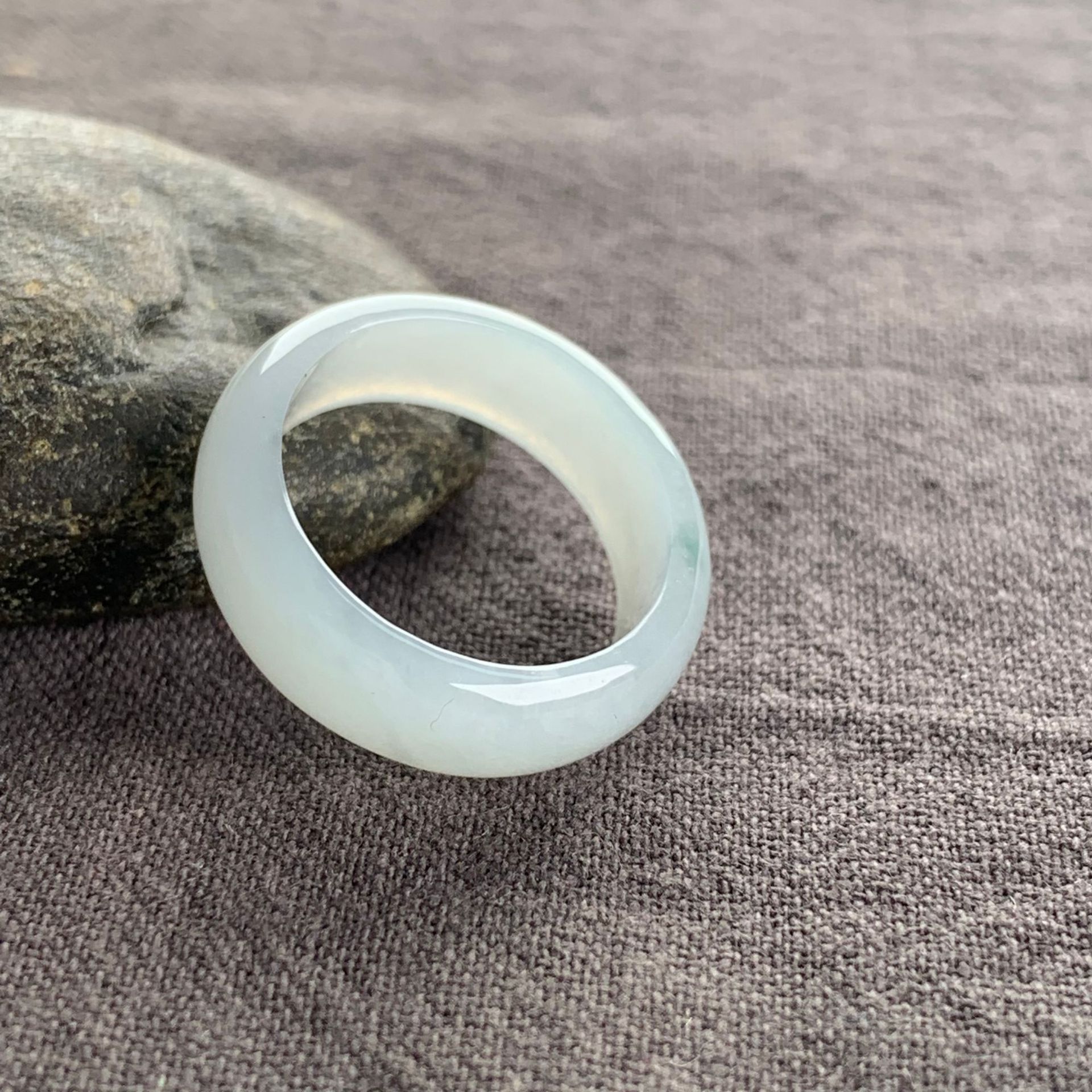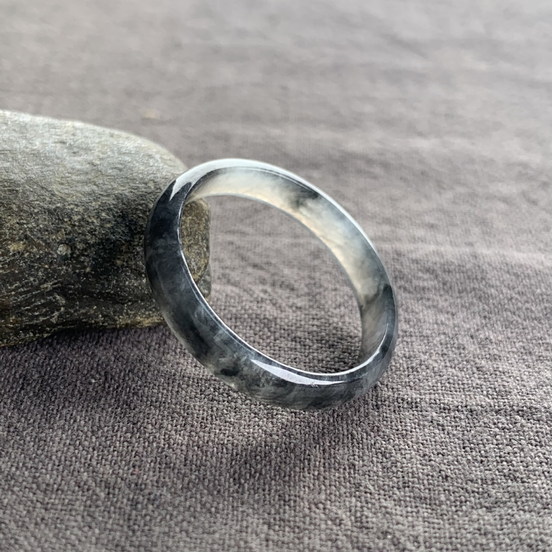 Кольцо из бирманского нефрита класса А, зеленое с цветочными узорами, кольцо типа «ледяная курица», нефрит цвета «жидкое масло» с зелеными узорами, пара колец.