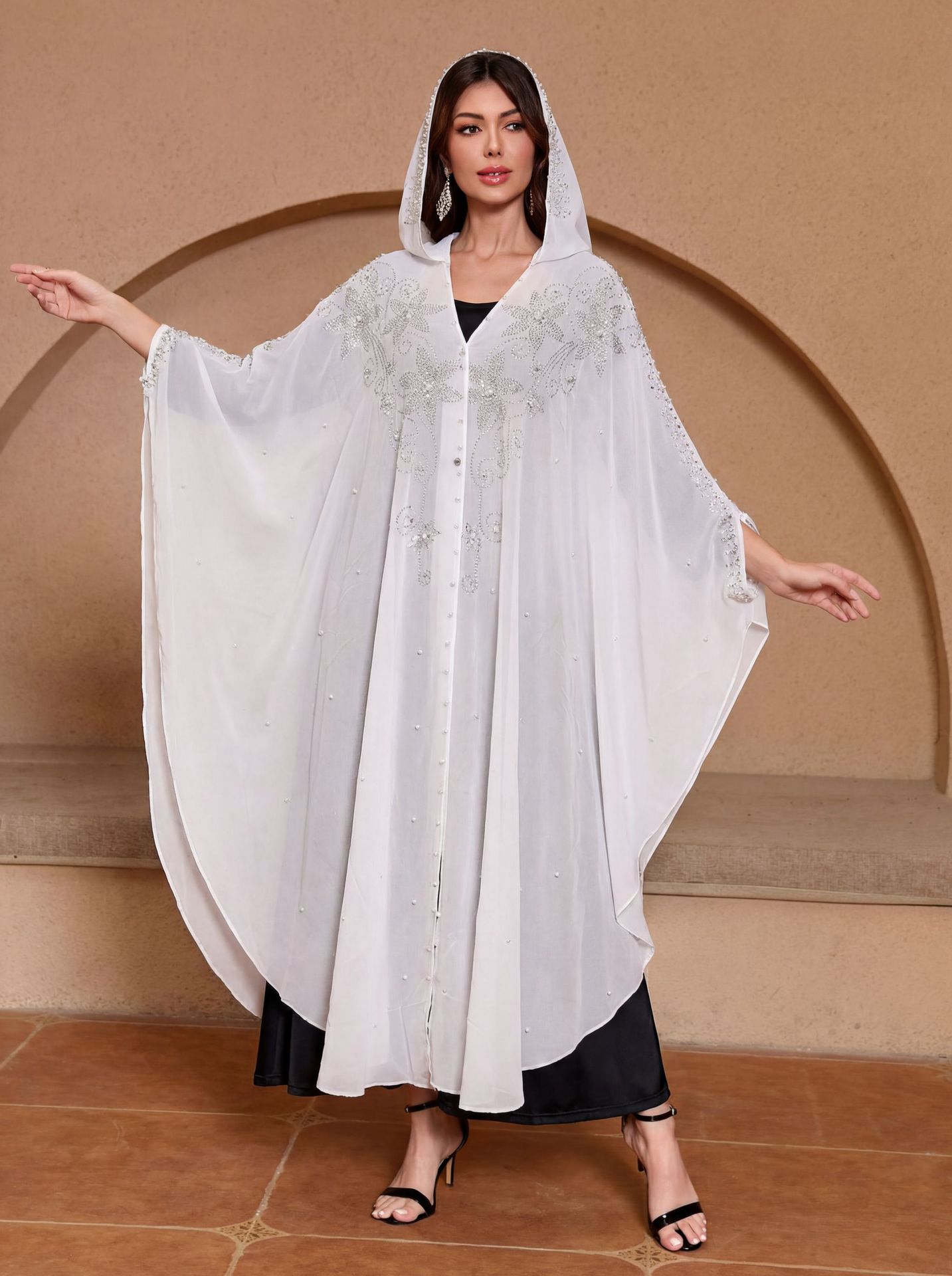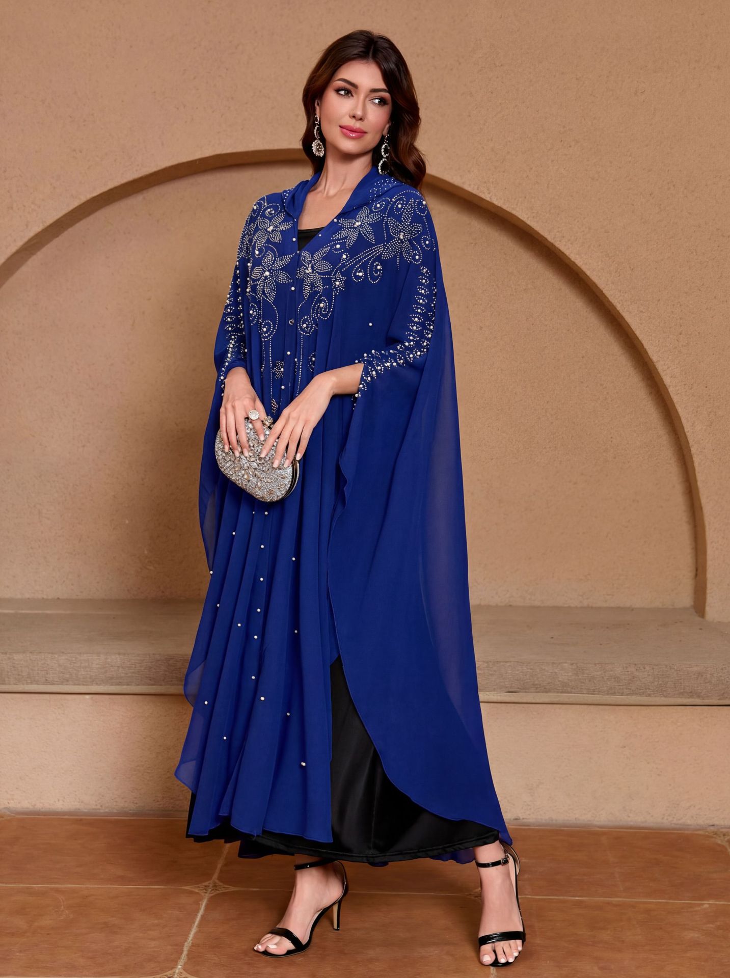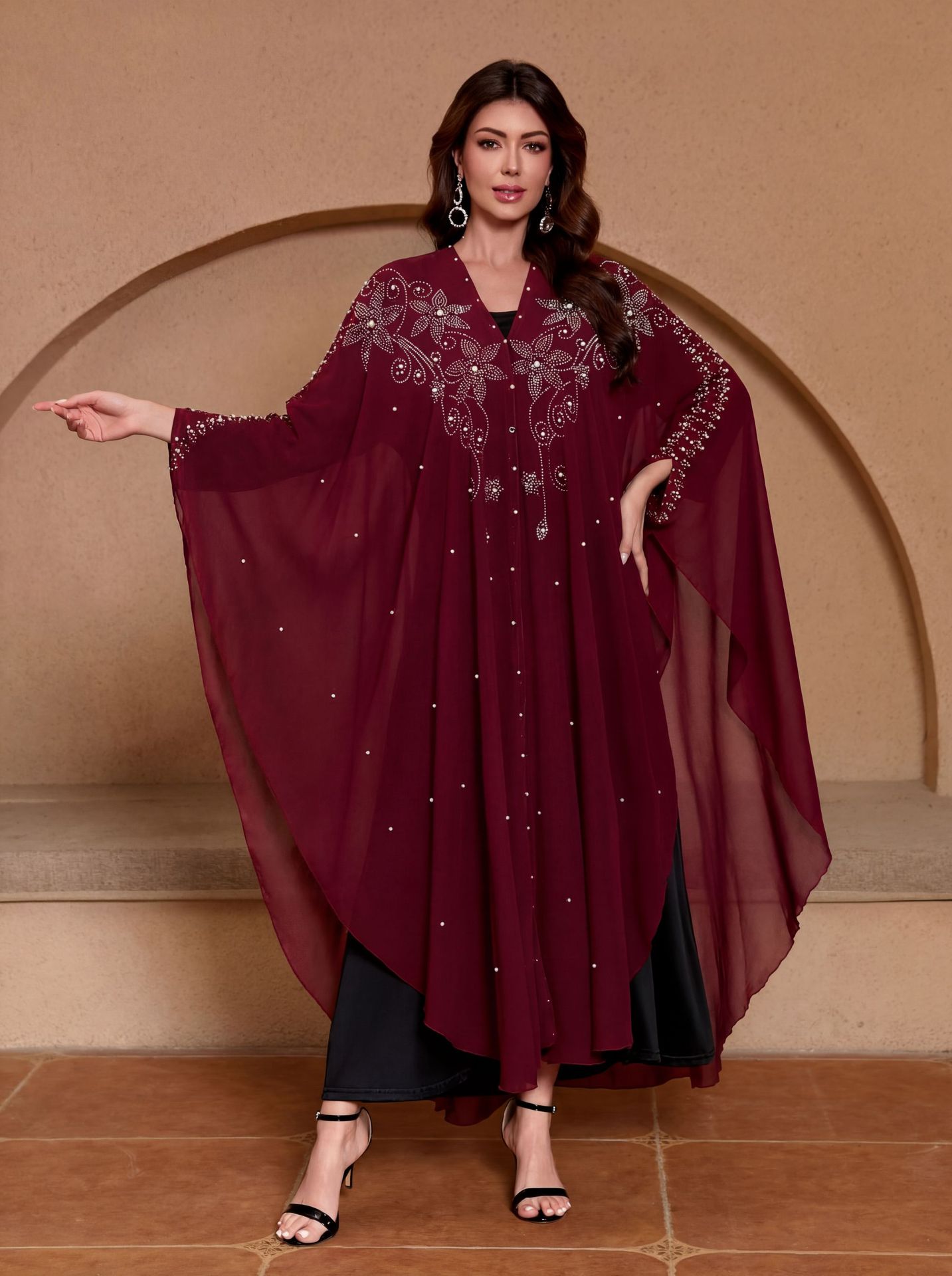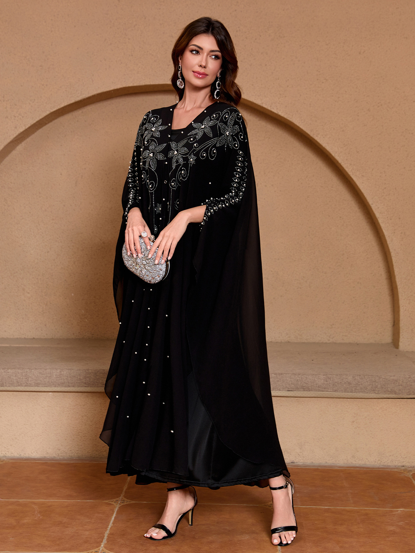 Трансграничная женская роба из шифона с жемчугом и стразами, африканская/ближневосточная, с тяжелой отделкой стразами, Amazon Dubai robe