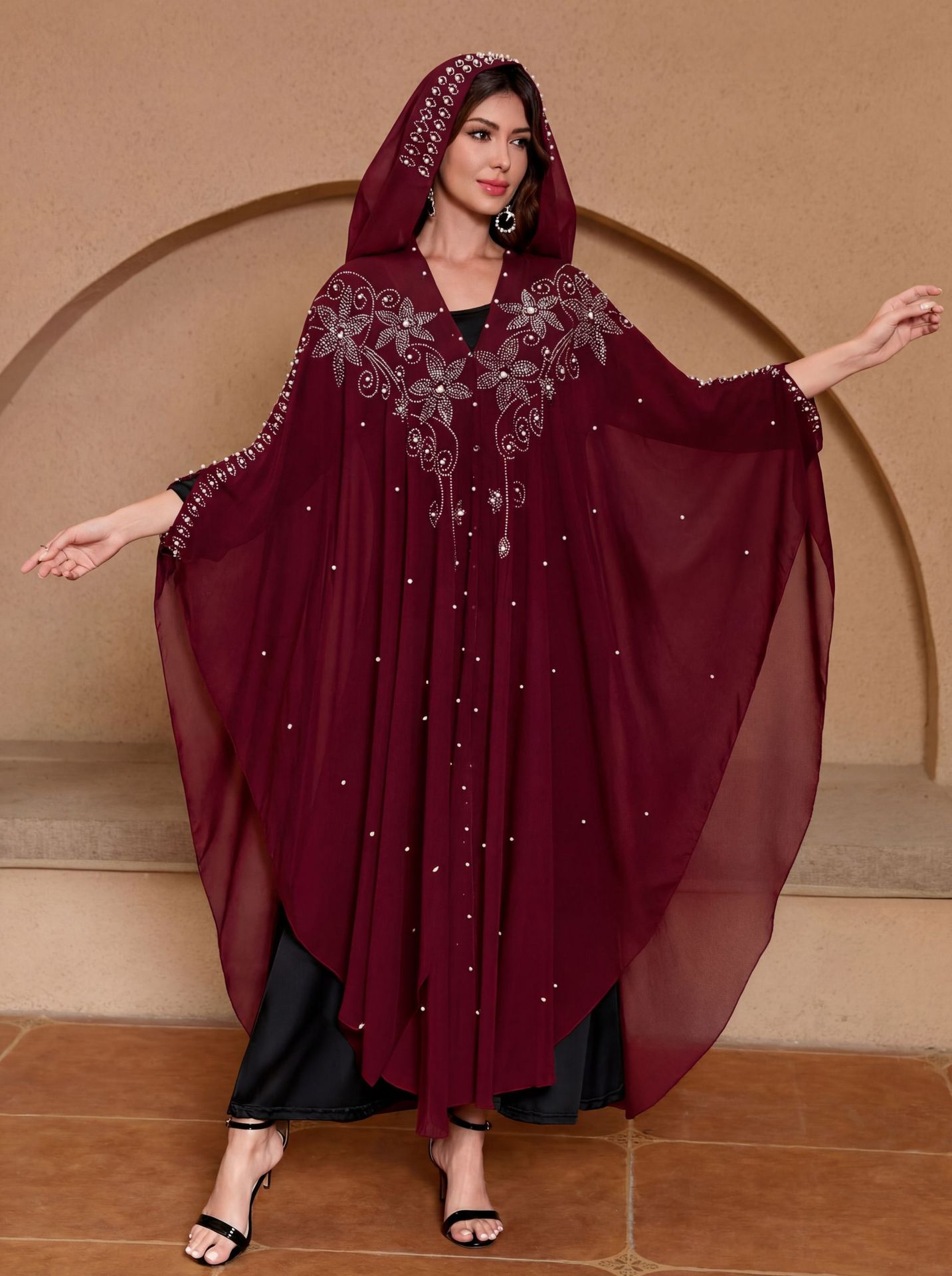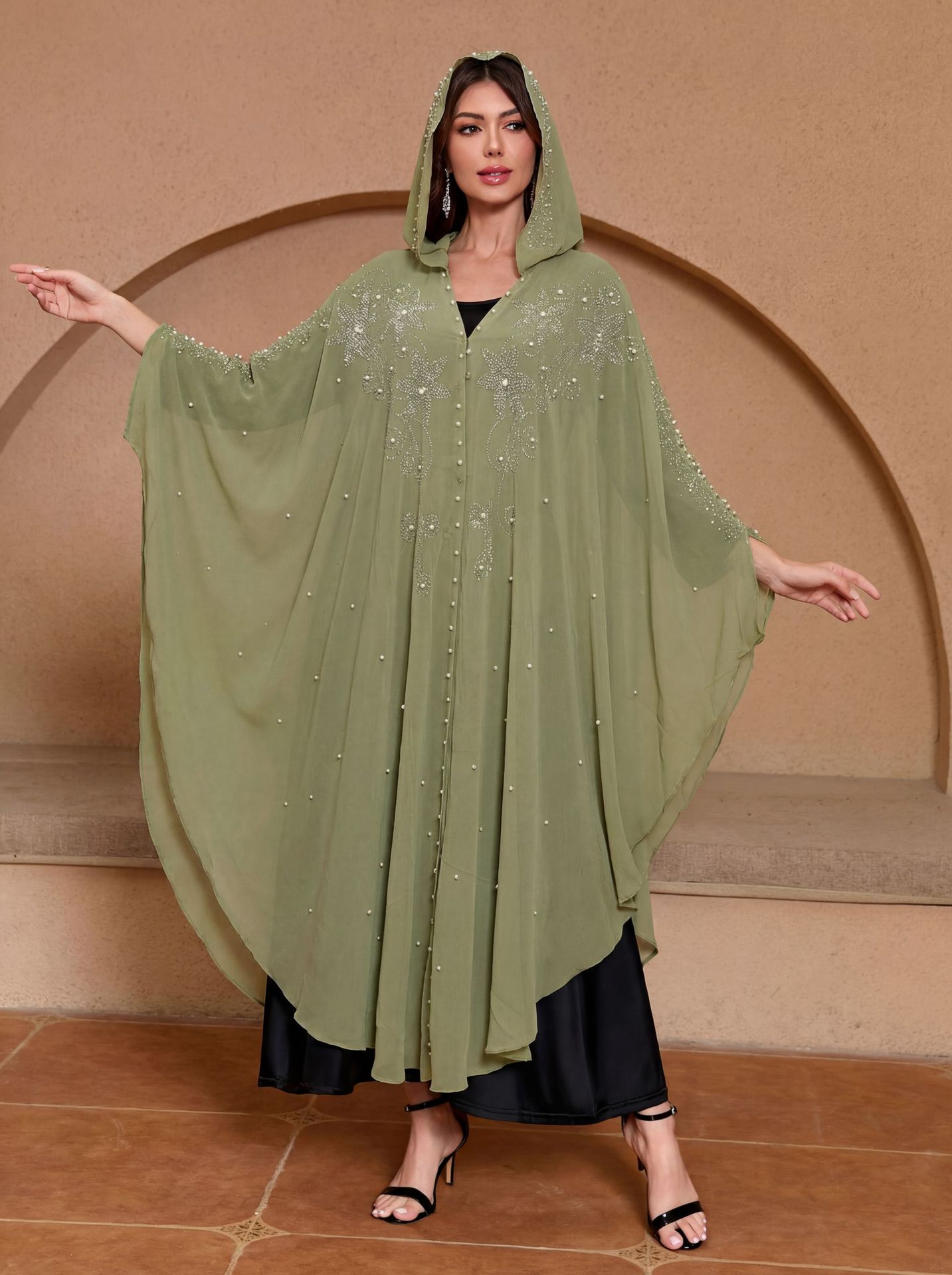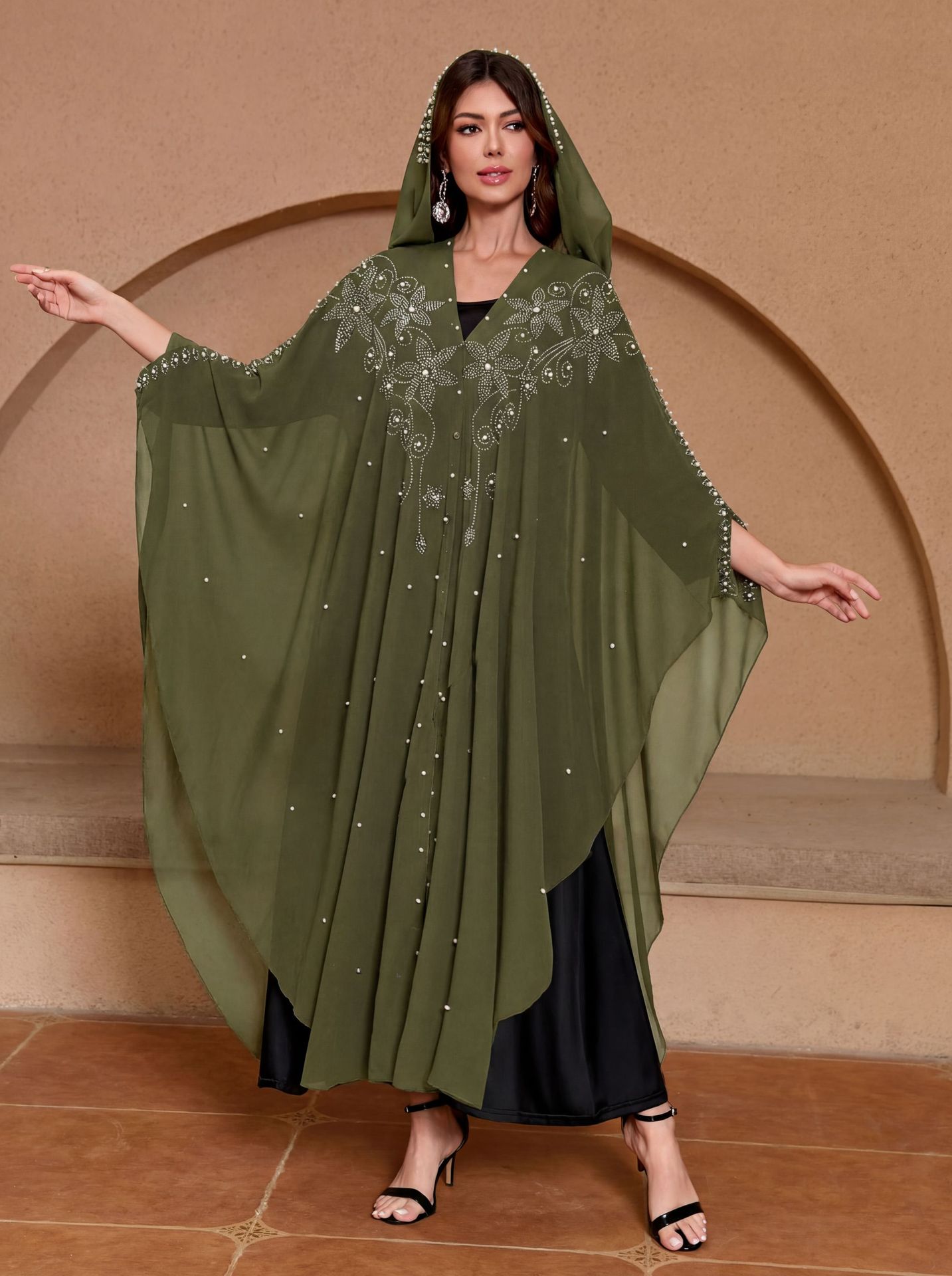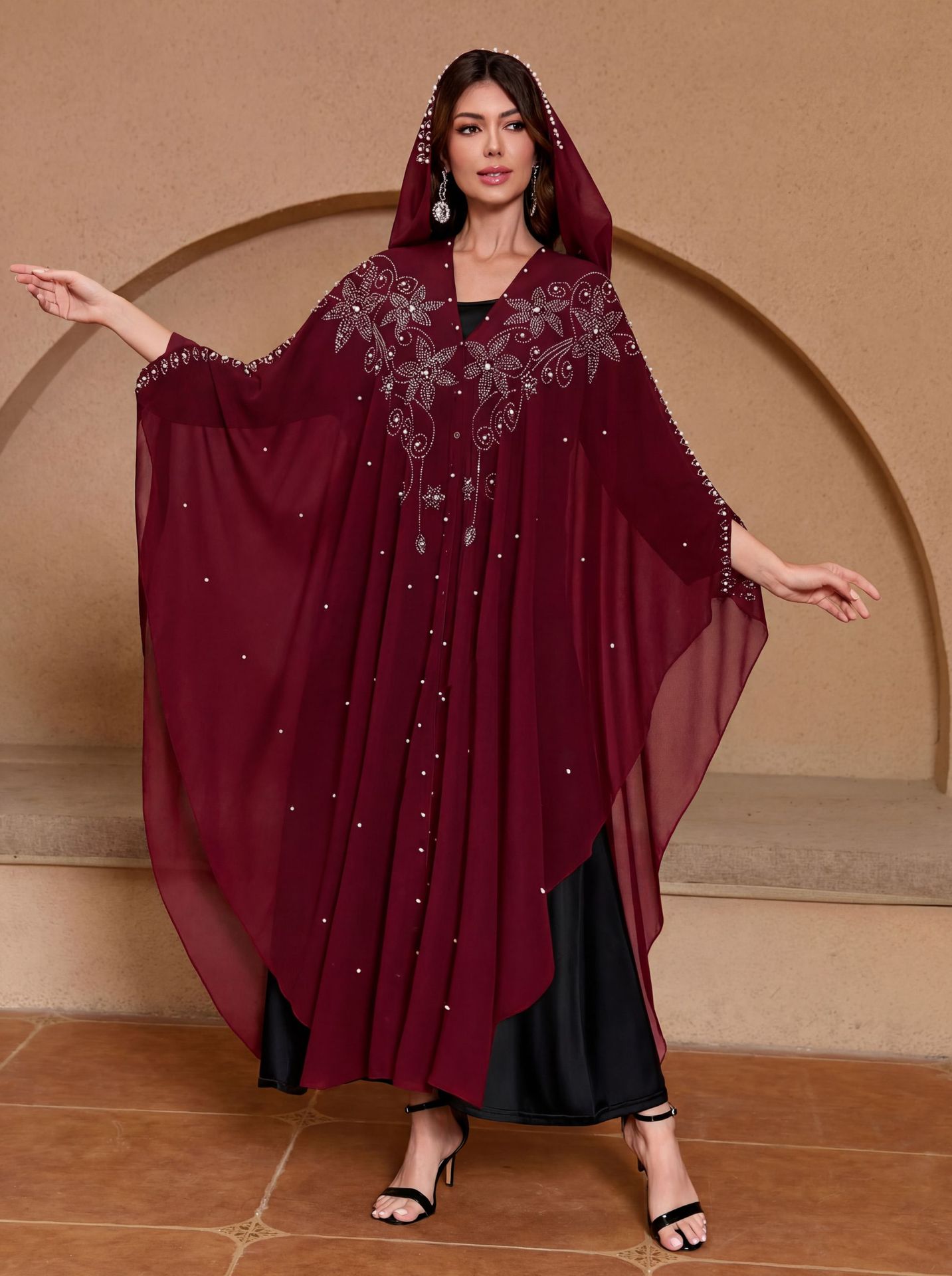 Трансграничная женская роба из шифона с жемчугом и стразами, африканская/ближневосточная, с тяжелой отделкой стразами, Amazon Dubai robe