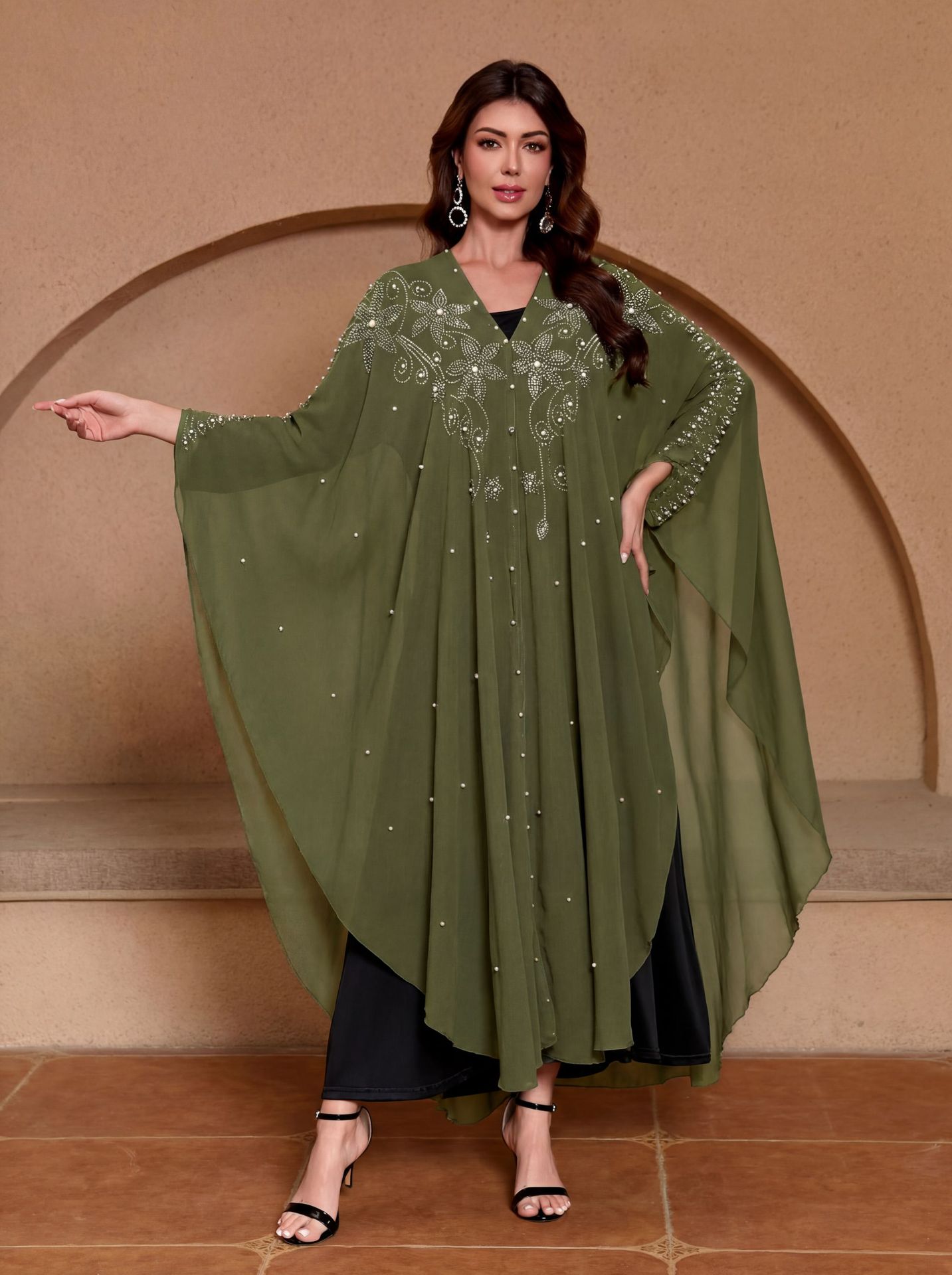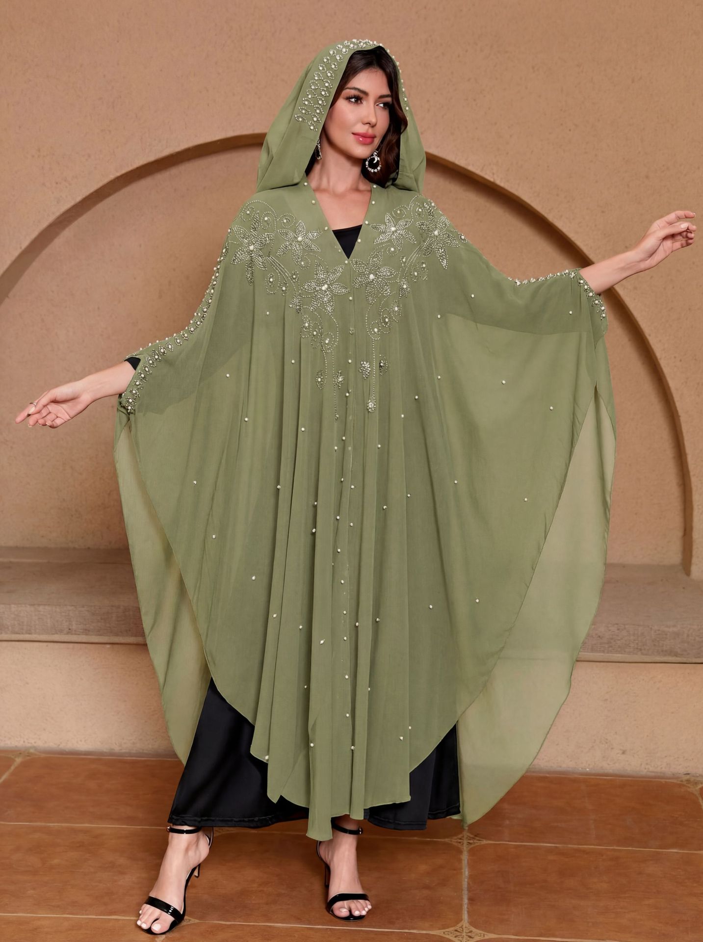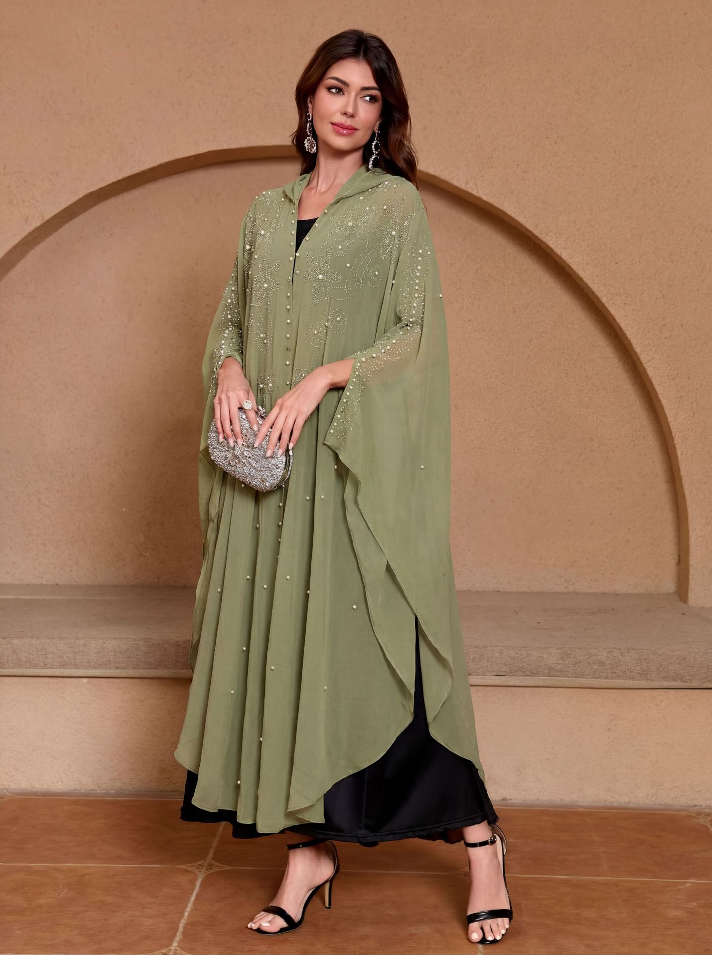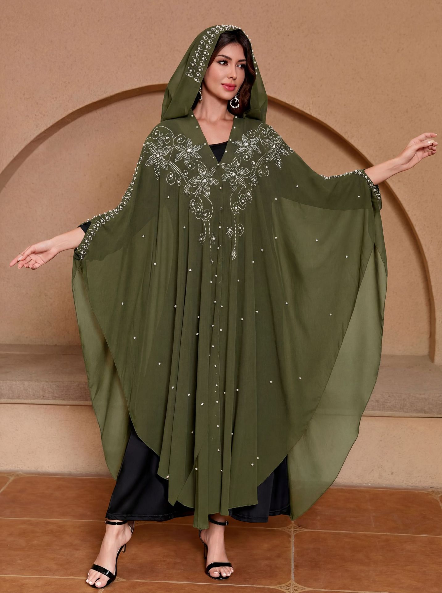 Трансграничная женская роба из шифона с жемчугом и стразами, африканская/ближневосточная, с тяжелой отделкой стразами, Amazon Dubai robe