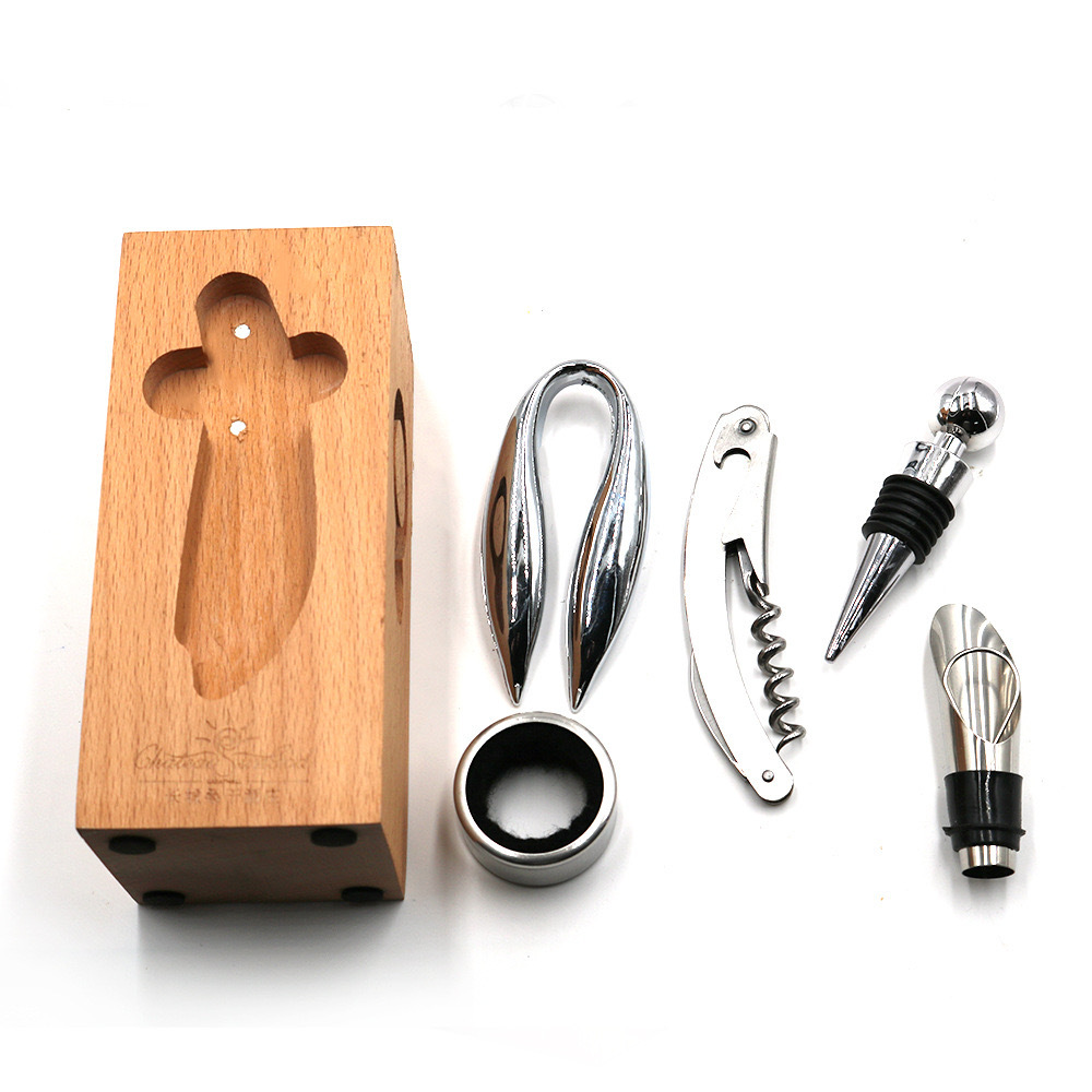Набор для открывания бутылок из красного вина 5 комплектов деревянных оснований Домашний инструмент для открывания бутылок для вина деревянная стойка оптом