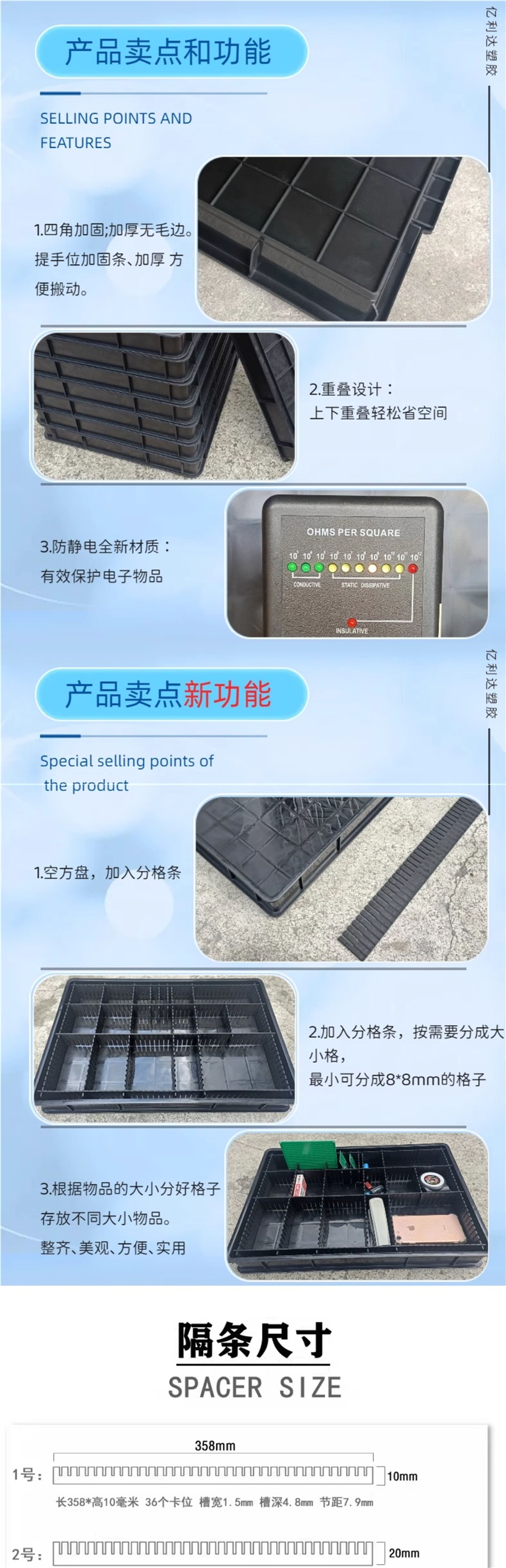 Антистатическая черная пластиковая квадратная пластина, материал для мобильного телефона, детали, инструменты, коробка для цифровых компонентов, оборотная коробка, пластиковый лоток Jin Ye