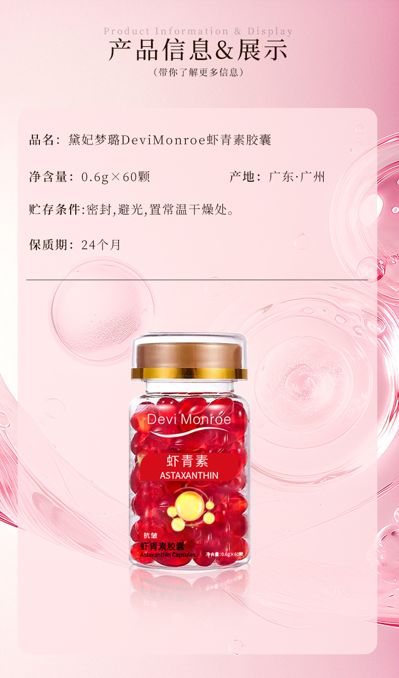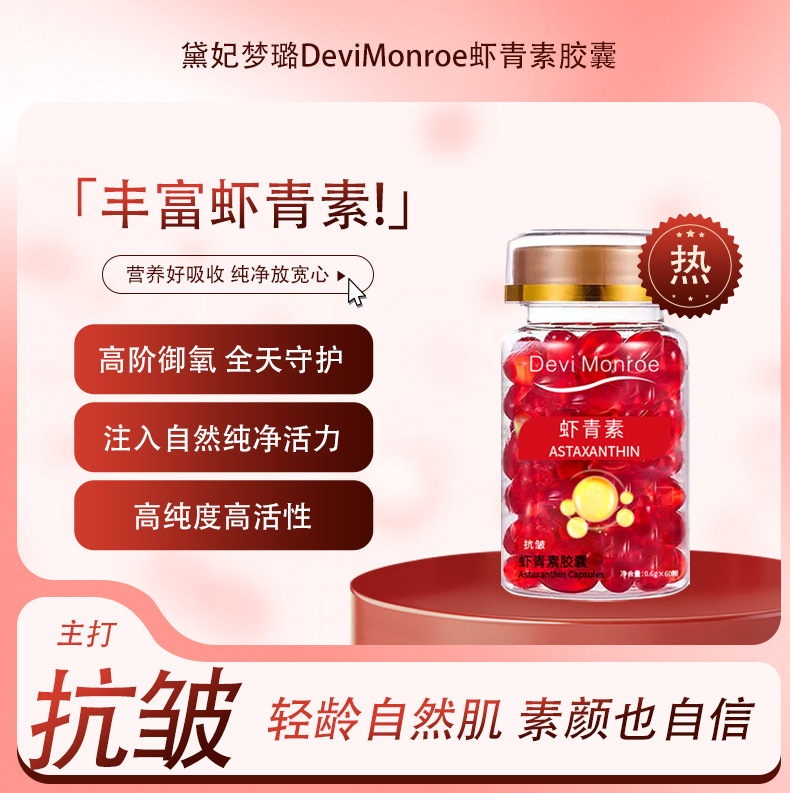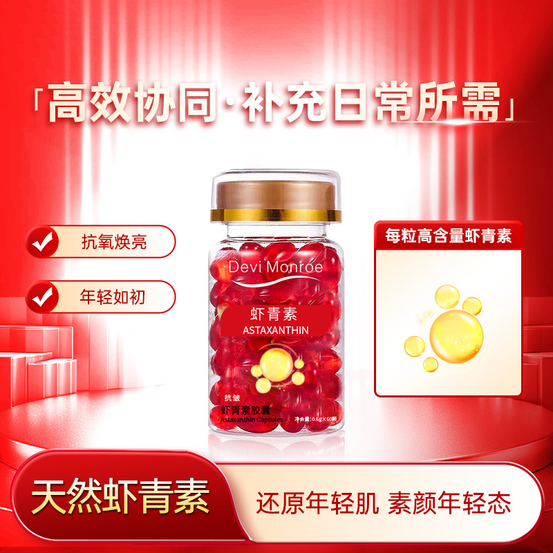 Эфирное масло астаксантина, бутылка с 60 капсулами; Капсульное эссенциальное масло с витамином Е, бутылка 60 капсул; Rose Capsule Essence Oil, флакон с 60 капсулами
