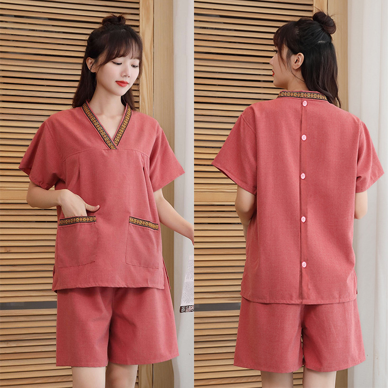 Купальный костюм с открытой пуговицей спереди и сзади, костюм для прижигания, паровой костюм с открытой пуговицей на спине, мужской и женский массаж, иглоукалывание, чистка ушей и массаж спины.