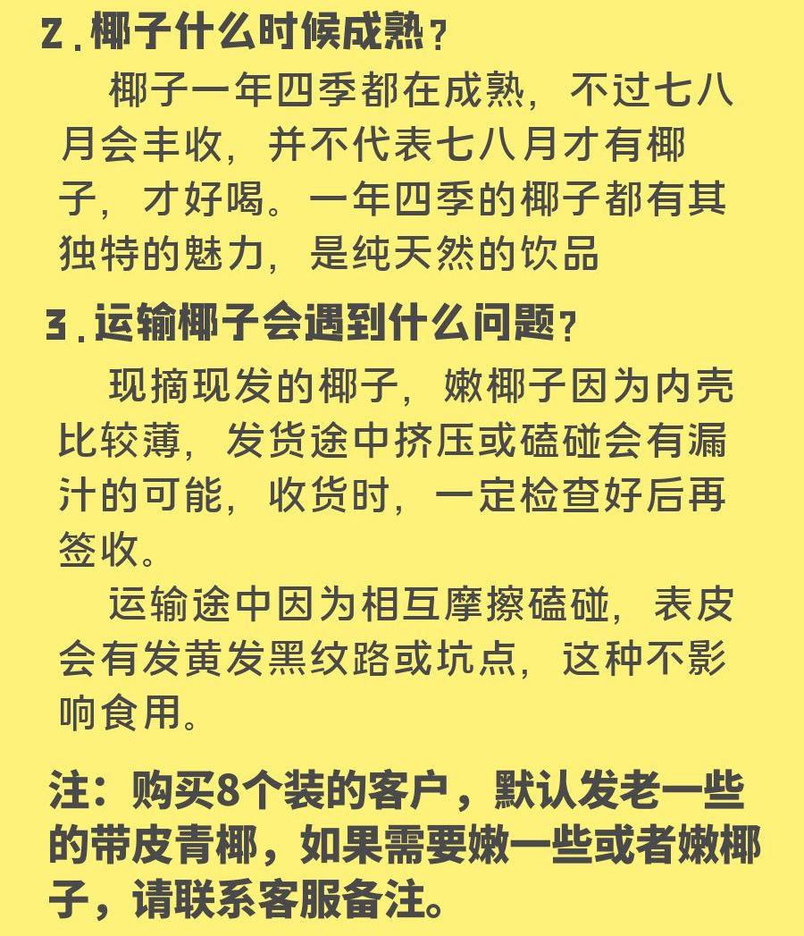 Упаковка из 6 кокосов с кожурой (в комплекте пенопластовая коробка + открывалка для кокосов); Упаковка из 3 кокосов с кожурой (в комплект входит пенопластовая коробка + открывалка для кокосов); 2 кокоса с кожурой (открывалка для кокосов в комплект не входит); 1 кокос с сердцевиной (открывалка для кокосов не входит в комплект)