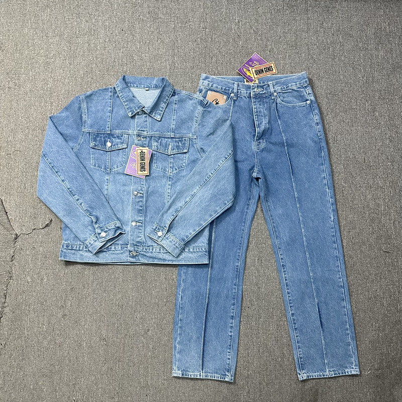 E01-джинсовая куртка (голубая); E01-джинсовые брюки (голубой); E01 Джинсовая куртка + джинсовый брючный костюм (голубой); E01-джинсовая куртка [черная]; E01-джинсовые брюки [черные]; E01-джинсовая куртка + джинсовый брючный костюм черного цвета; E01-джинсовые брюки (серые)