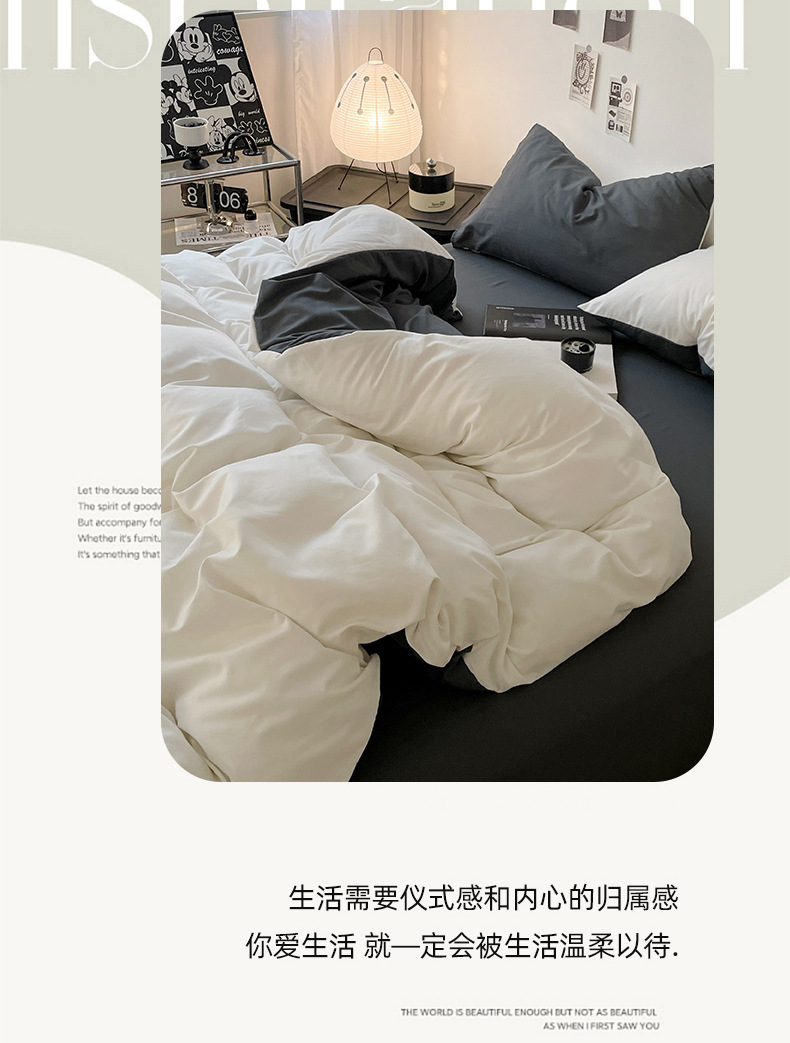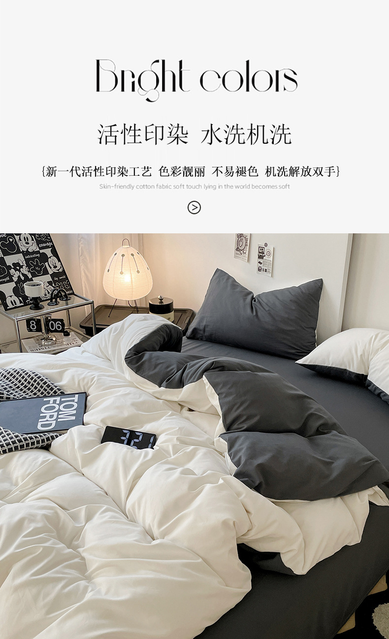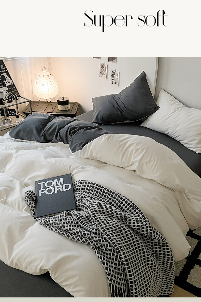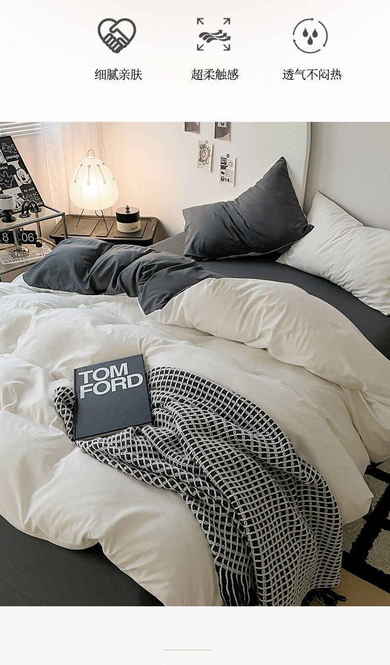 Комплект постельного белья в стиле минимализм из четырех предметов, свежий и простой однотонный комплект из стираного хлопка: простыня, пододеяльник, комплект из трех предметов для студенческого общежития